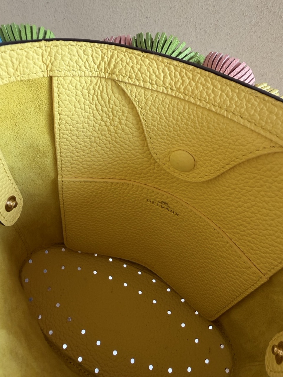 Atelier Mémé besteedt veel tijd en aandacht aan het zorgvuldig selecteren en, indien nodig, retoucheren van originele Delvaux handtassen. De tas is zo correct mogelijk in beeld gebracht met imperfecties die horen bij de vintage staat en manuele ambacht van zowel de Delvauxtas als de ambacht van het restaureren.