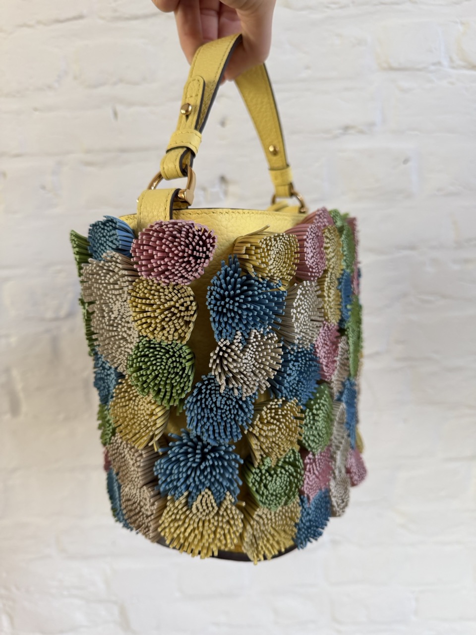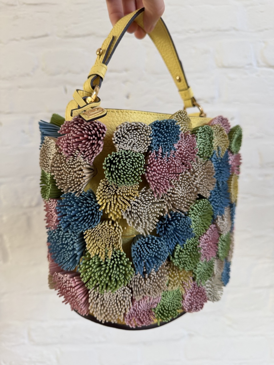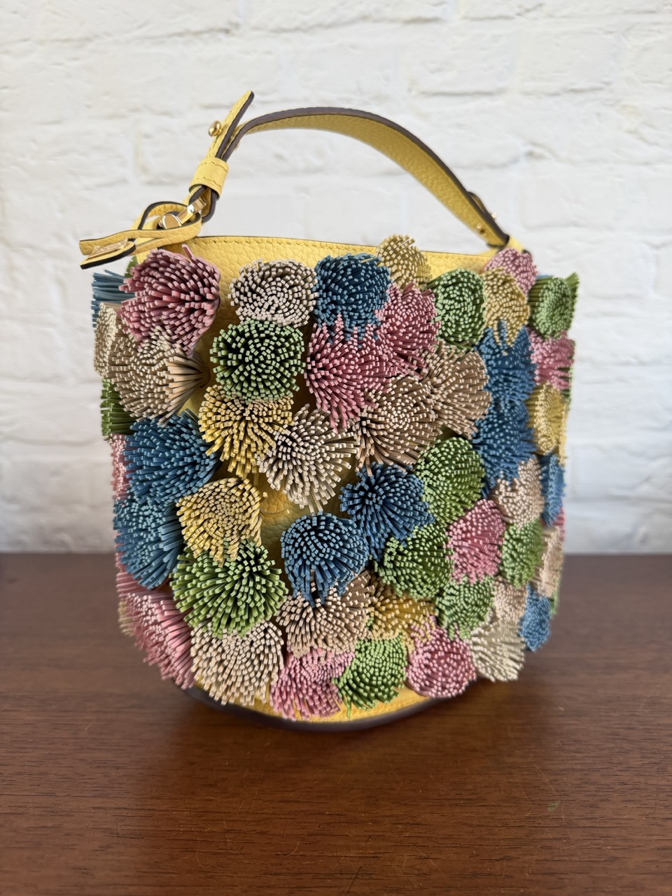 Le Pin Bucket Pompon – geïnspireerd op een oervlaamse traditie, nl. de papieren bloemen die kinderen maken en verkopen in ruil voor schelpen aan onze Belgische kust. Een fenomeen dat ongeveer 100 jaar oud is en je alleen maar aan de Belgische kust zal tegenkomen.