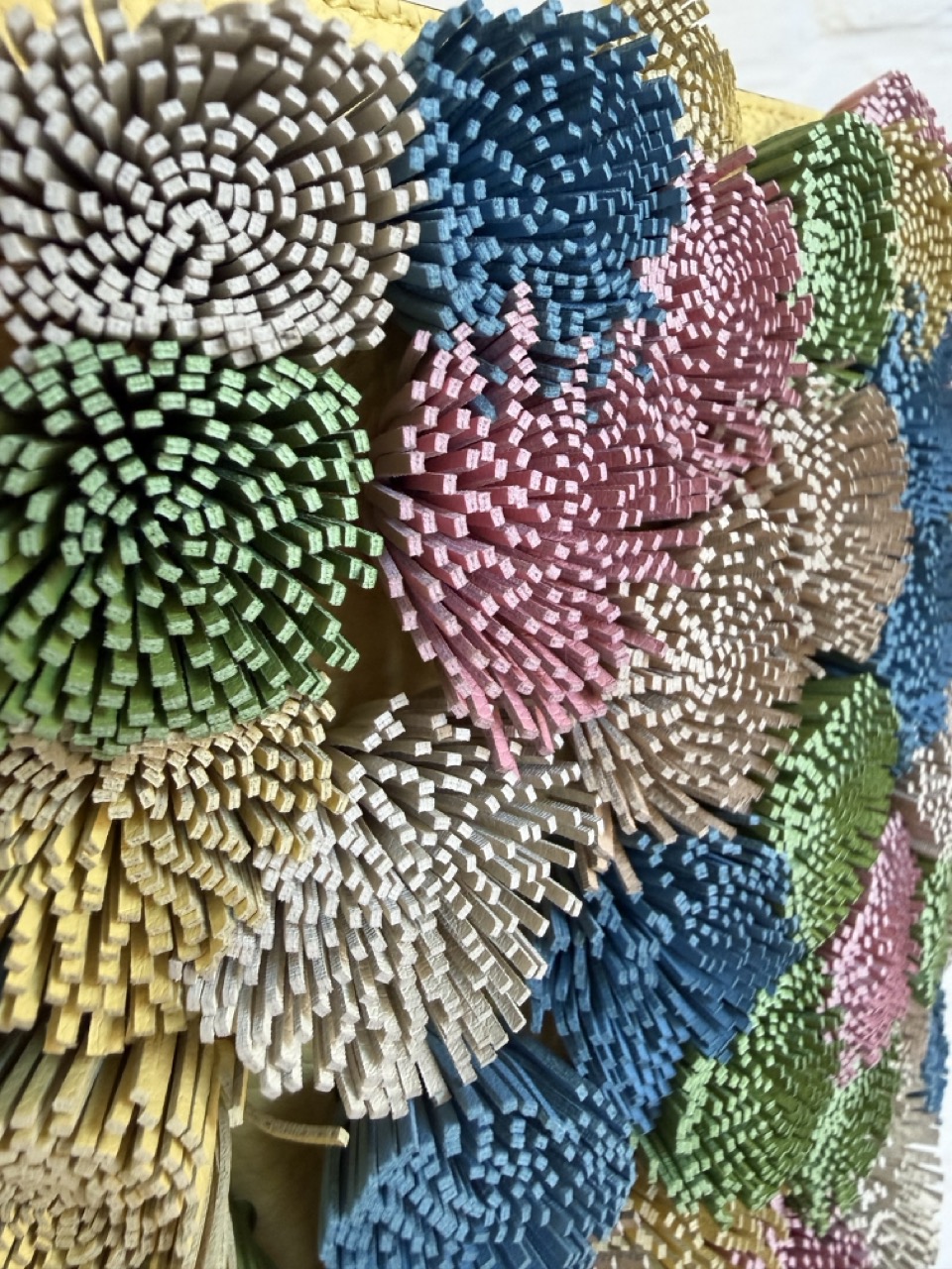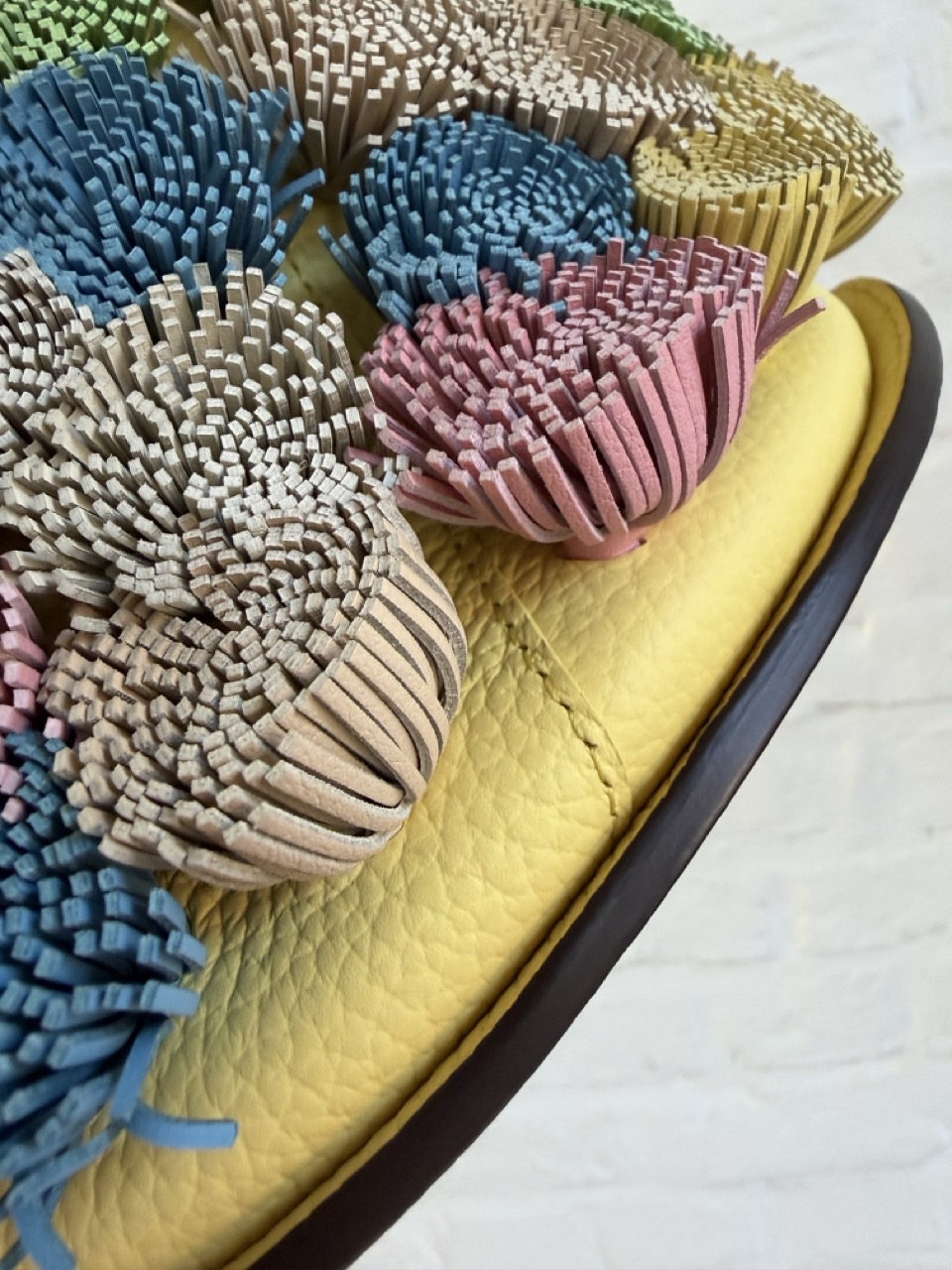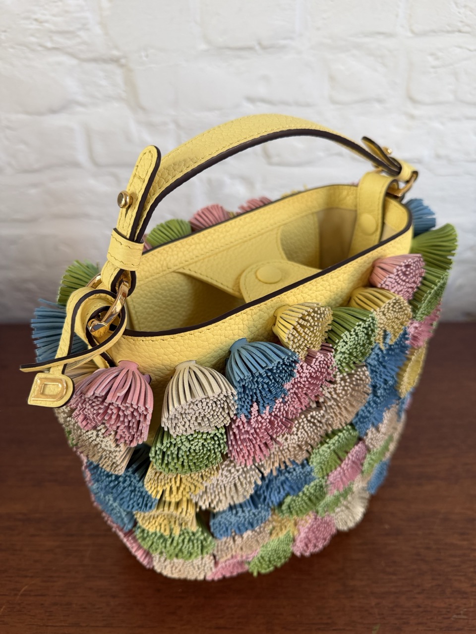 Le Pin Bucket Pompon – geïnspireerd op een oervlaamse traditie, nl. de papieren bloemen die kinderen maken en verkopen in ruil voor schelpen aan onze Belgische kust. Een fenomeen dat ongeveer 100 jaar oud is en je alleen maar aan de Belgische kust zal tegenkomen.
