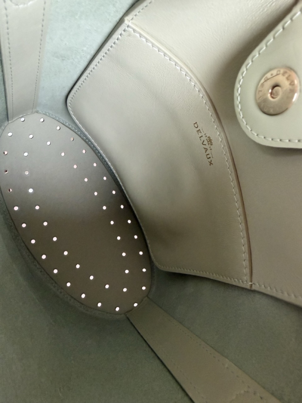 Atelier Mémé besteedt veel tijd en aandacht aan het zorgvuldig selecteren en, indien nodig, retoucheren van originele Delvaux handtassen. De tas is zo correct mogelijk in beeld gebracht met imperfecties die horen bij de vintage staat en manuele ambacht van zowel de Delvauxtas als de ambacht van het restaureren.