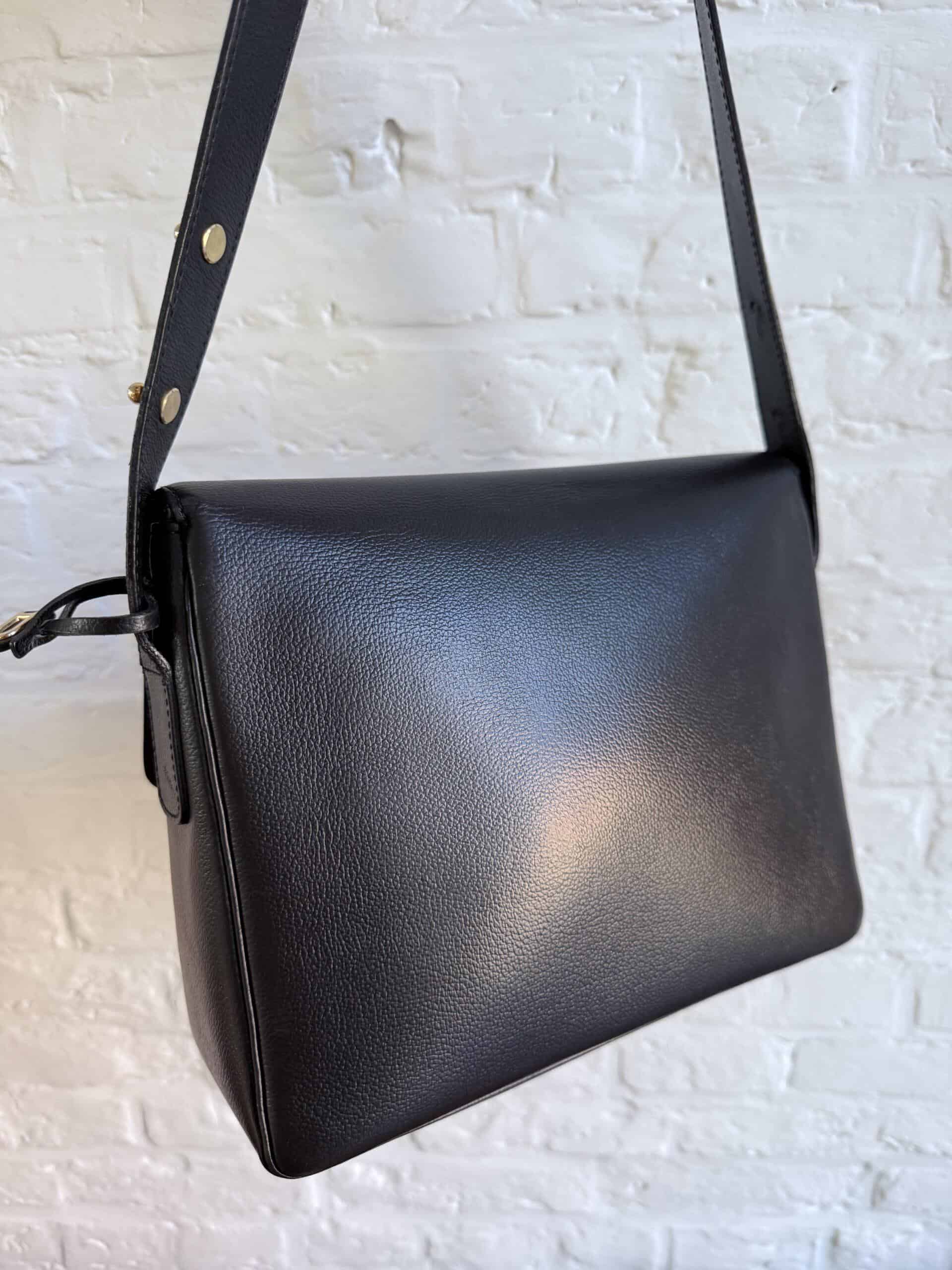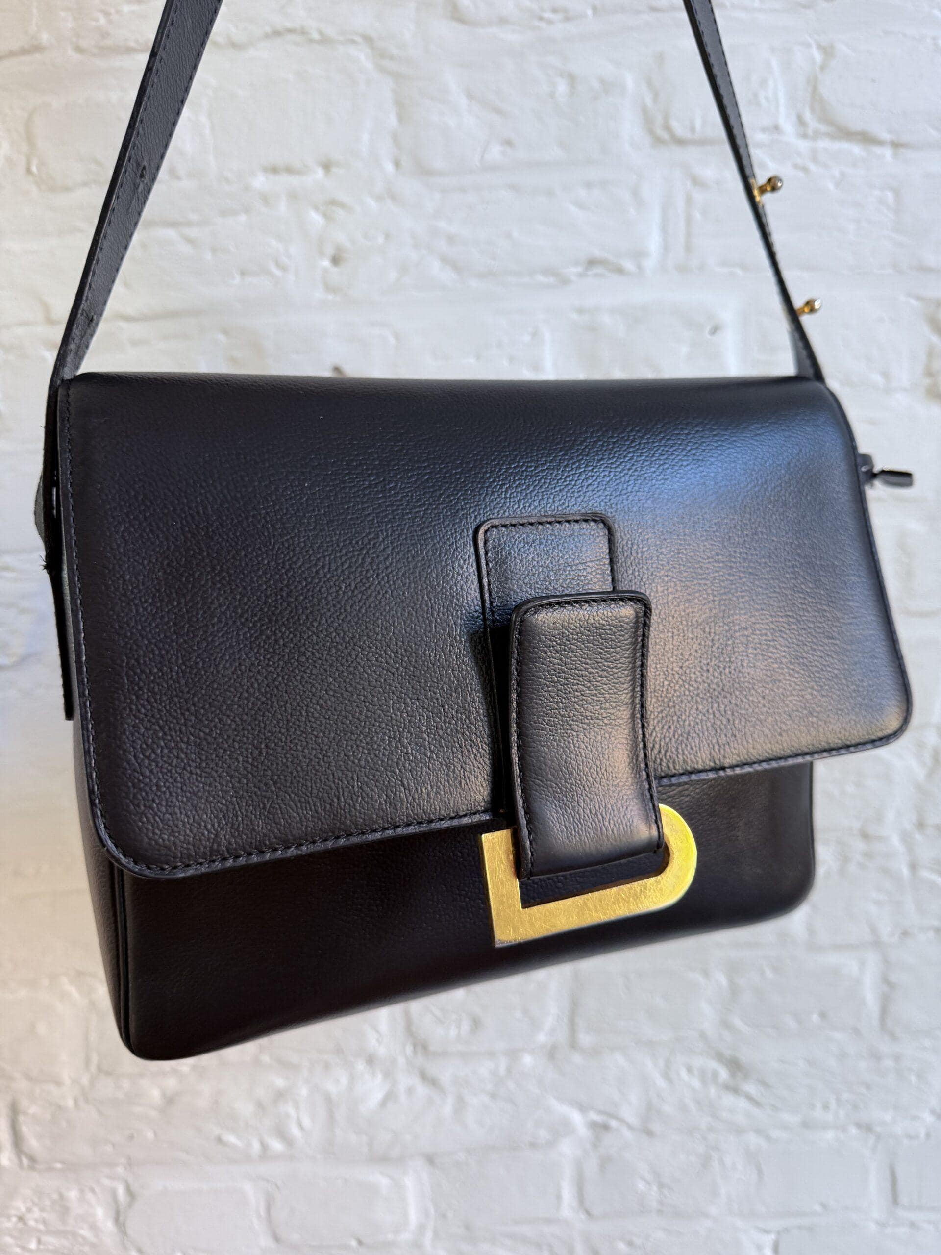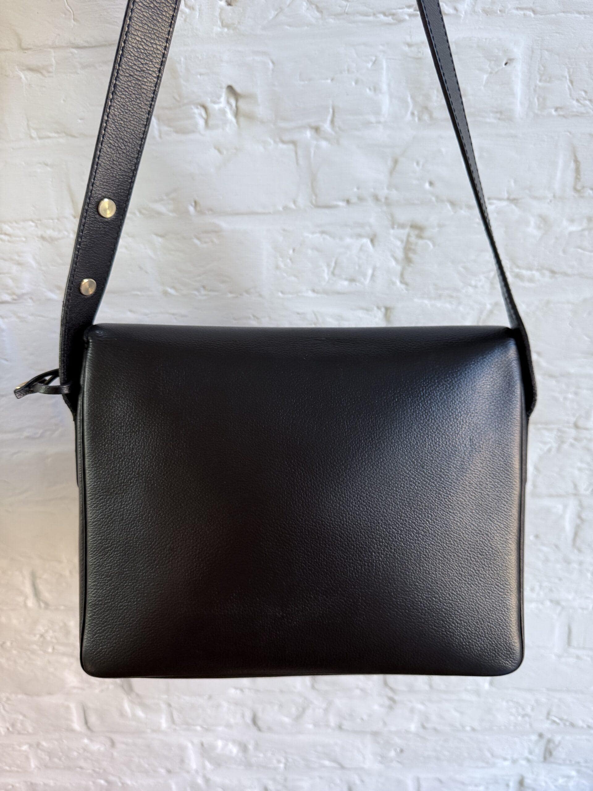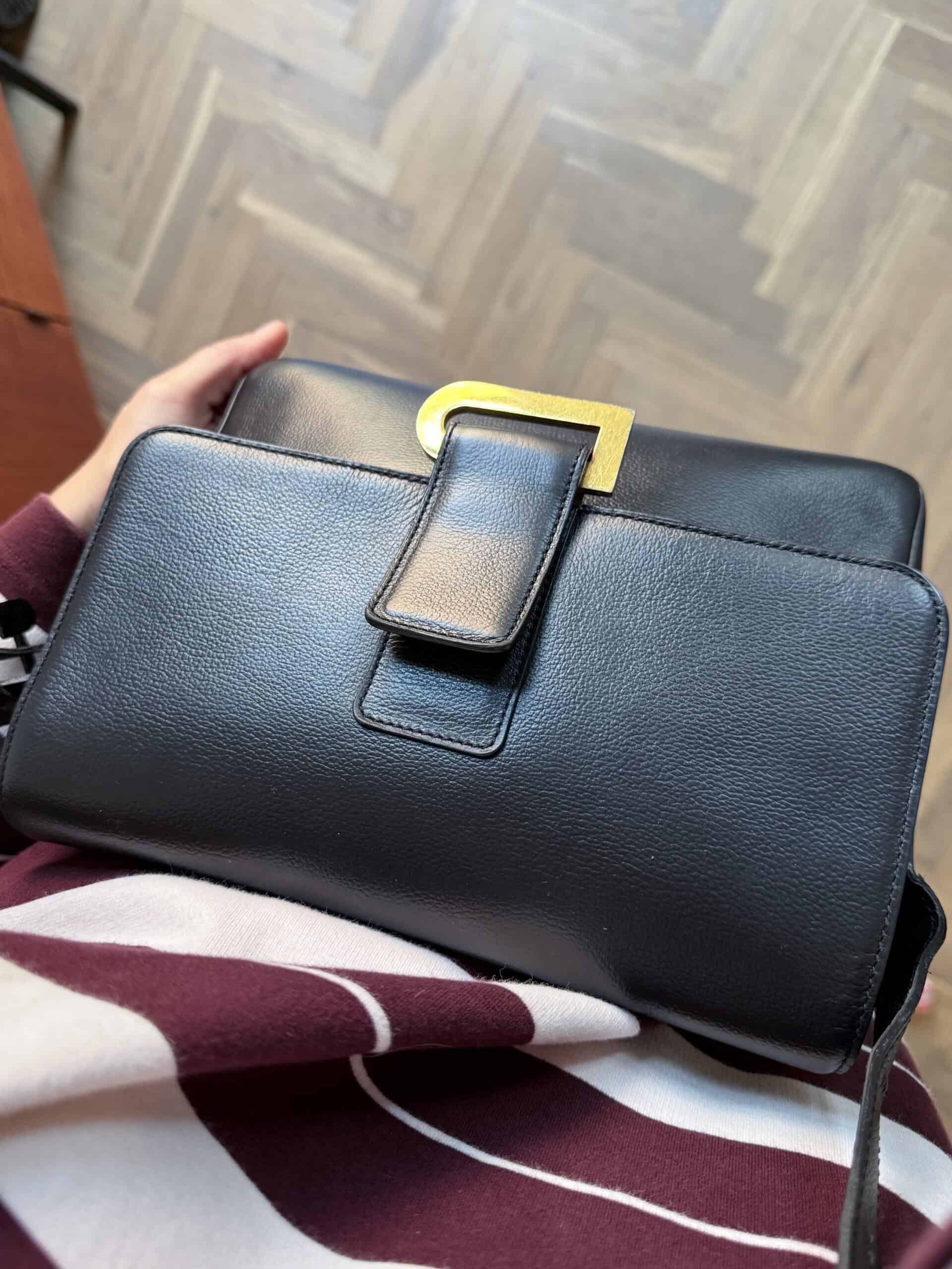 De allerhandigste crossbody van Delvaux is te verstellen in lengte met geweerknopjes, waardoor hij eveneens op schouderlengte kan worden gedragen. Hij bestaat uit één groot compartiment met en apart ritszakje.