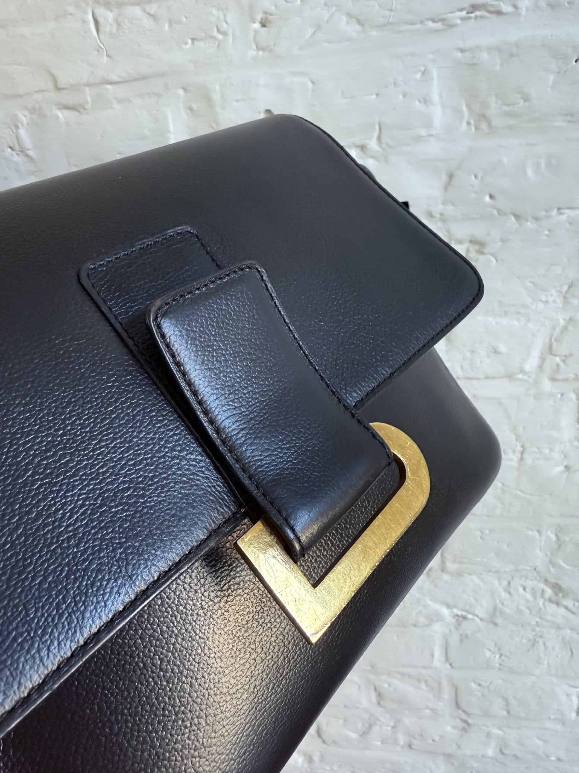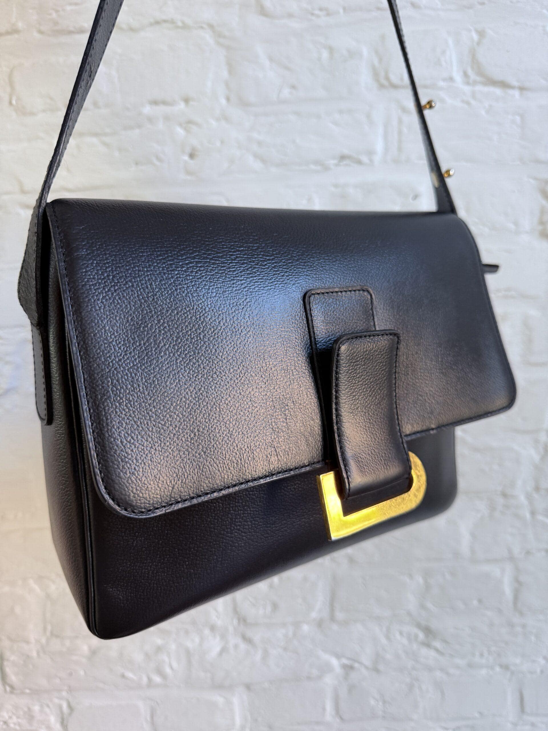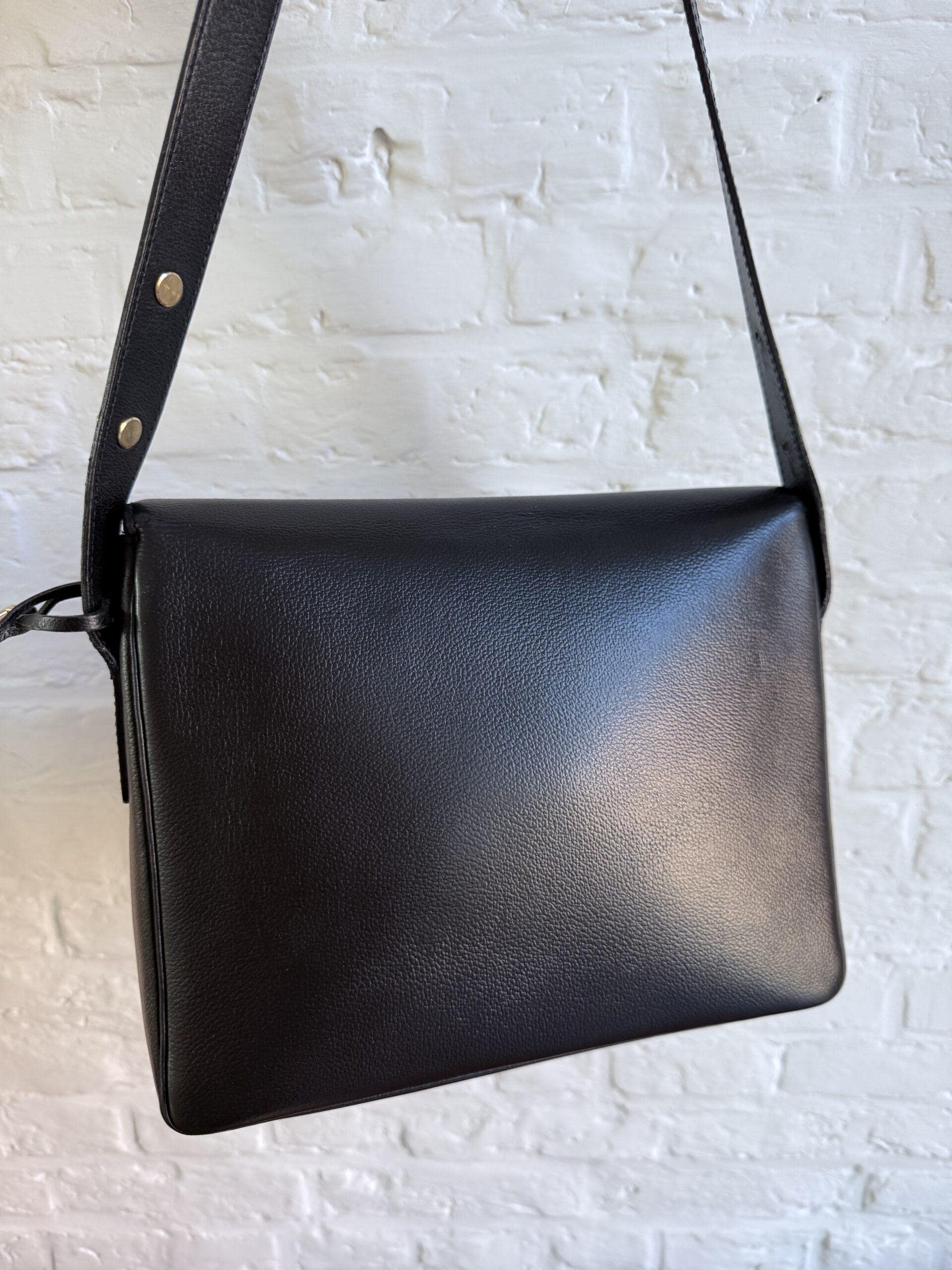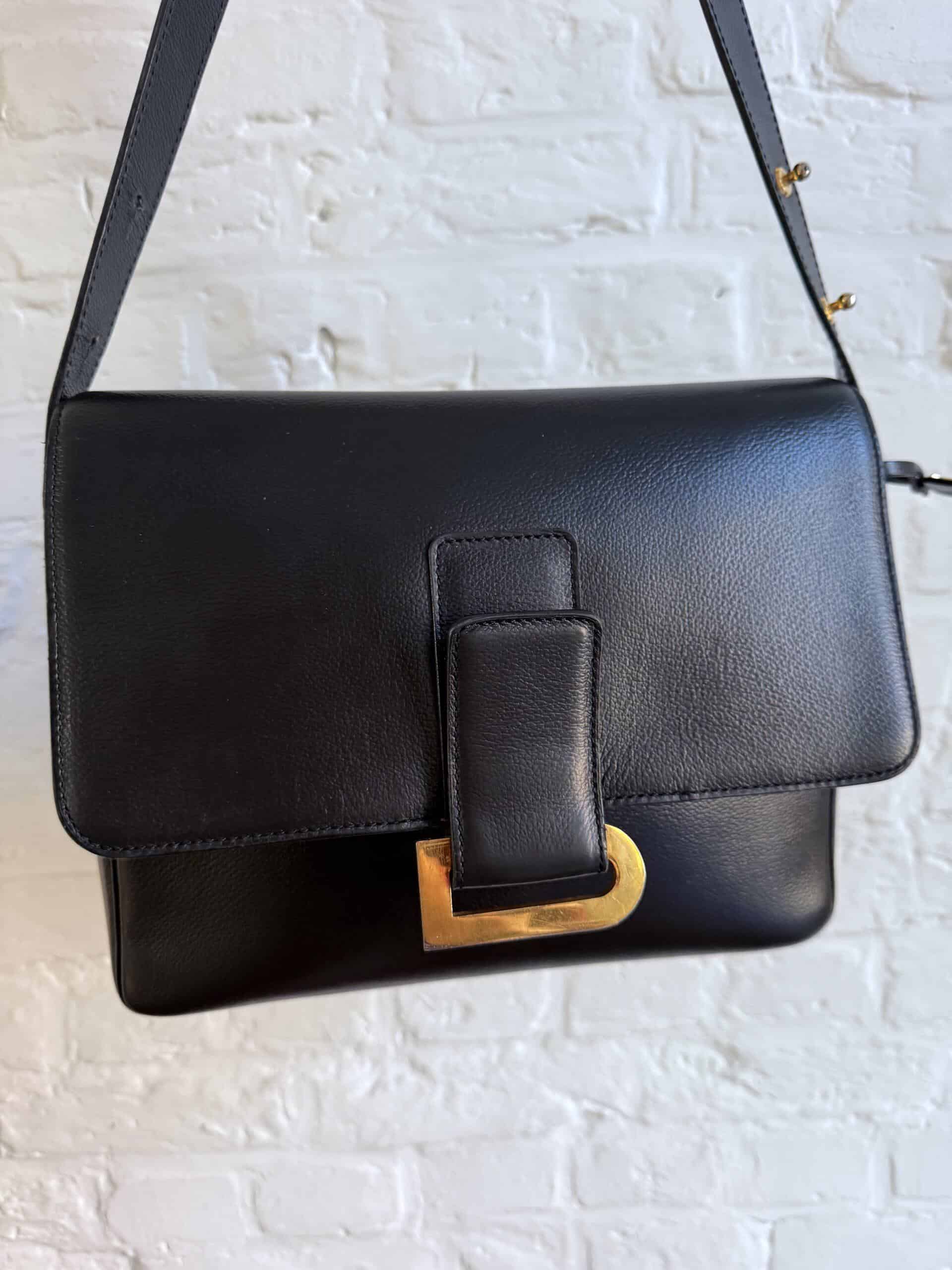 De allerhandigste crossbody van Delvaux is te verstellen in lengte met geweerknopjes, waardoor hij eveneens op schouderlengte kan worden gedragen. Hij bestaat uit één groot compartiment met en apart ritszakje.