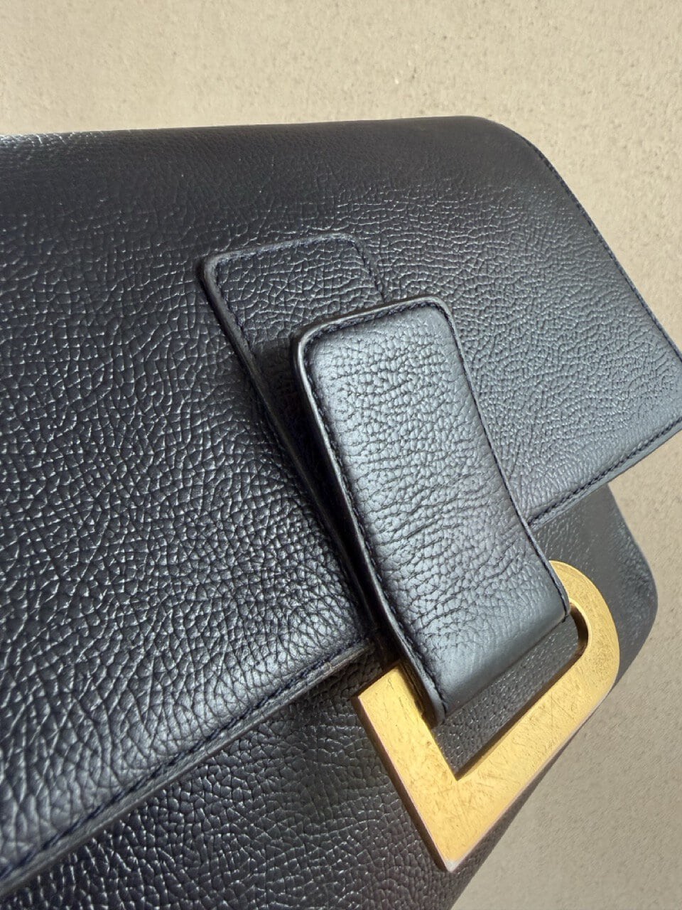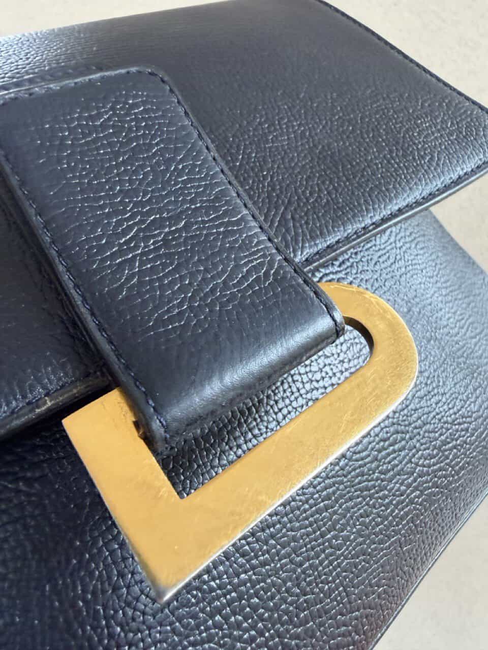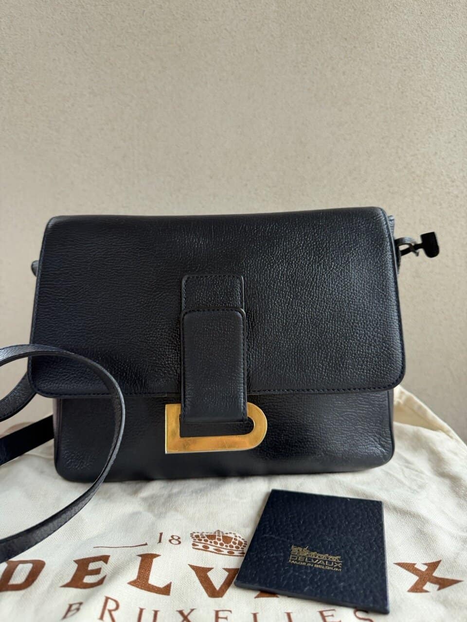 Het is een ruime tas voor dagdagelijks gebruik en een overduidelijke Delvaux, met het mooie embleem vooraan op de tas.