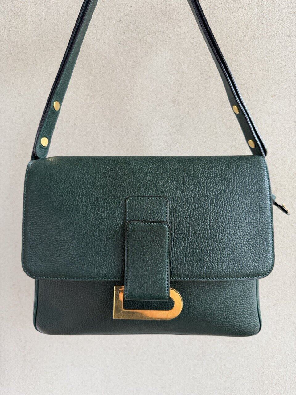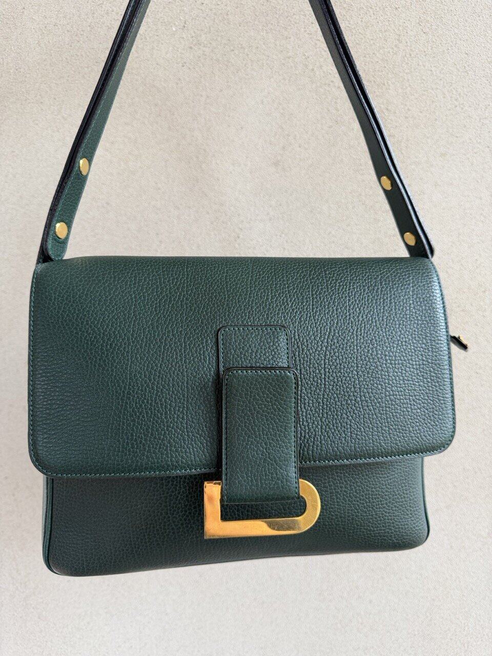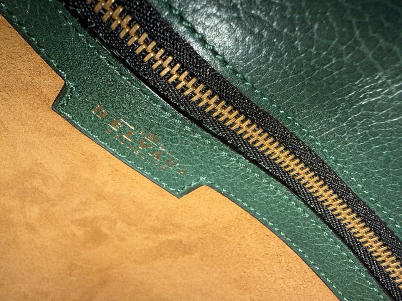 Het is een ruime tas voor dagdagelijks gebruik en een overduidelijke Delvaux, met het mooie embleem vooraan op de tas.