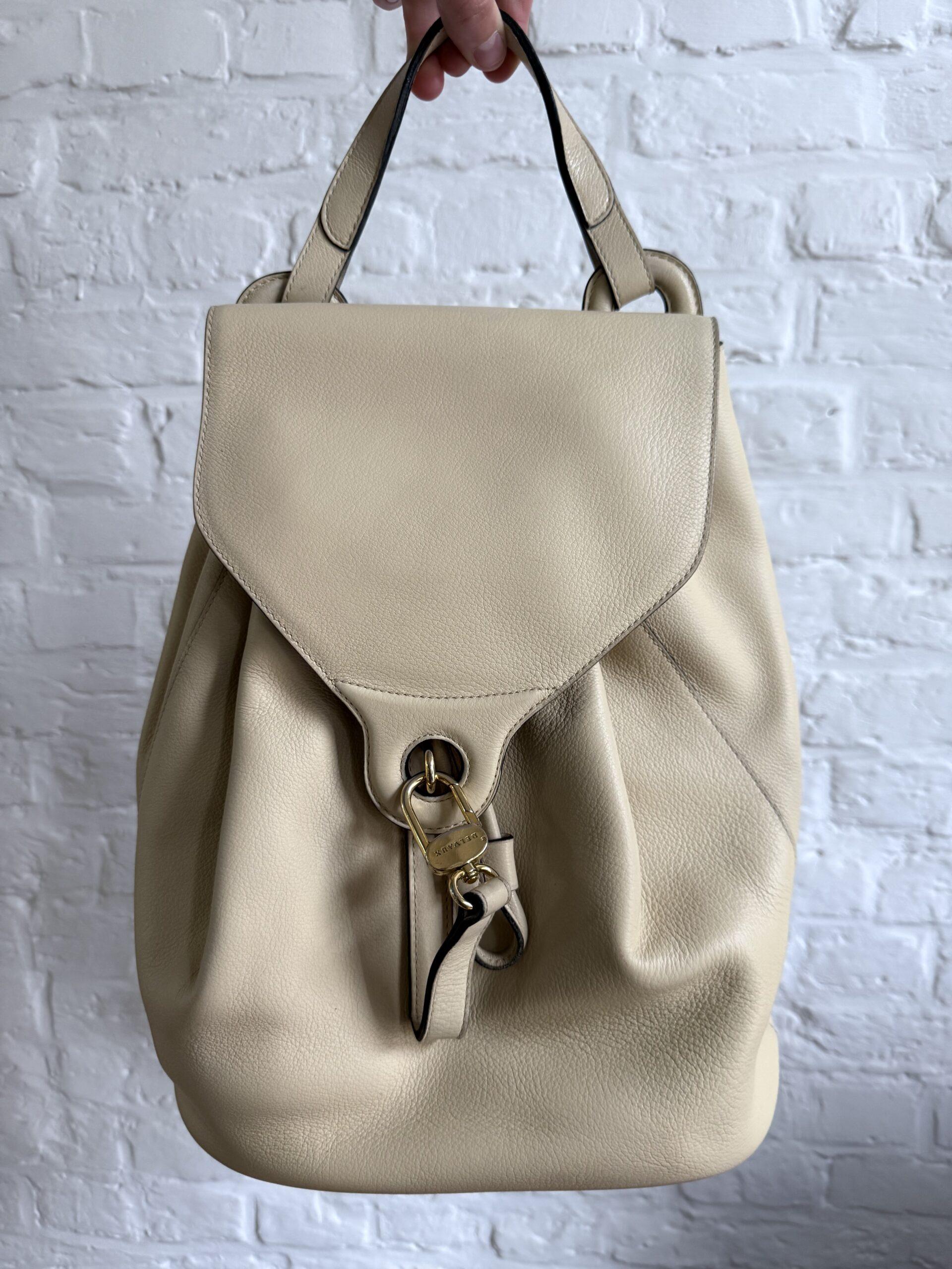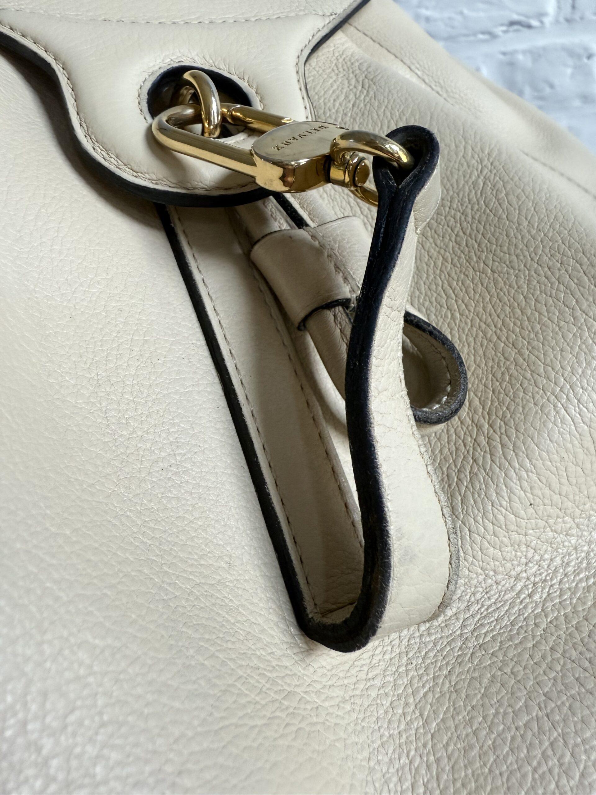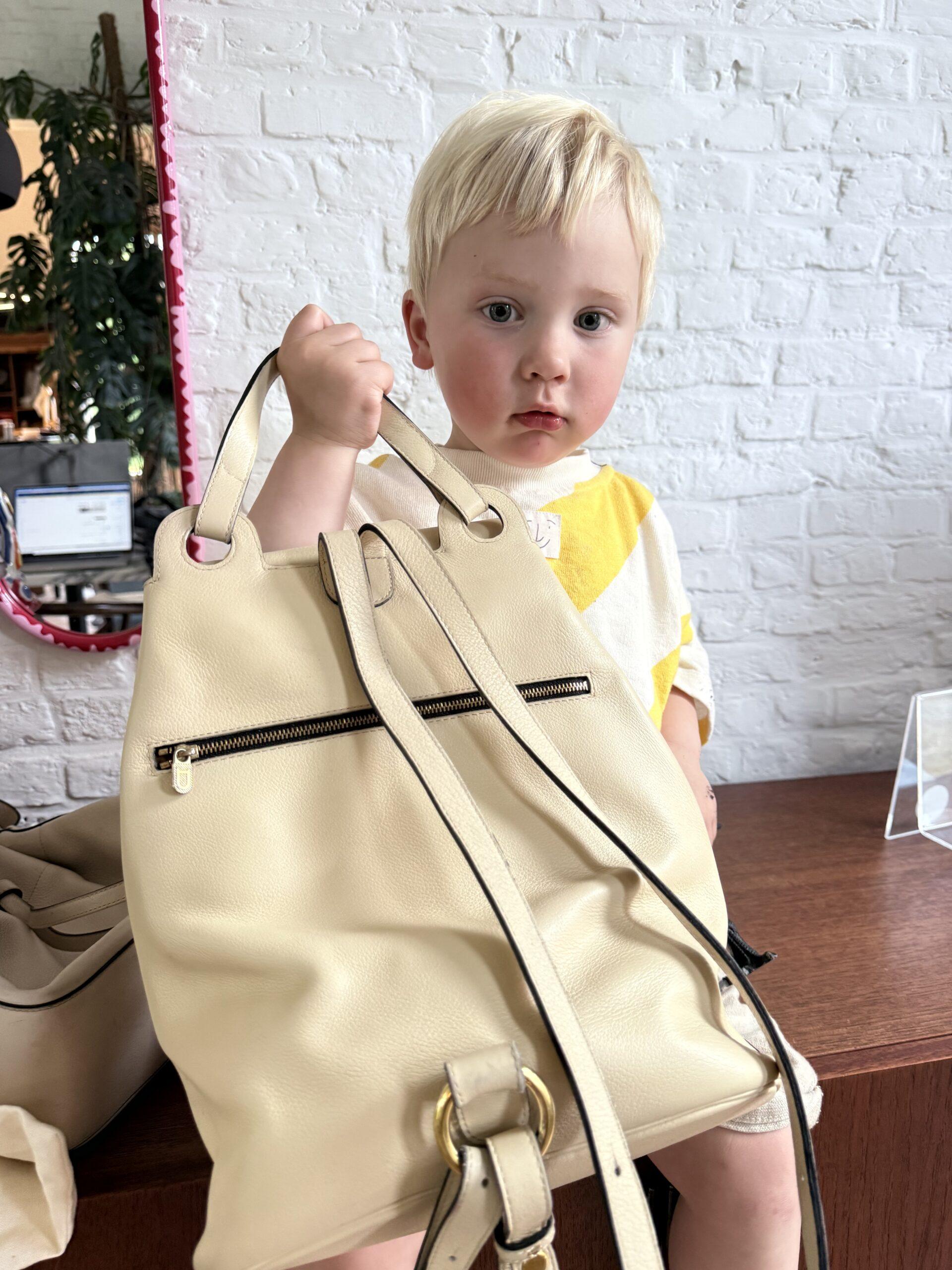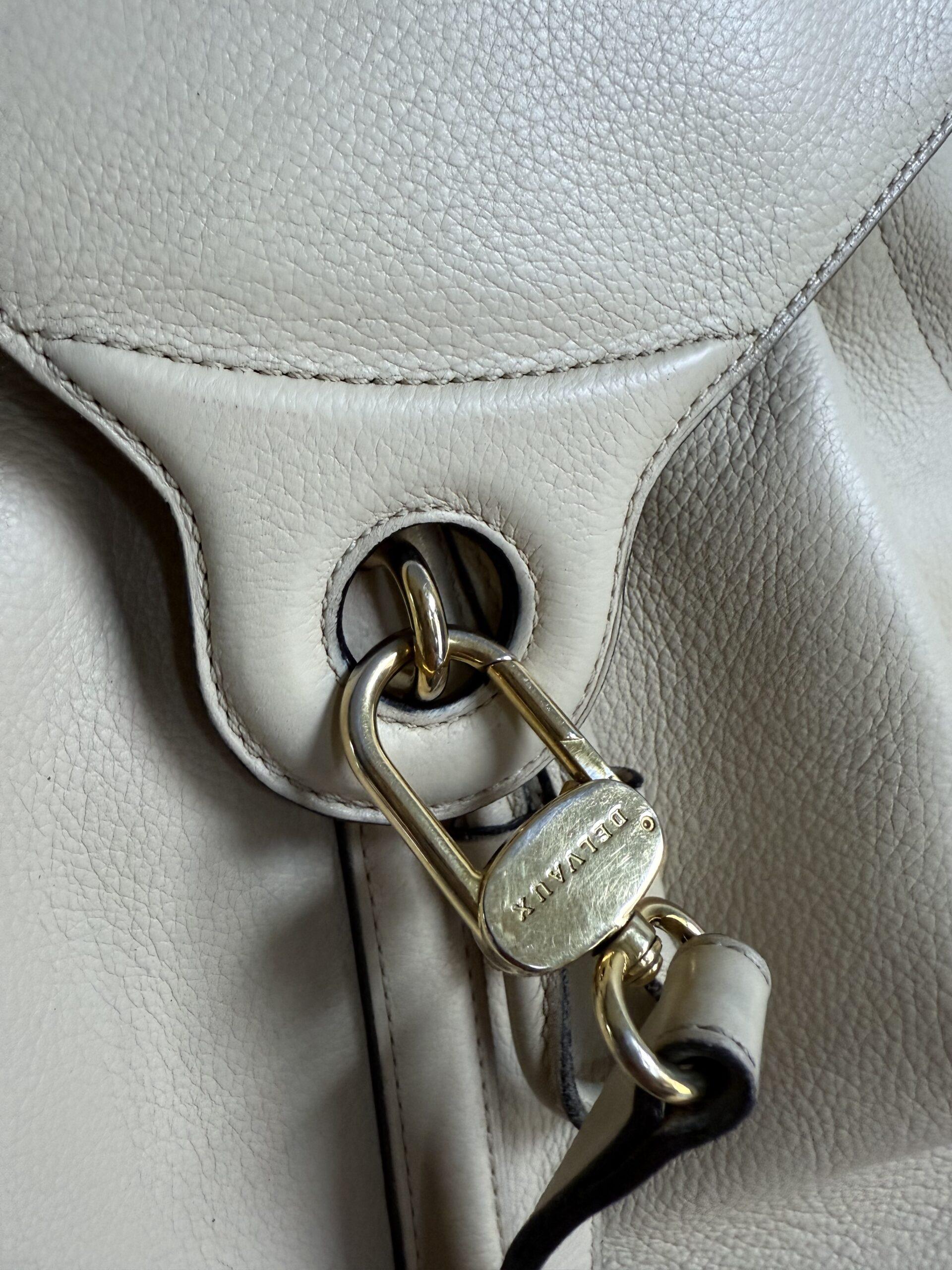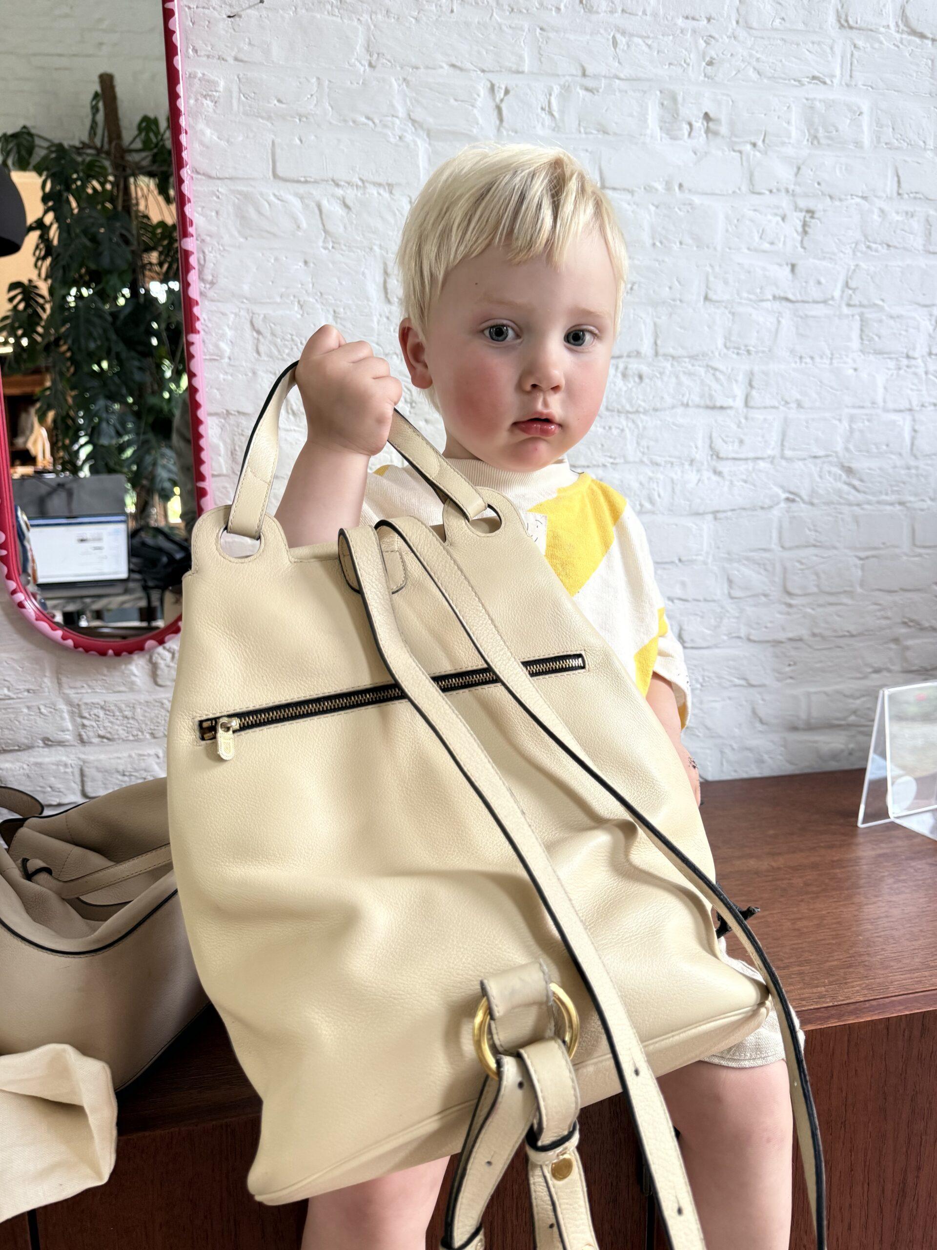 De Soleil is veruit mijn favoriete type rugzakje. Compact en een vormgeving om U tegen te zeggen. De kleur is ivoire en de hardware komt in het goud. Waanzinnig mooi, deze combinatie. De riemen zijn verstelbaar en het zakje vederlicht. Hebbeding!