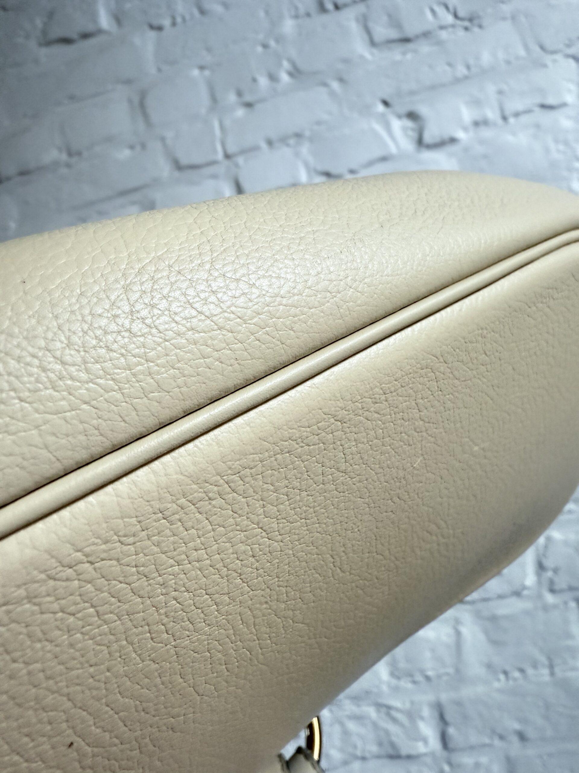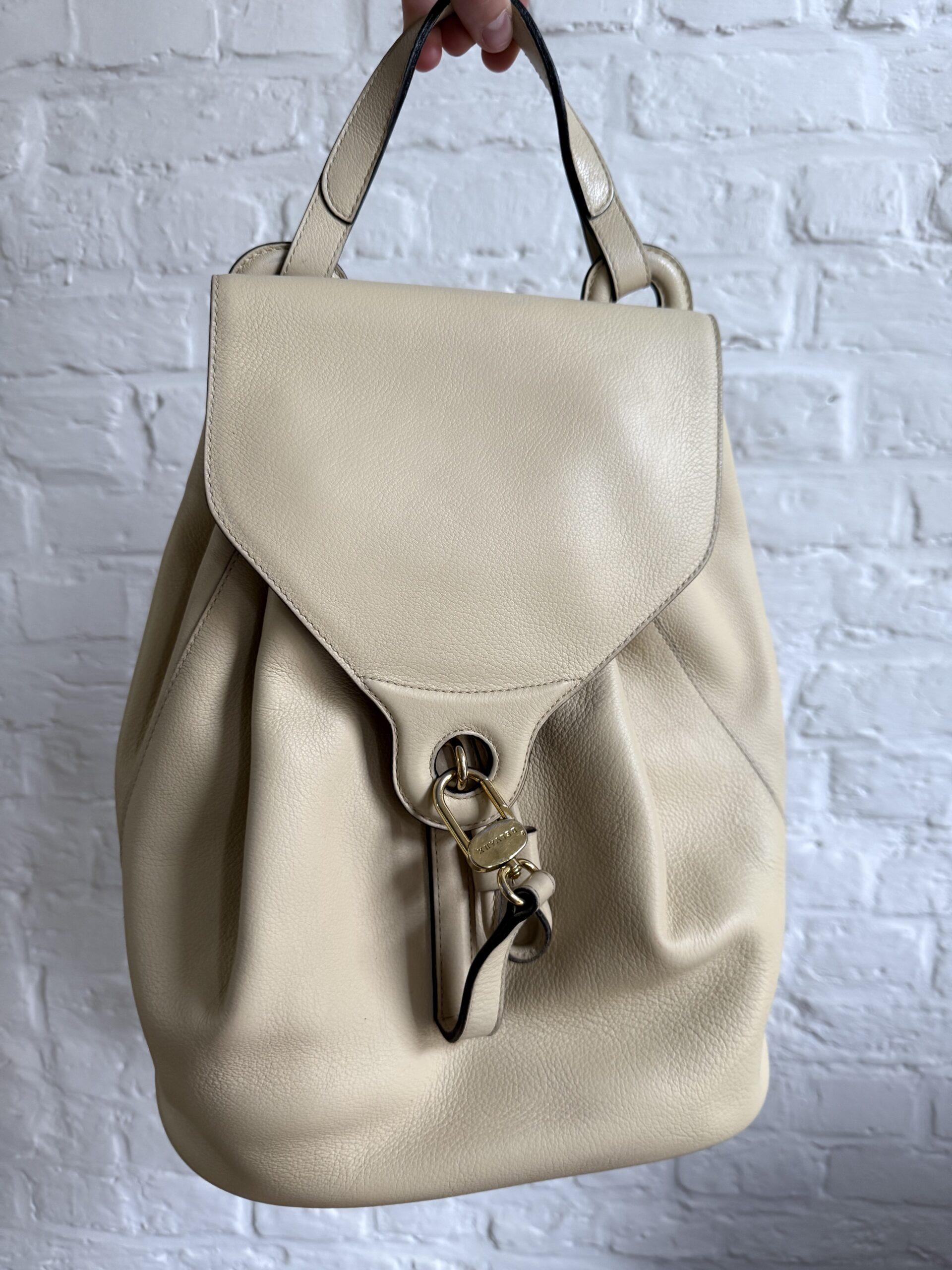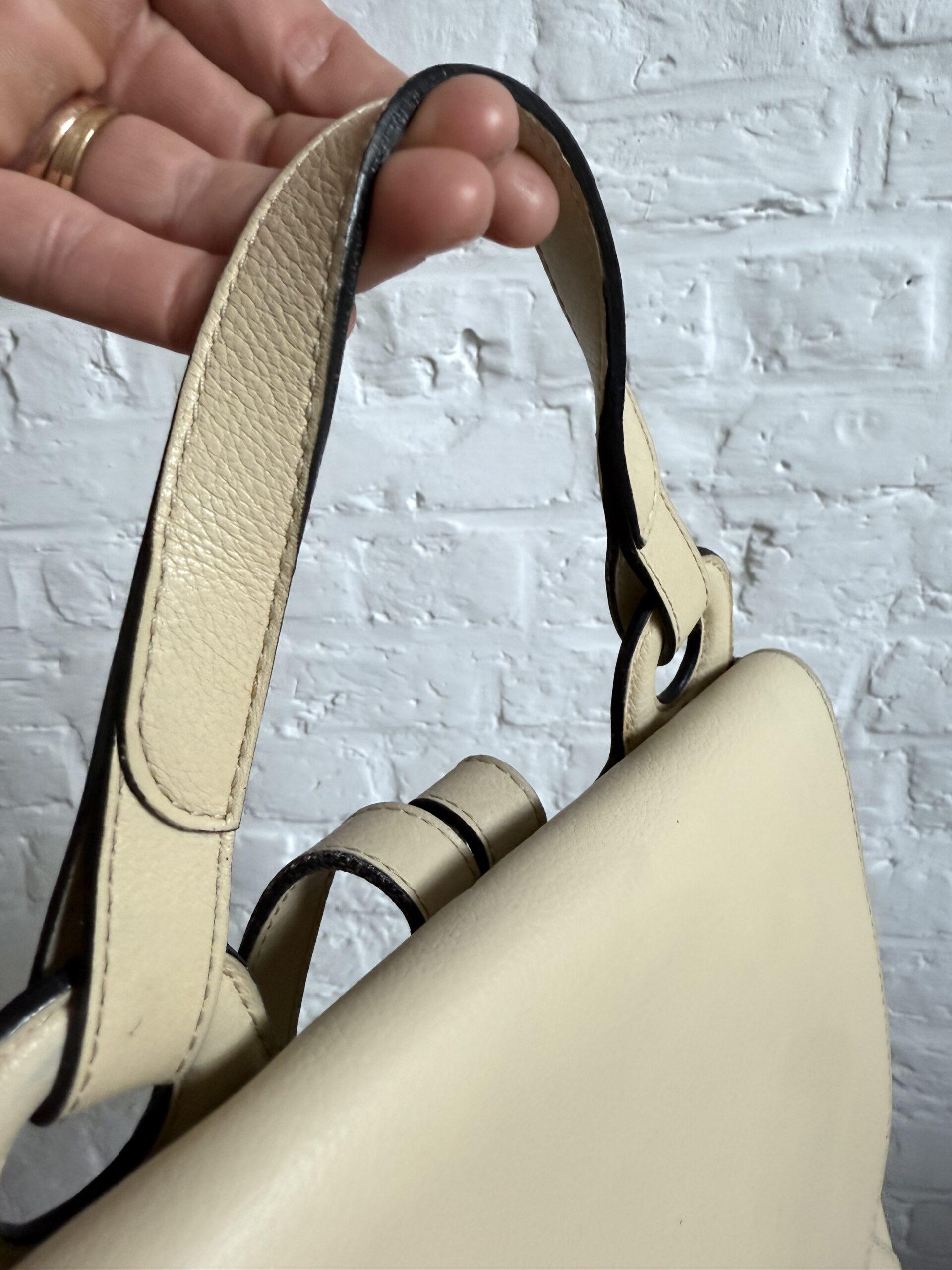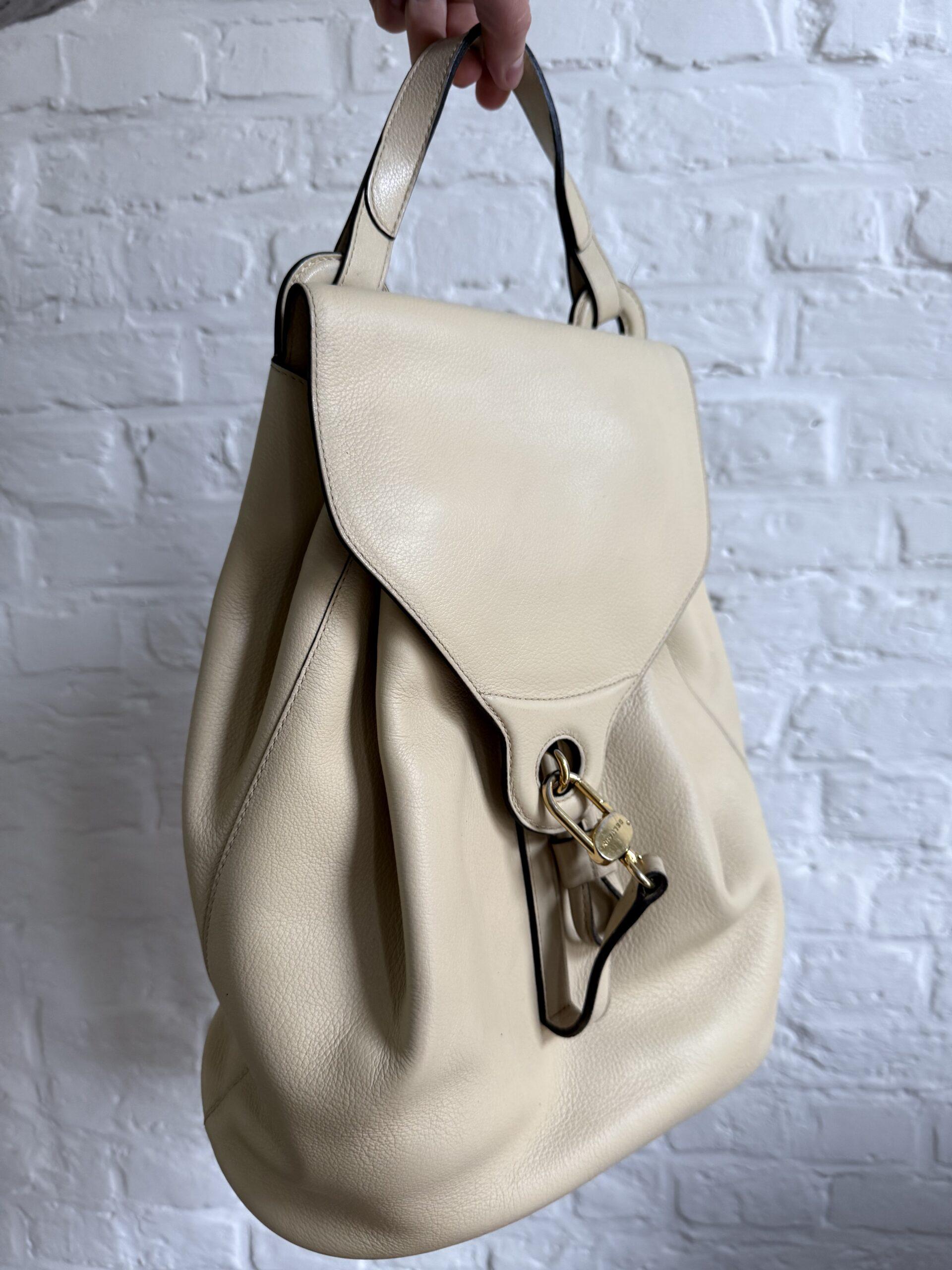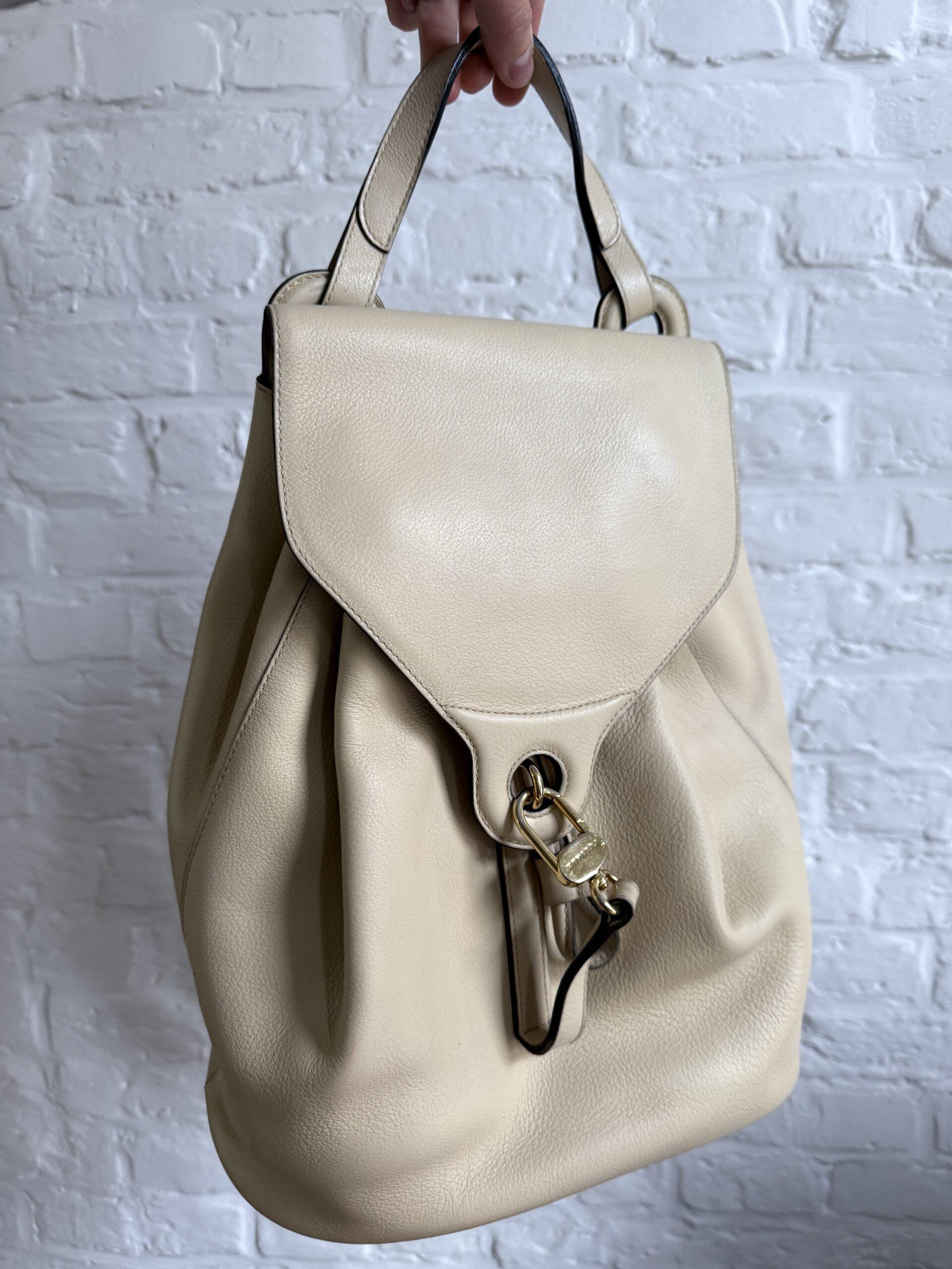 De Soleil is veruit mijn favoriete type rugzakje. Compact en een vormgeving om U tegen te zeggen. De kleur is ivoire en de hardware komt in het goud. Waanzinnig mooi, deze combinatie. De riemen zijn verstelbaar en het zakje vederlicht. Hebbeding!