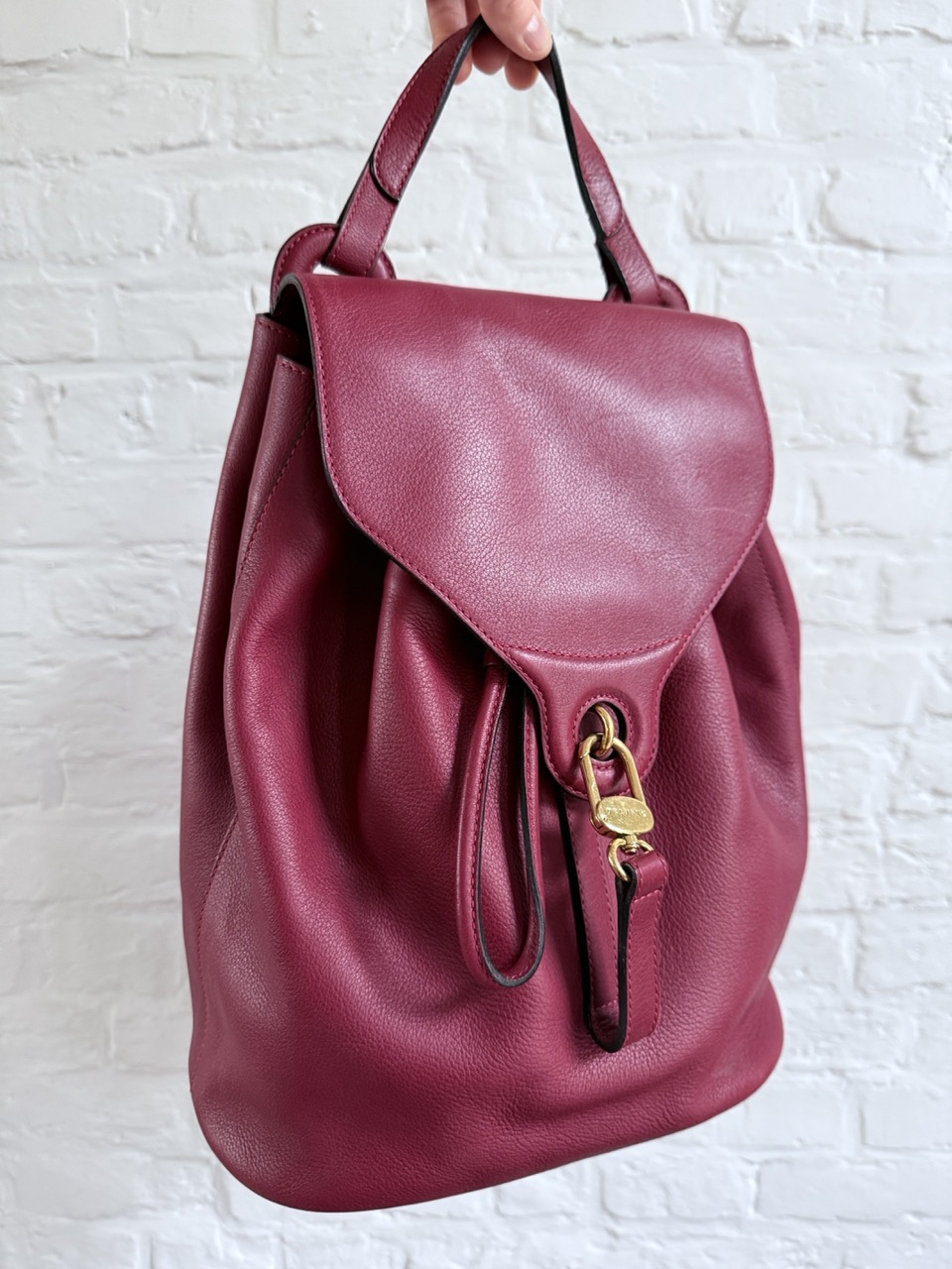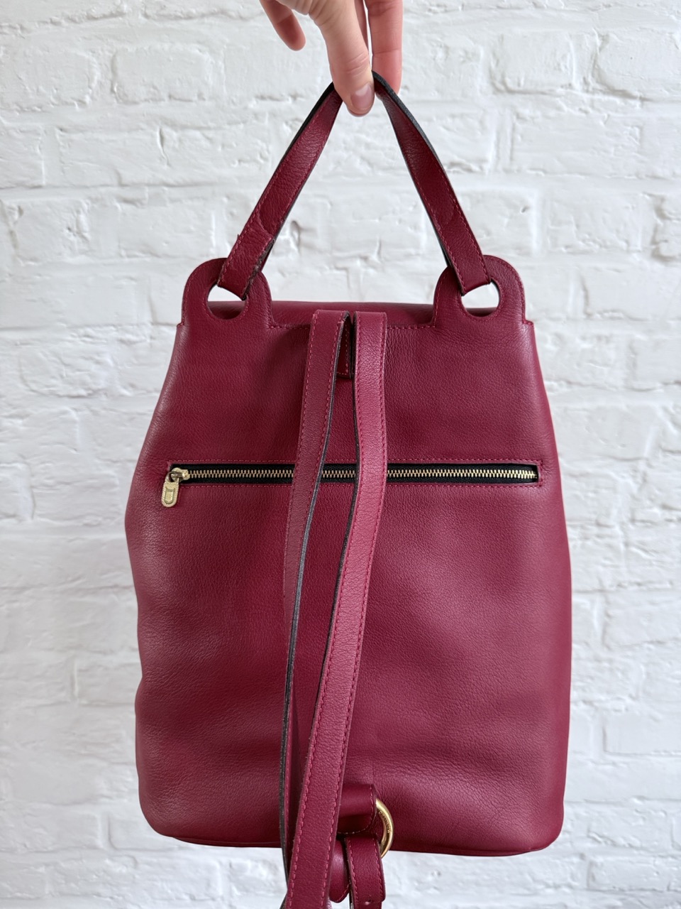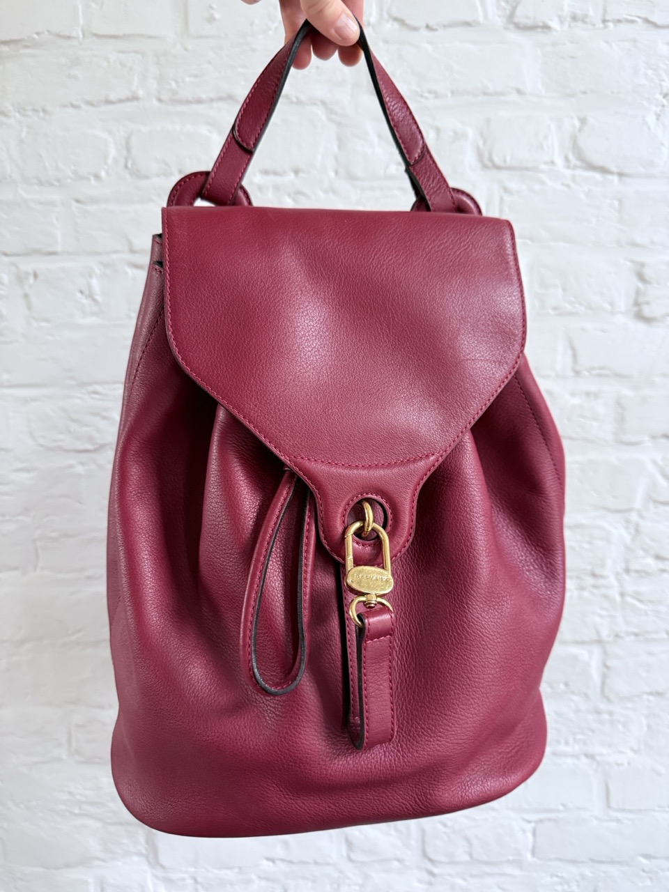 De uitvoering is in Rosso jumping calf en de hardware komt in het goud. De riemen zijn verstelbaar en het zakje vederlicht. Hebbeding!