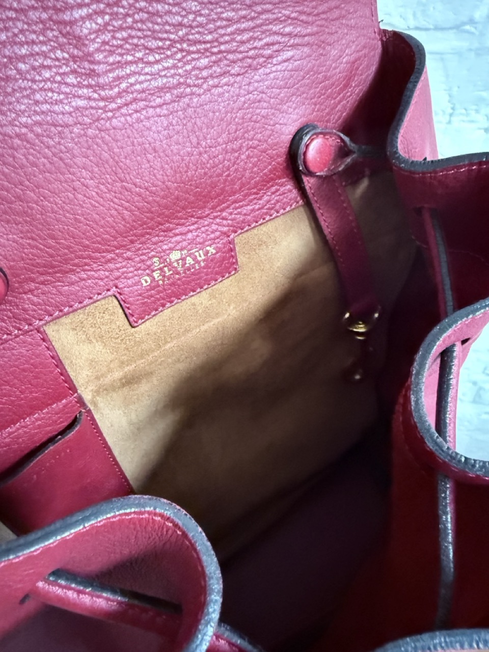 Atelier Mémé besteedt veel tijd en aandacht aan het zorgvuldig selecteren en, indien nodig, retoucheren van originele Delvaux handtassen. De tas is zo correct mogelijk in beeld gebracht met imperfecties die horen bij de vintage staat en manuele ambacht van zowel de Delvauxtas als de ambacht van het restaureren.