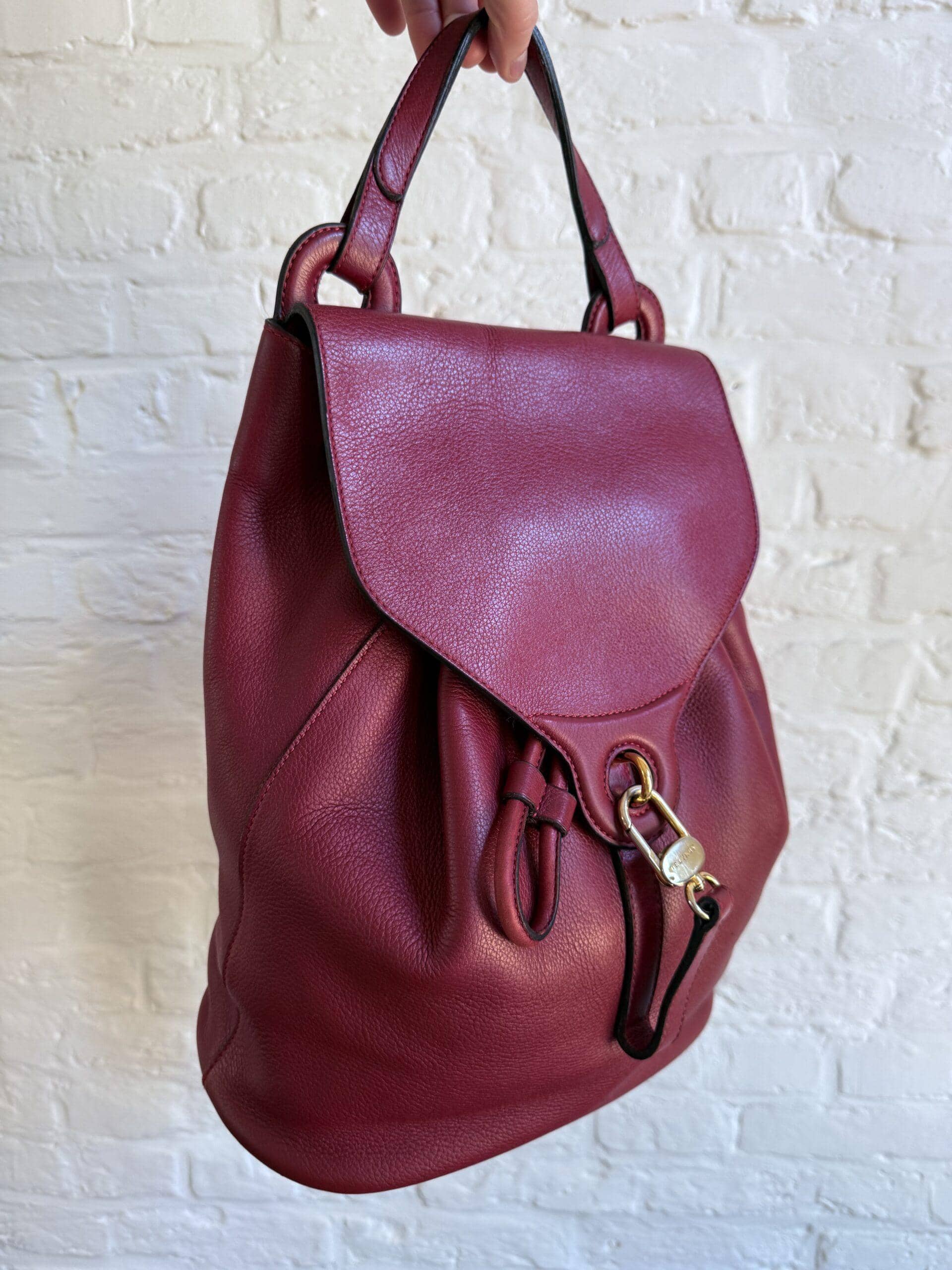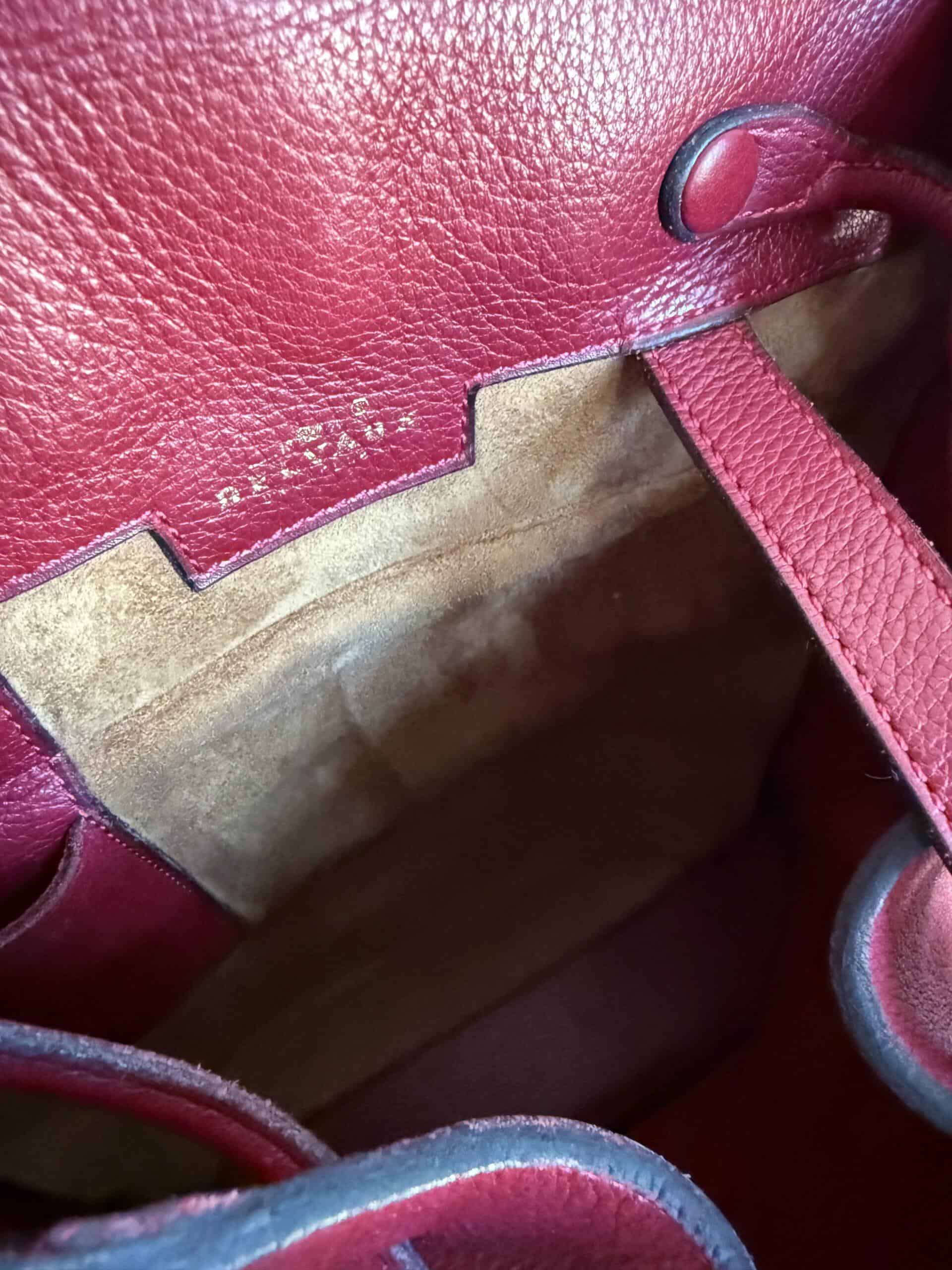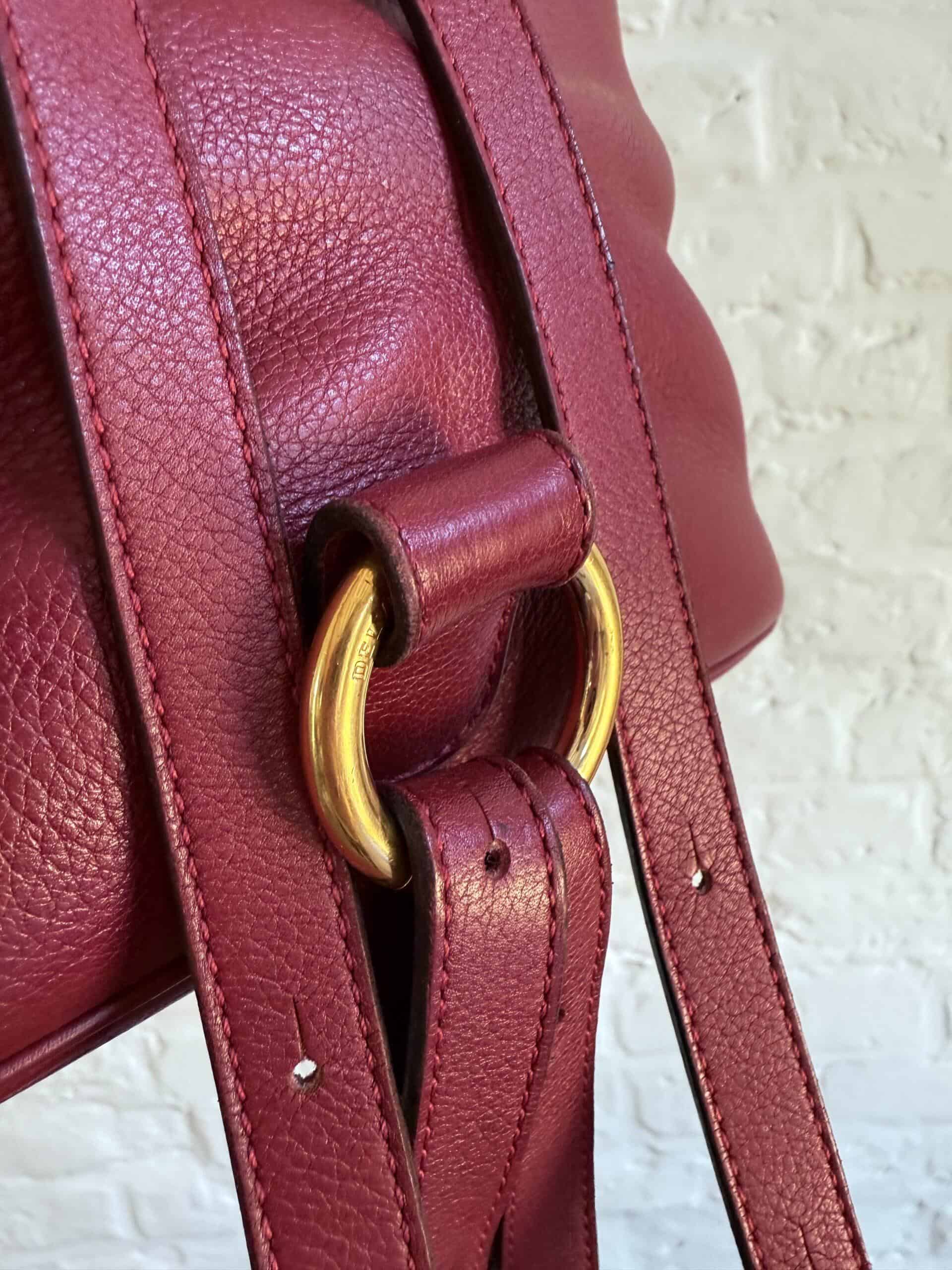 De uitvoering is in Rosso jumping calf en de hardware komt in het goud. De riemen zijn verstelbaar en het zakje vederlicht. Hebbeding!
