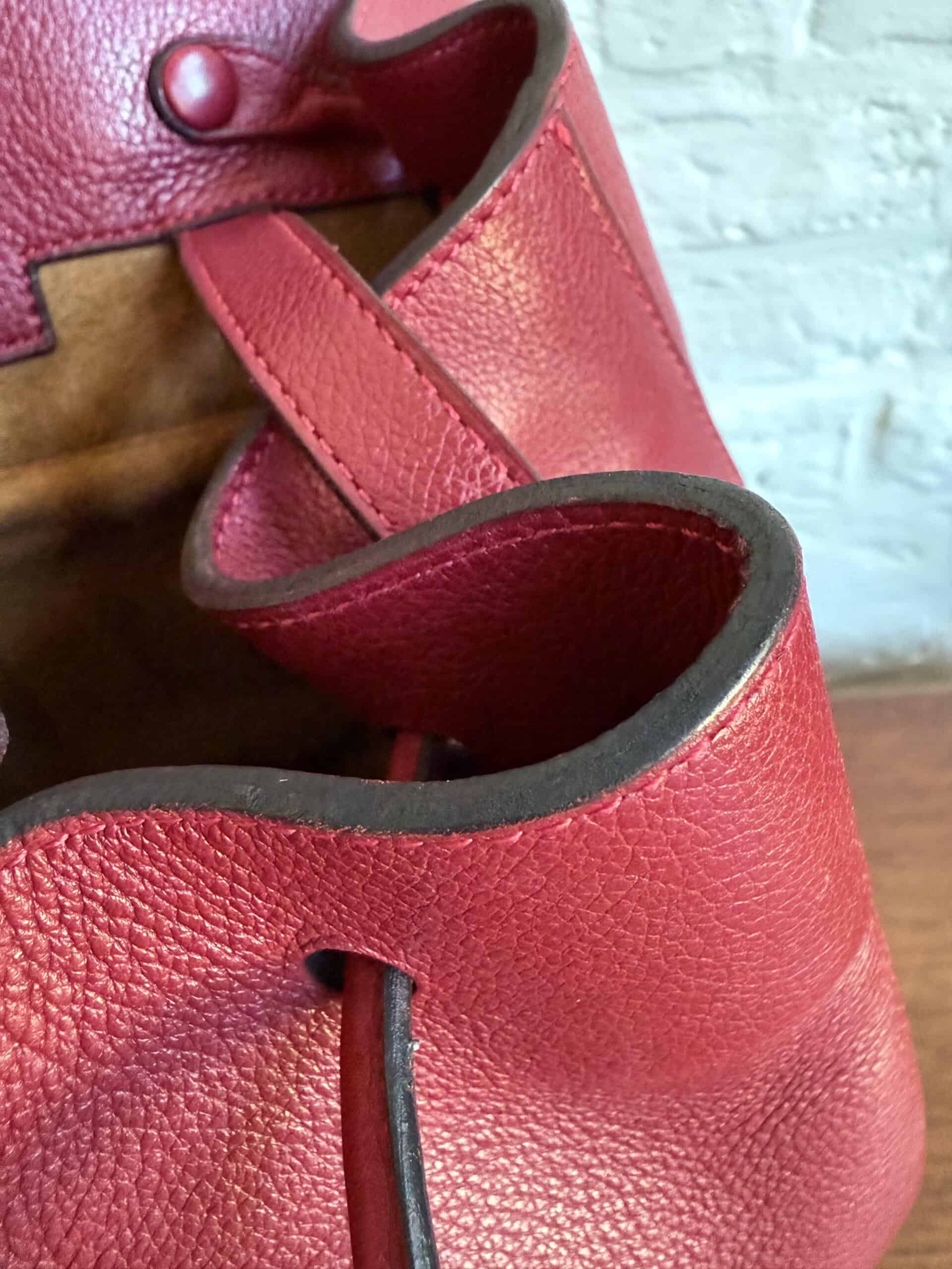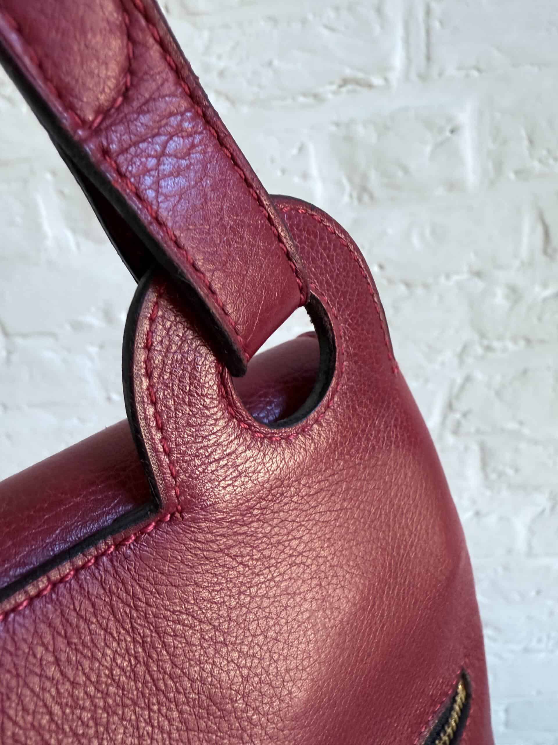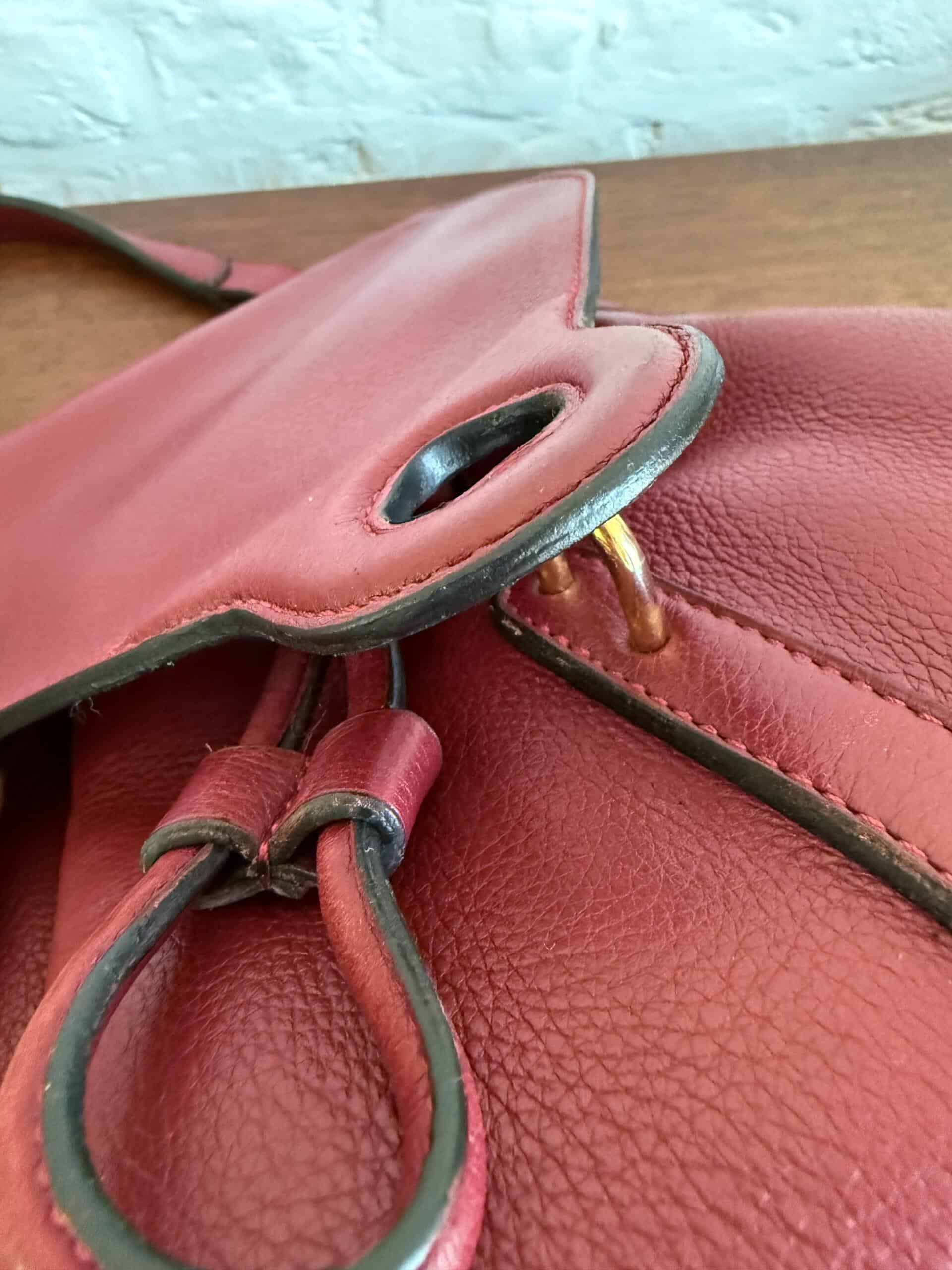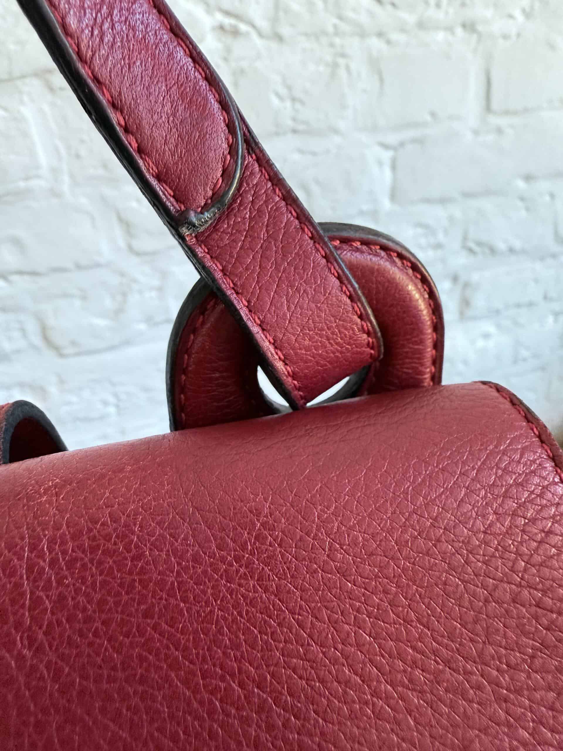 De uitvoering is in Rosso jumping calf en de hardware komt in het goud. De riemen zijn verstelbaar en het zakje vederlicht. Hebbeding!
