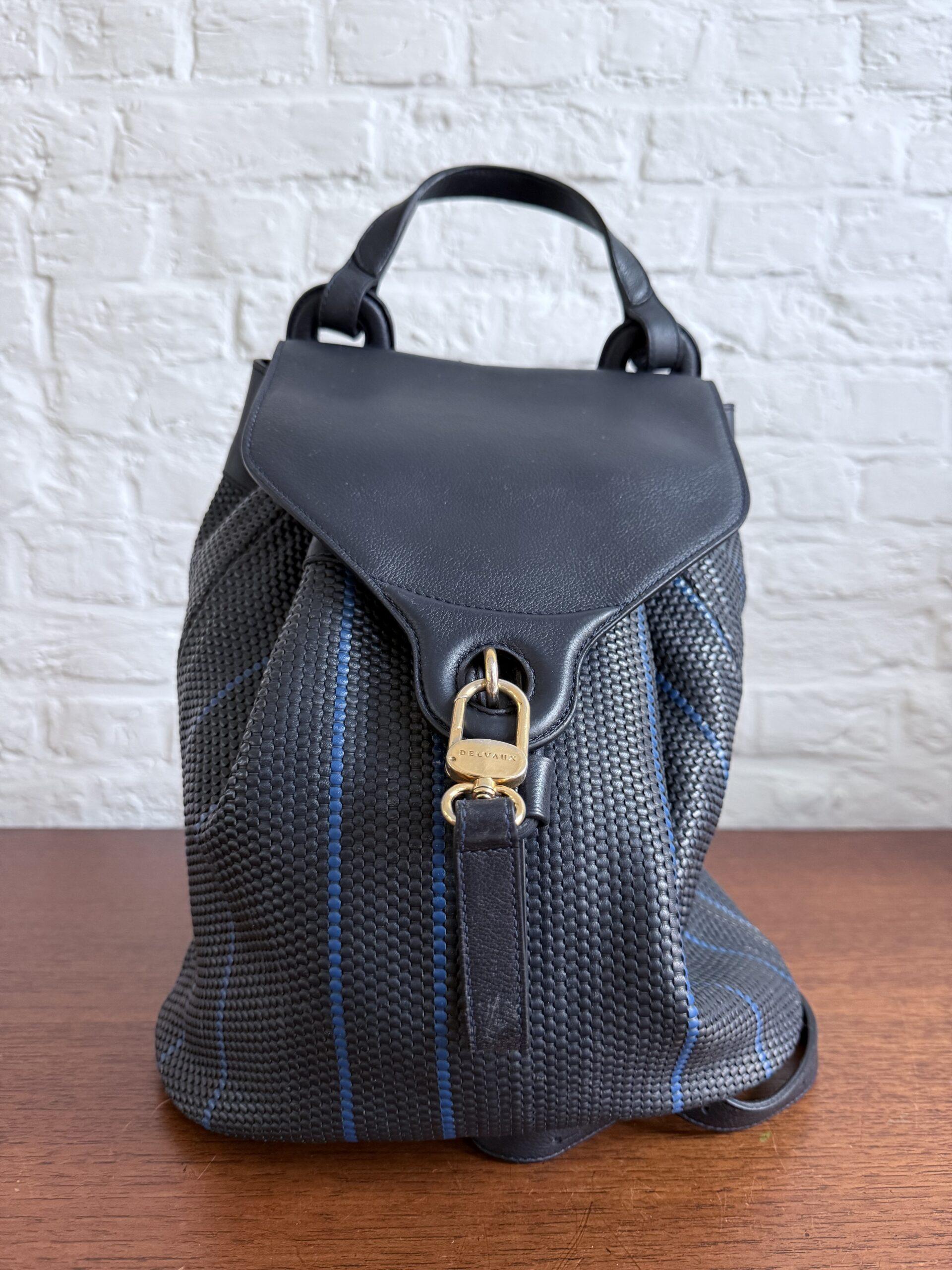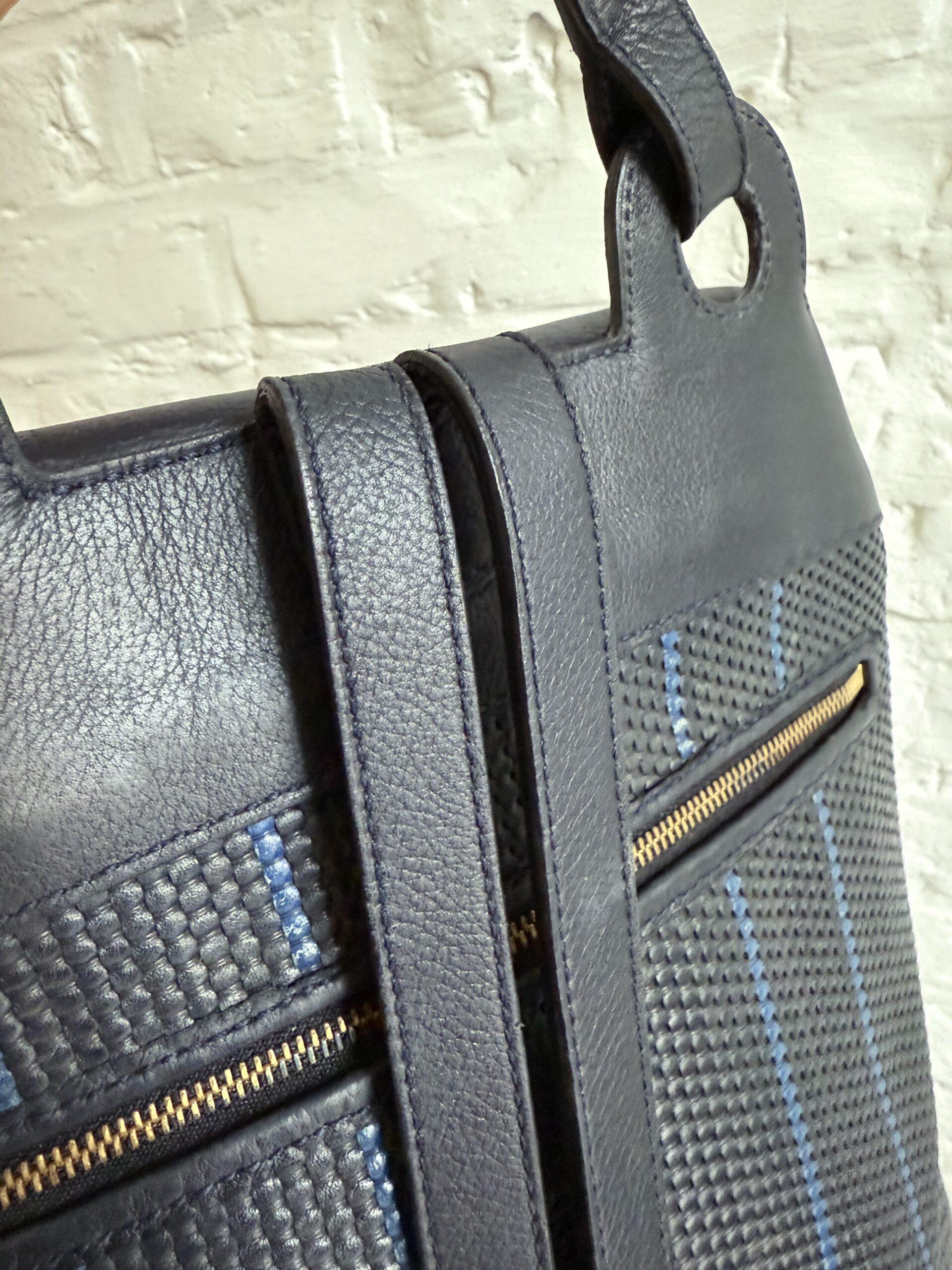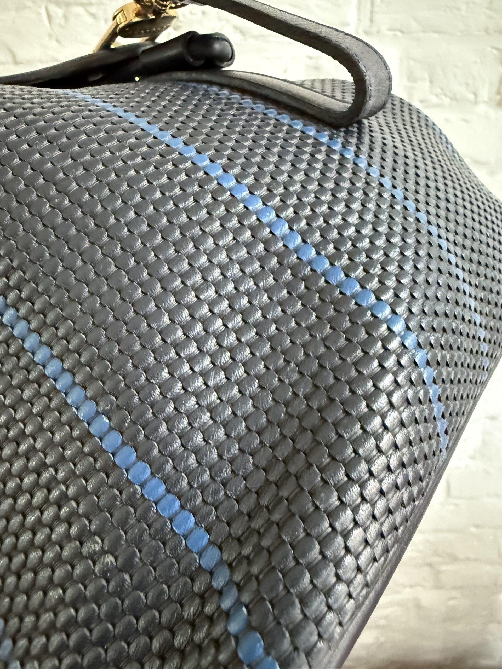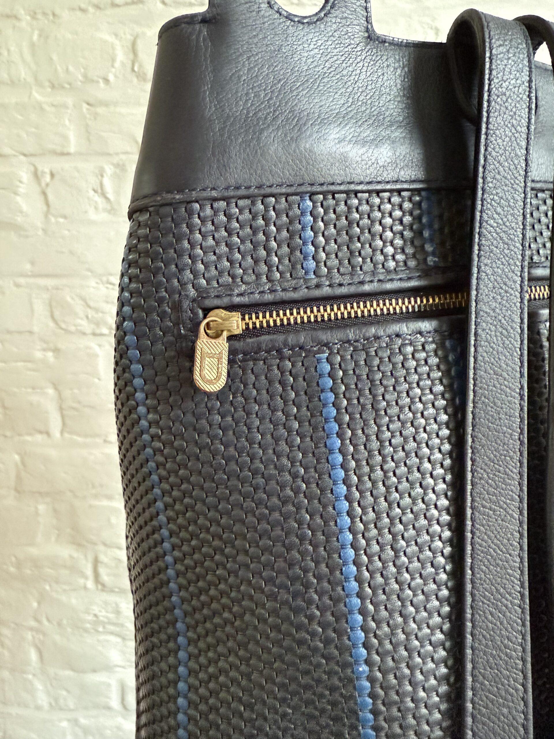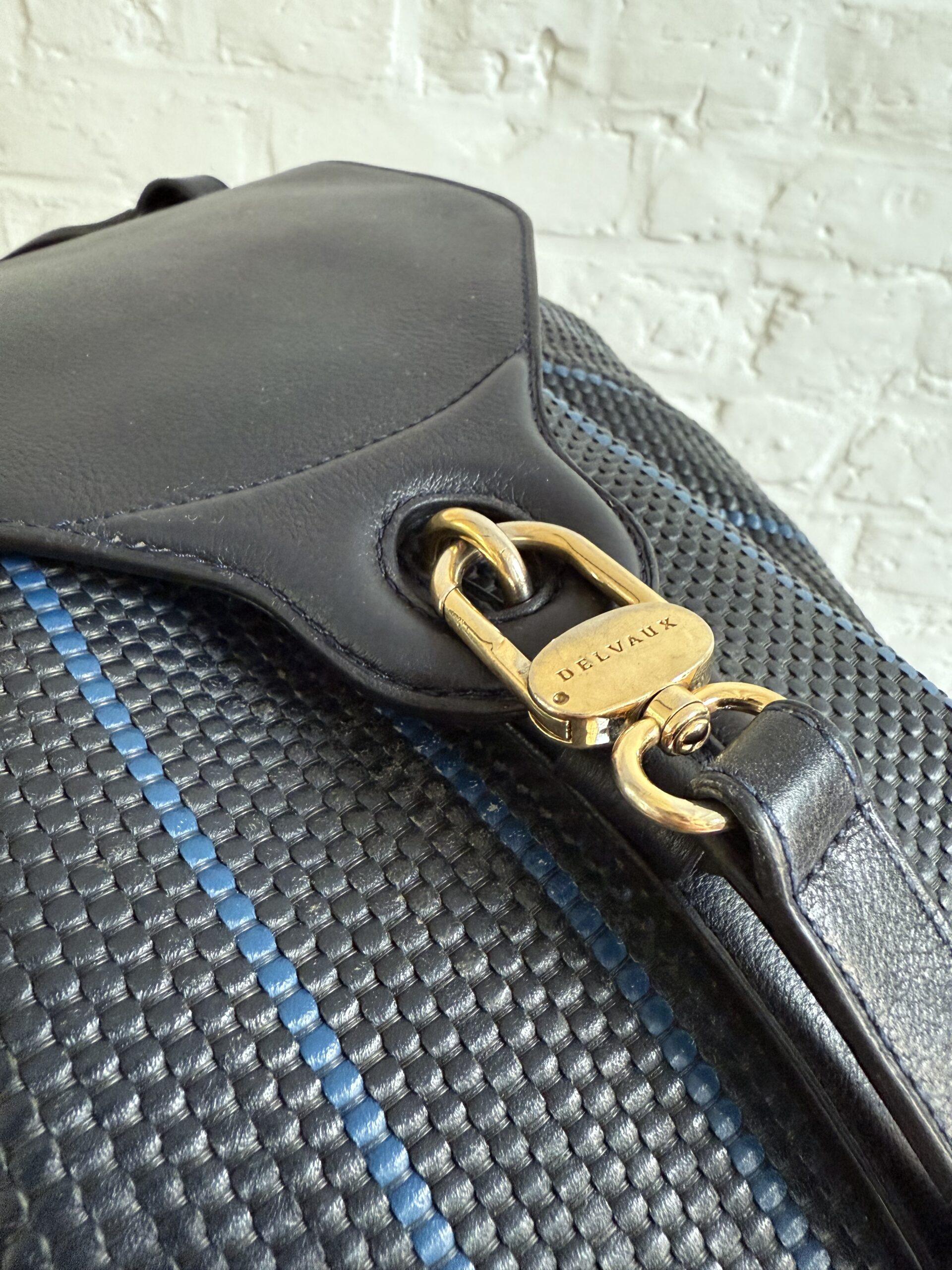 Compact en een vormgeving om U tegen te zeggen. De uitvoering in toile de cuir geeft nét dat ietsje meer. Toile de cuir was en is namelijk hét handelsmerk van Delvaux. De kleur is marine blauw met sporadische afwisseling van kobalt, de hardware komt in het goud.