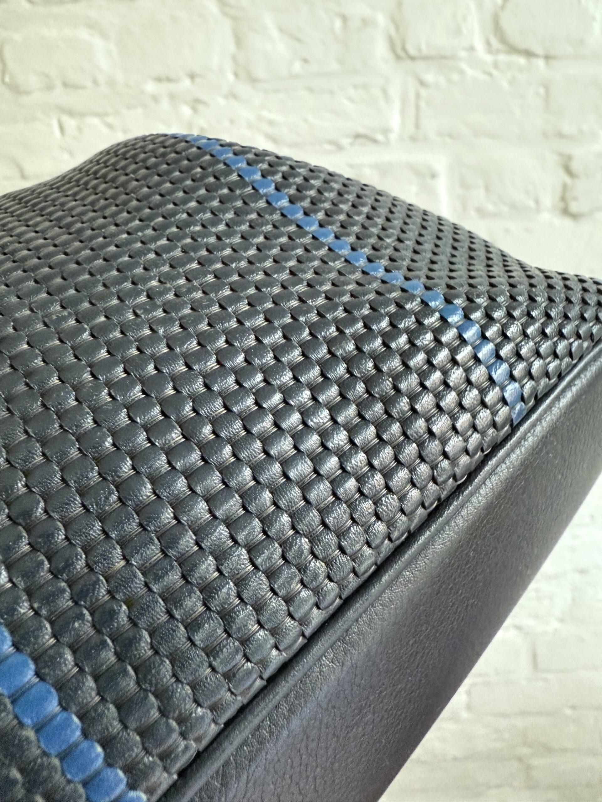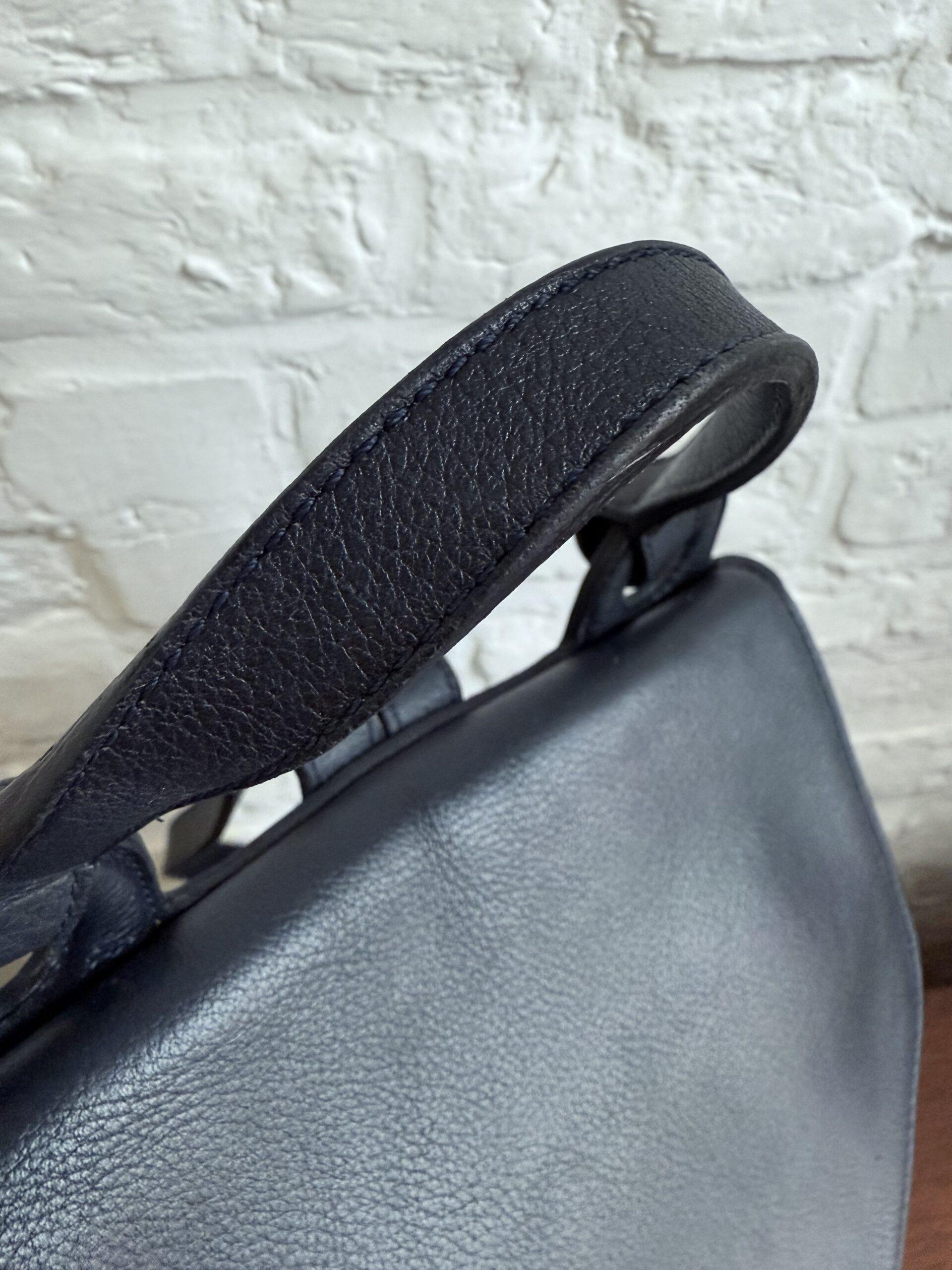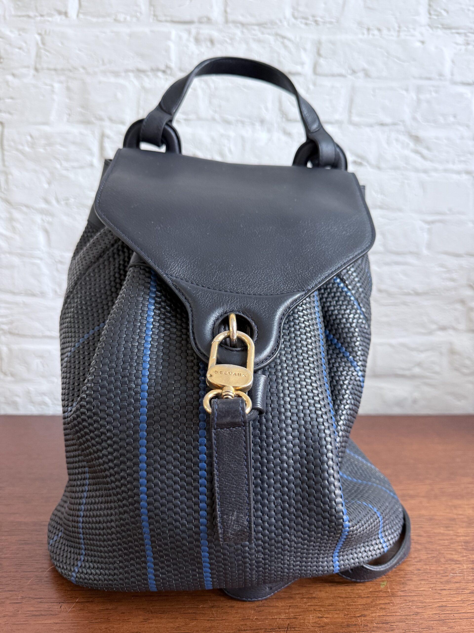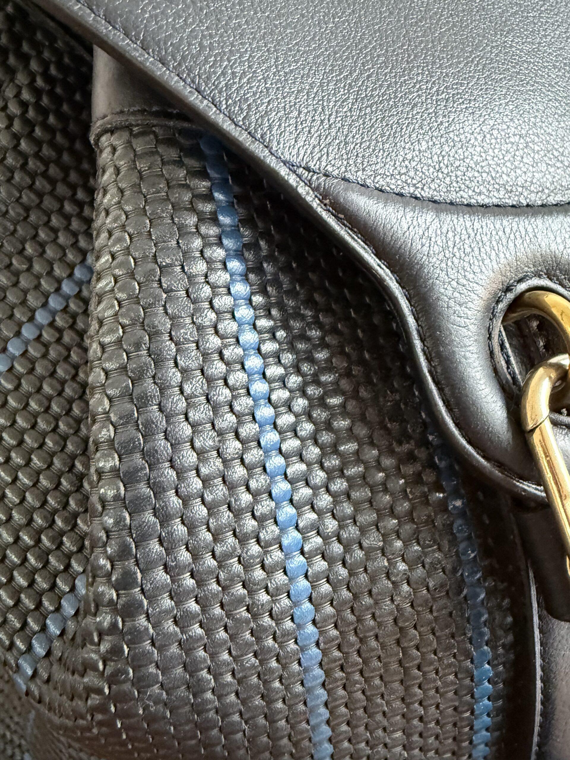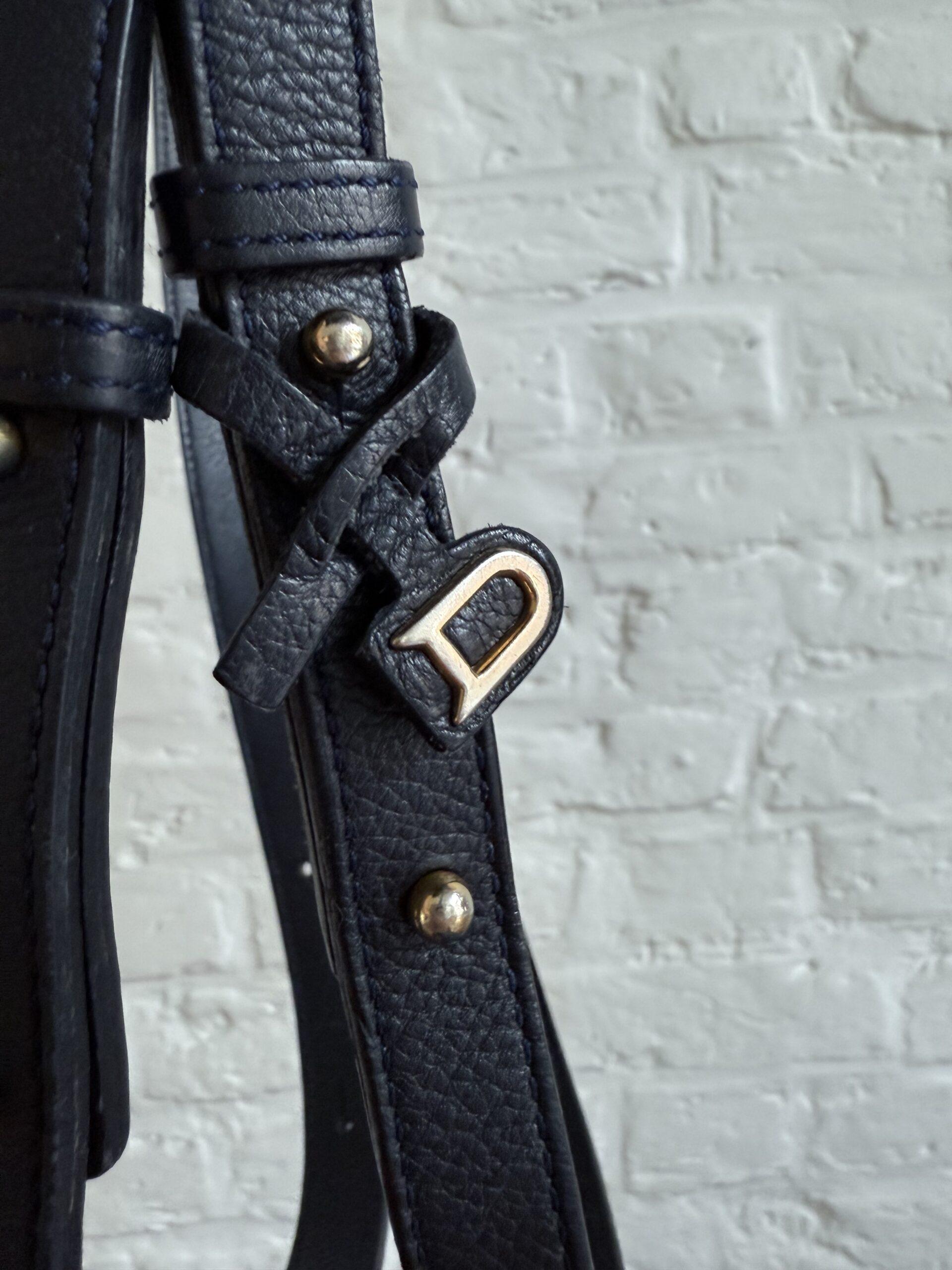 Compact en een vormgeving om U tegen te zeggen. De uitvoering in toile de cuir geeft nét dat ietsje meer. Toile de cuir was en is namelijk hét handelsmerk van Delvaux. De kleur is marine blauw met sporadische afwisseling van kobalt, de hardware komt in het goud.