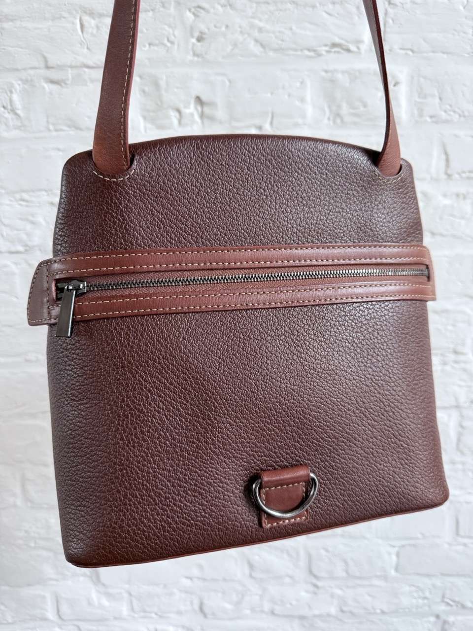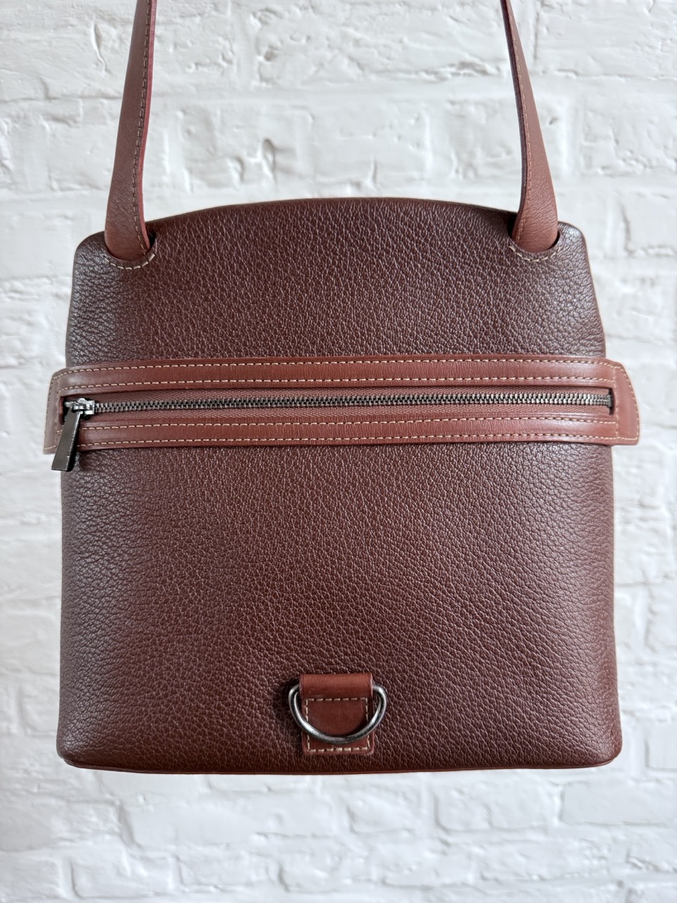 Deux De Delvaux ‘Le Vingt-Cinq’ 2-in-1 tas in Chocolat, kan op meerdere manieren gedragen worden. Super handig toch?
