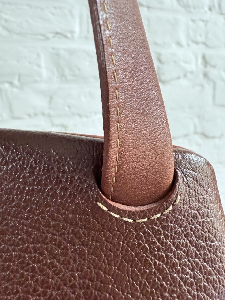 Atelier Mémé besteedt veel tijd en aandacht aan het zorgvuldig selecteren en, indien nodig, retoucheren van originele Delvaux handtassen. De tas is zo correct mogelijk in beeld gebracht met imperfecties die horen bij de vintage staat en manuele ambacht van zowel de Delvauxtas als de ambacht van het restaureren.