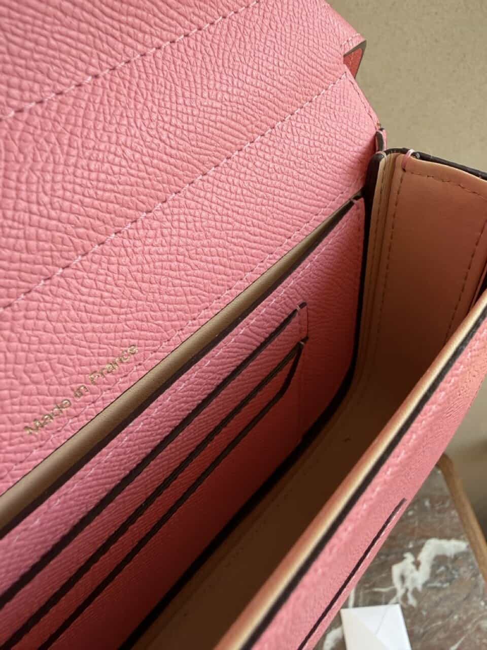 Ze bestaat uit 1 groot compartiment, een steekzakje in de rug en een paar creditcardvakjes.