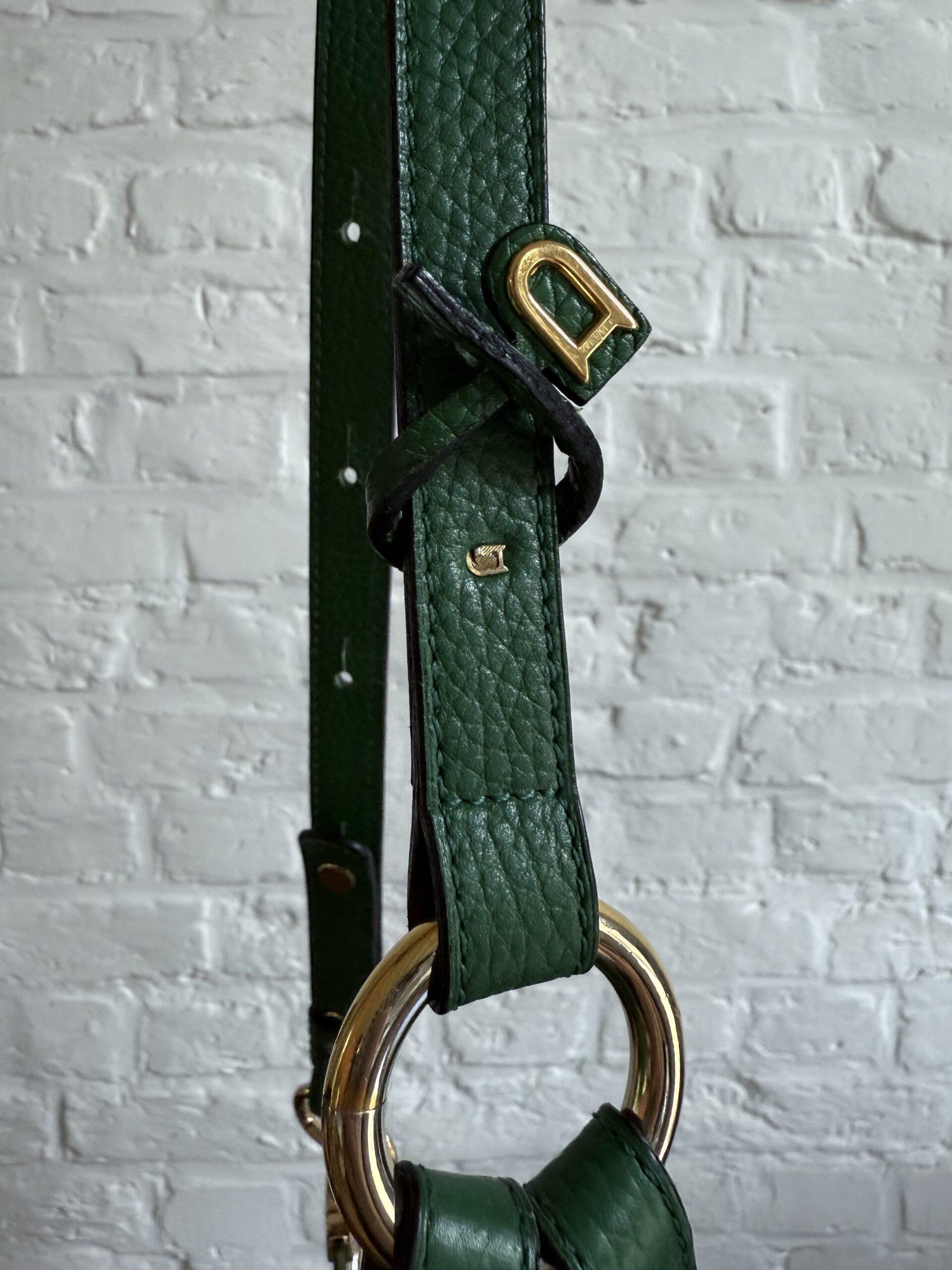 De strap – schouderband- is aanpasbaar en kan je naar keuze vooraan aan de gleuf of onderaan in het oogje bevestigen.