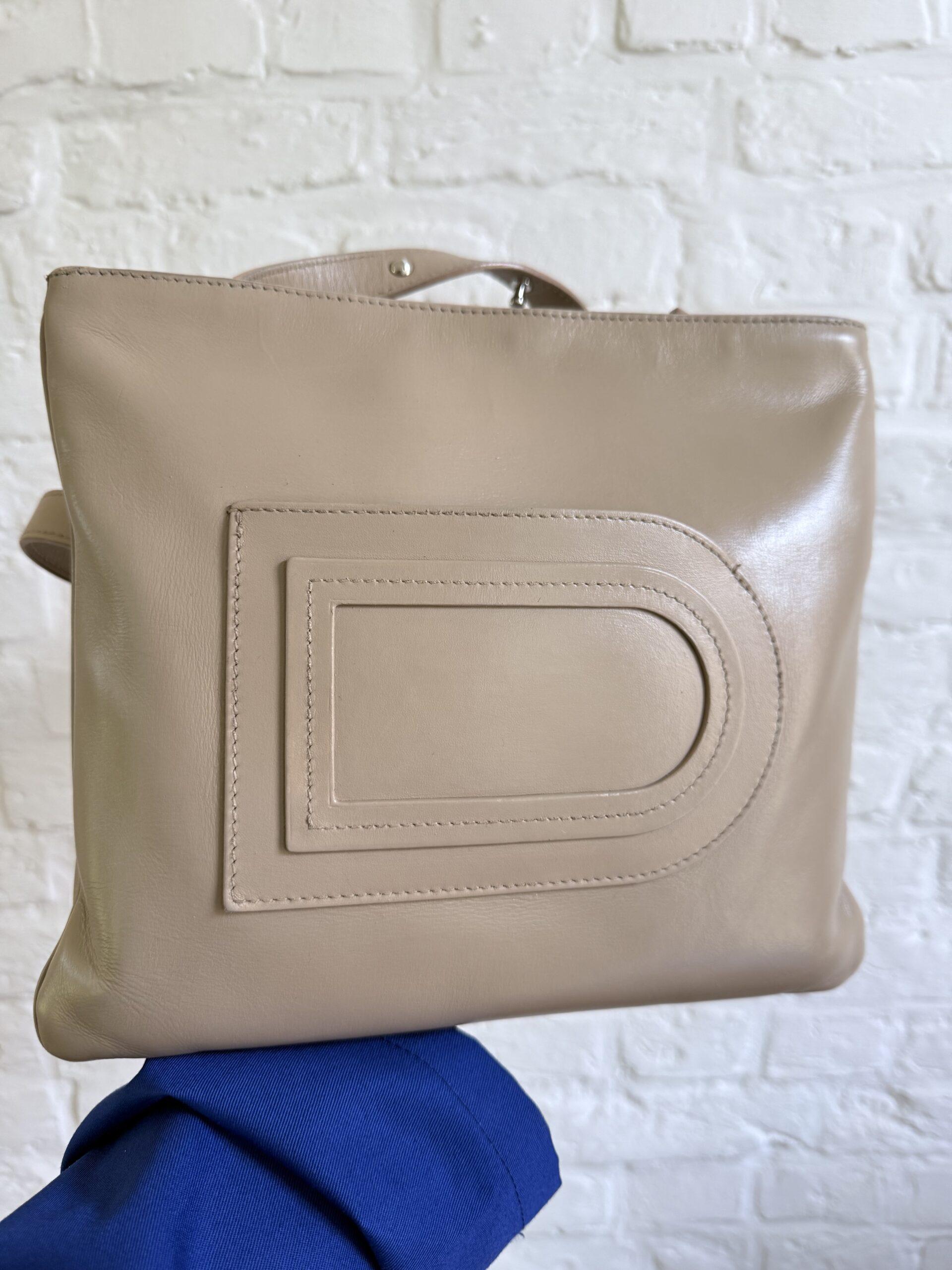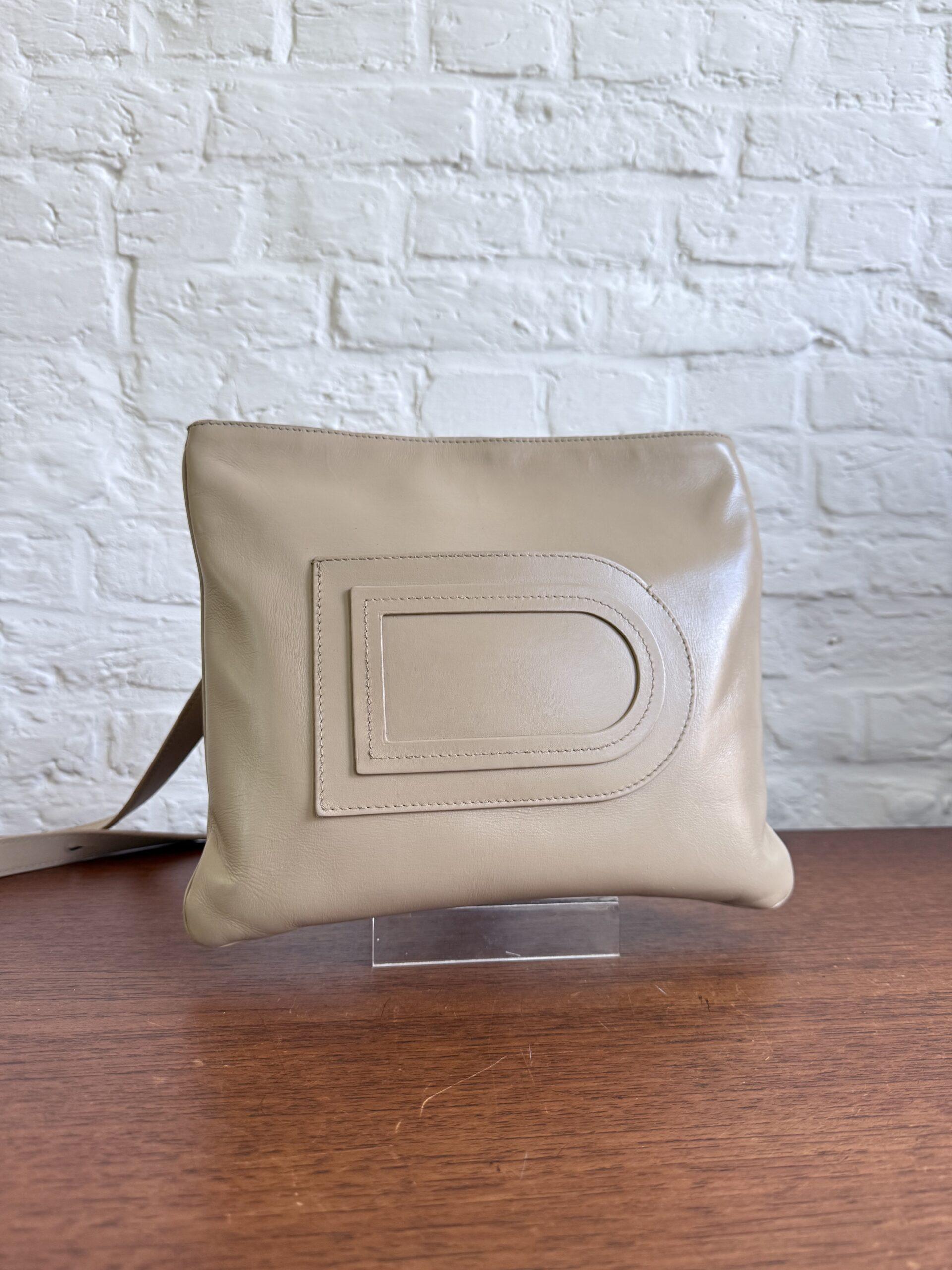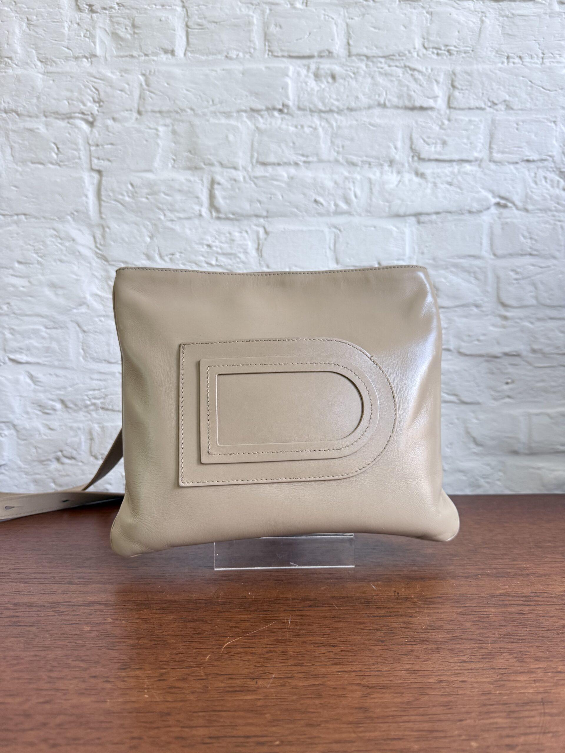 Het model is ultra draagbaar: vederlicht (je voelt hem helemaal niet rond je schouder zitten) en met een verstelbare riem. De iconische D vooraan dient ook als steekzakje. Een fijn detail.