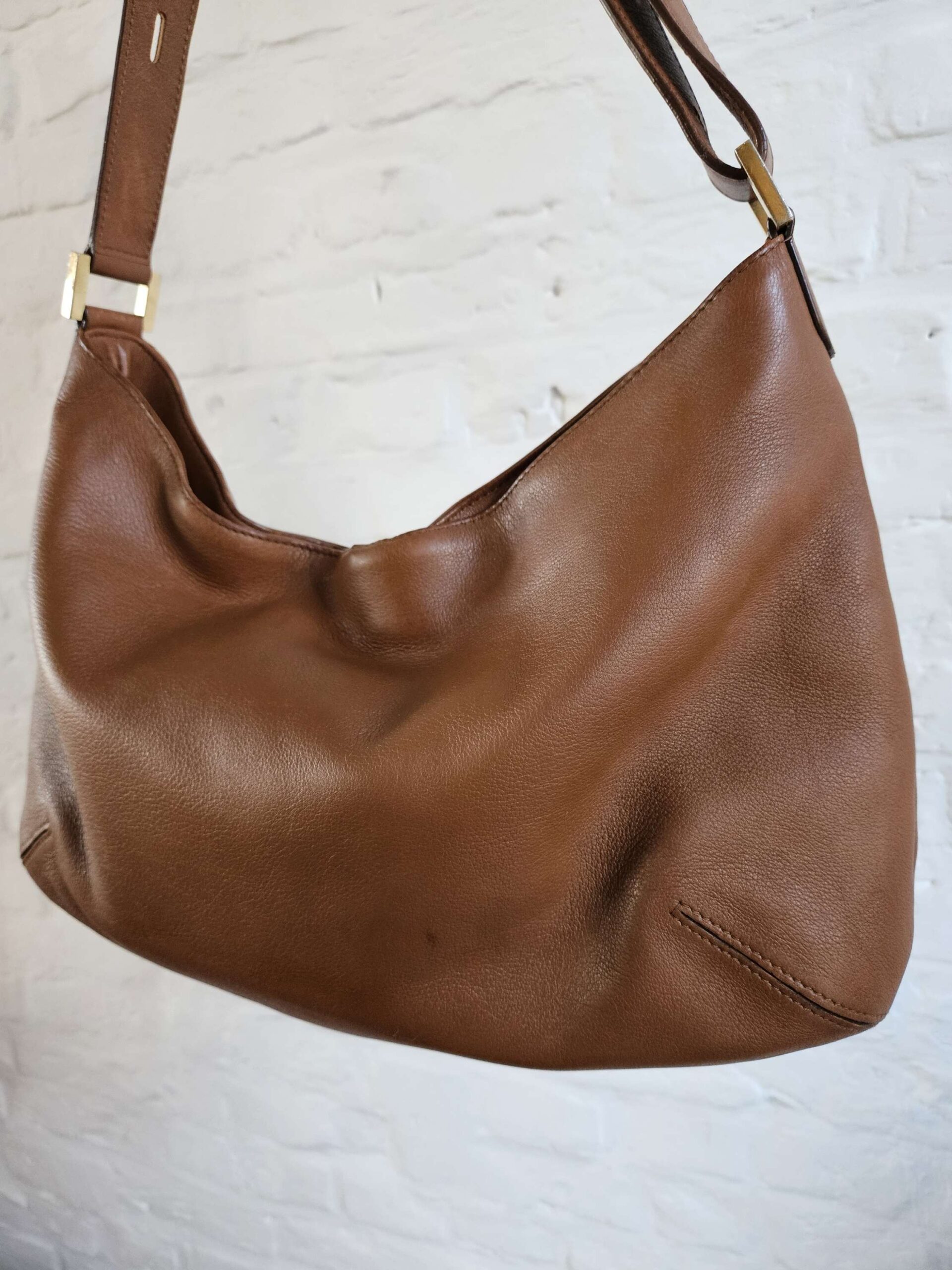 Louise Crossbody in camel met gouden hardware.