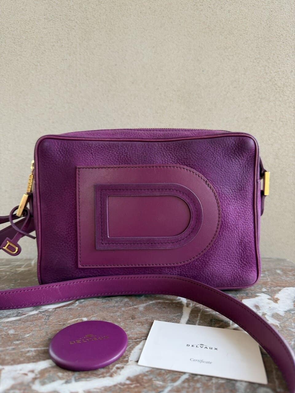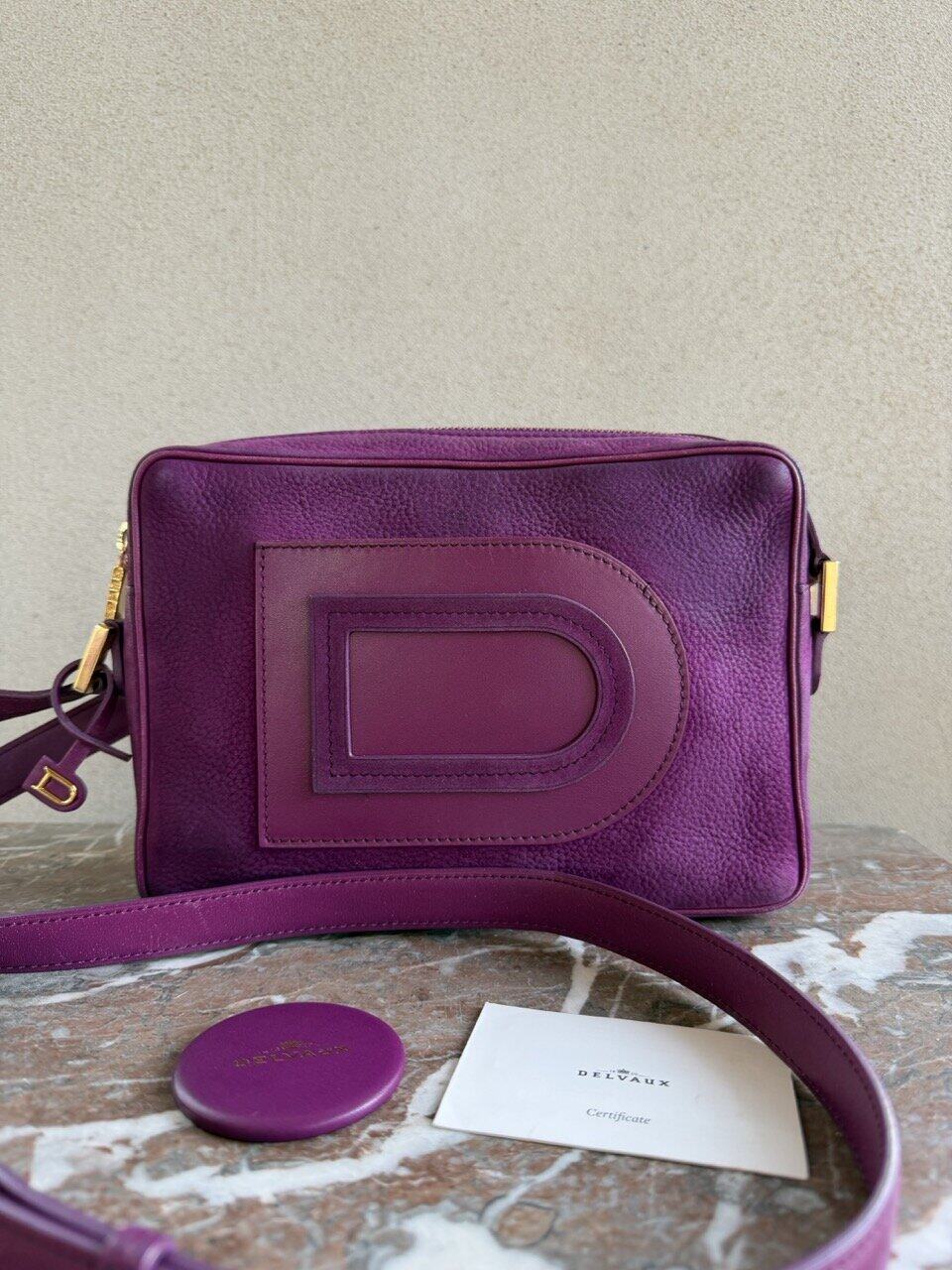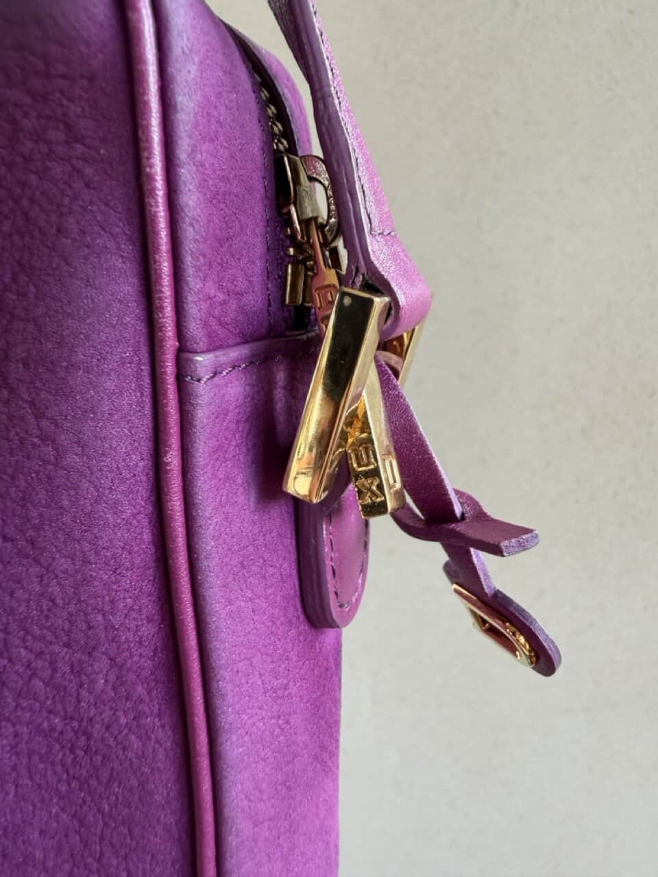 Ze komt in een zachte paarse kleur en gouden hardware, verkeert in mooie vintage staat en komt met certificaat en spiegeltje.