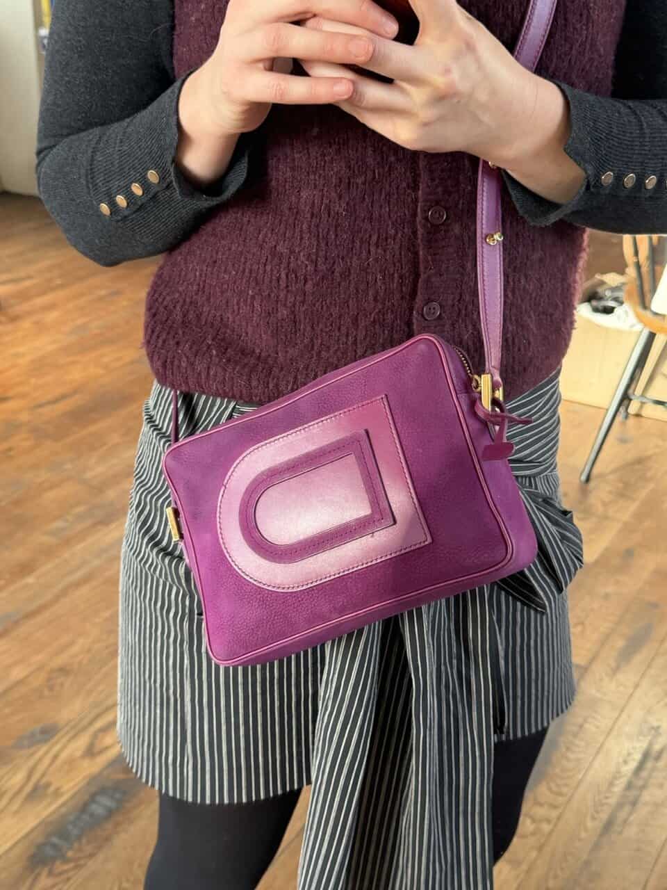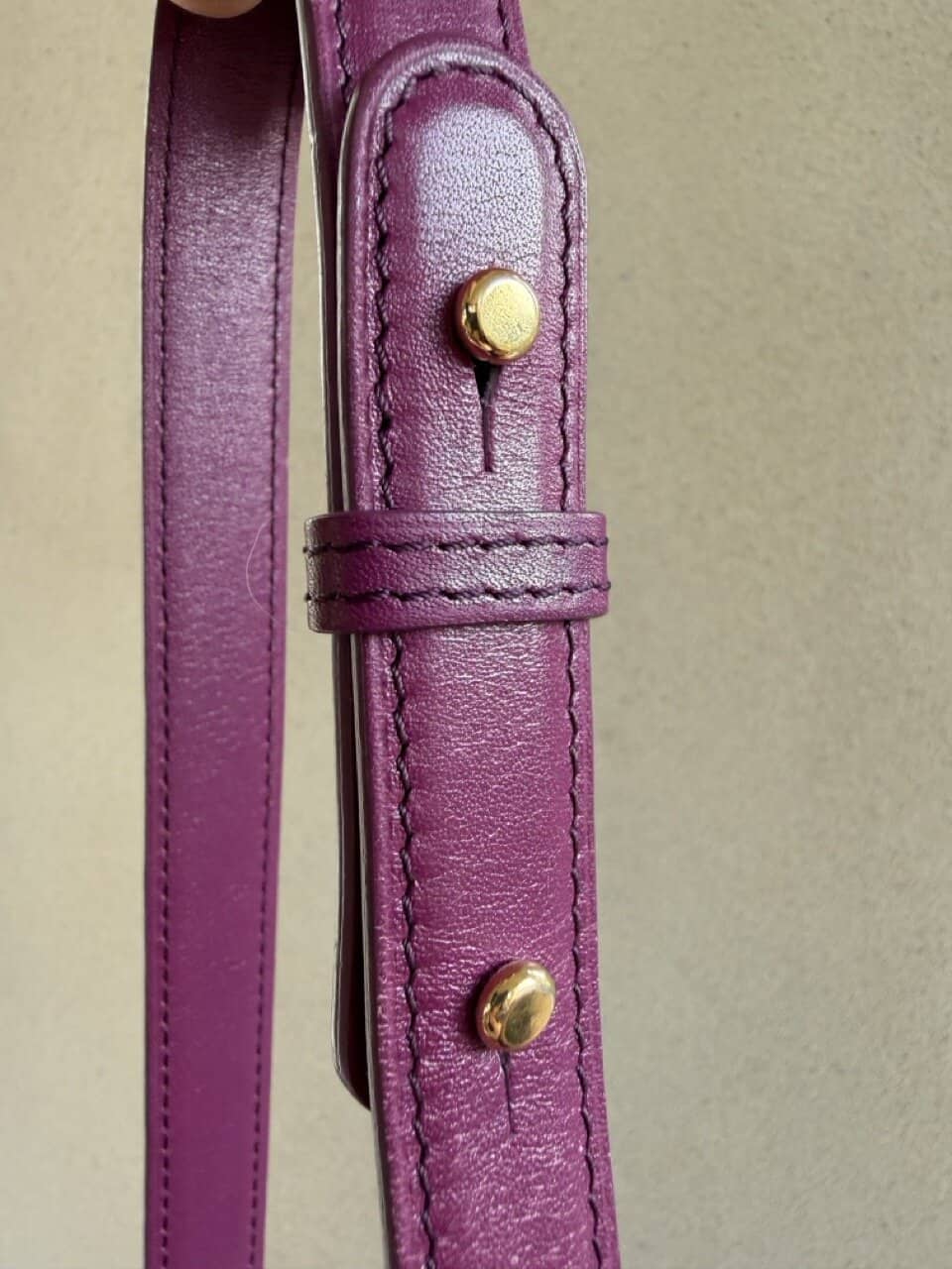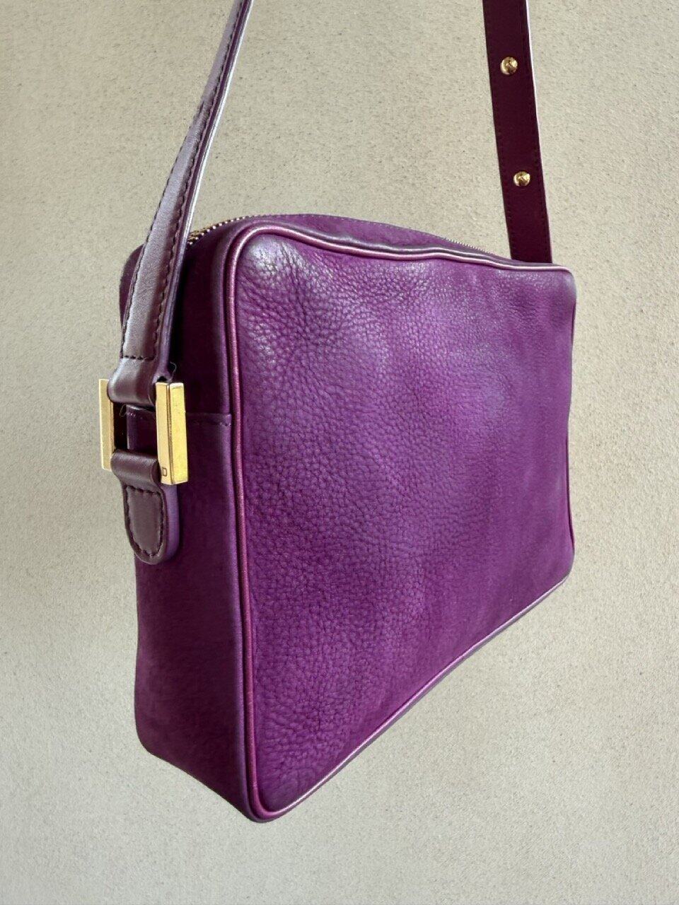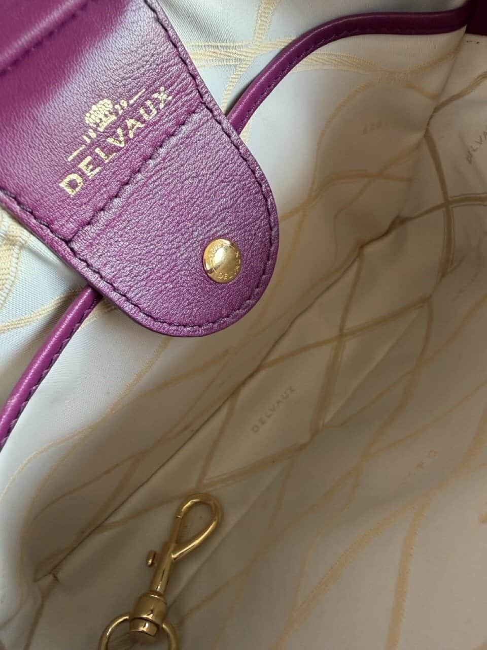 Ze komt in een zachte paarse kleur en gouden hardware, verkeert in mooie vintage staat en komt met certificaat en spiegeltje.