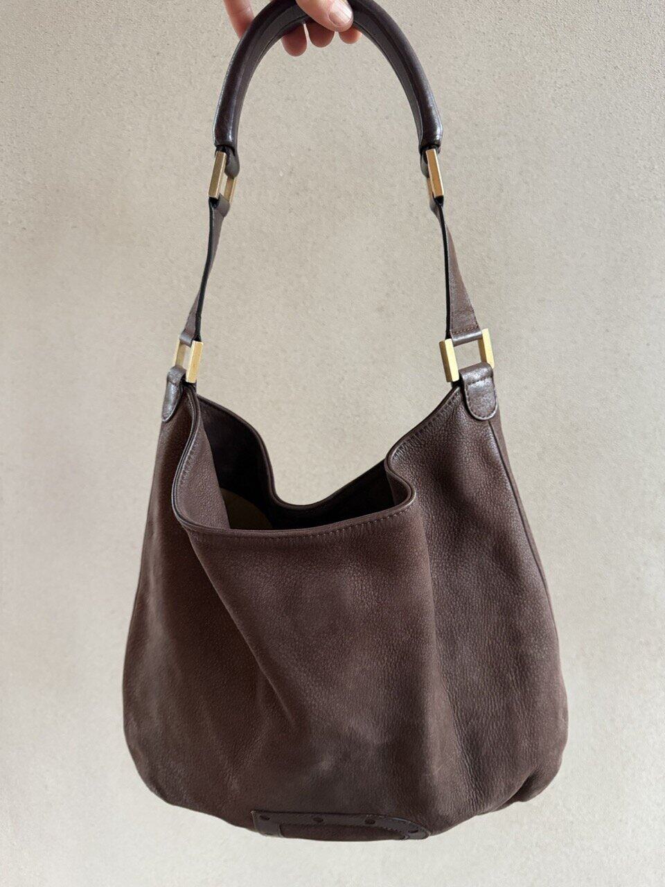 Deze Louise is uitgevoerd in Santiag (daim): dé perfecte Delvaux voor tijdens de wintermaanden. Licht, handig en heel knuffelbaar. De tas is gevoerd in een toile de lin en heeft verschillende binnenzakjes. De voering is nog een erfenis van de beginjaren van Delvaux, toen de valiezen en reistassen nog hun corebusiness waren.