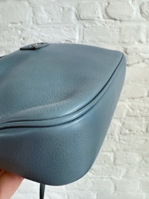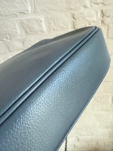 Een prachtig Macao in jeansblauwe jumping calf en zilveren hardware.