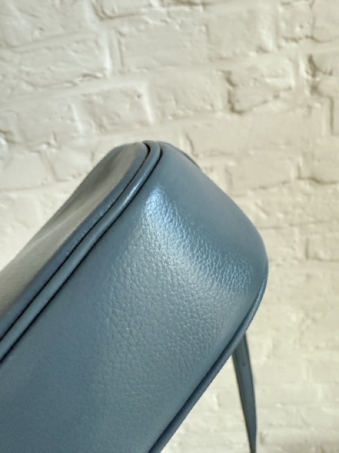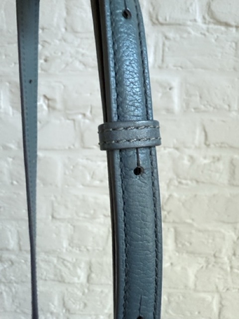 Dit is een crossbody met dunne lange riem, te verstellen met studs op 2 standen. De tas zelf is compact, maar groot genoeg voor een grote portefeuille, je gsm en zonnebril.