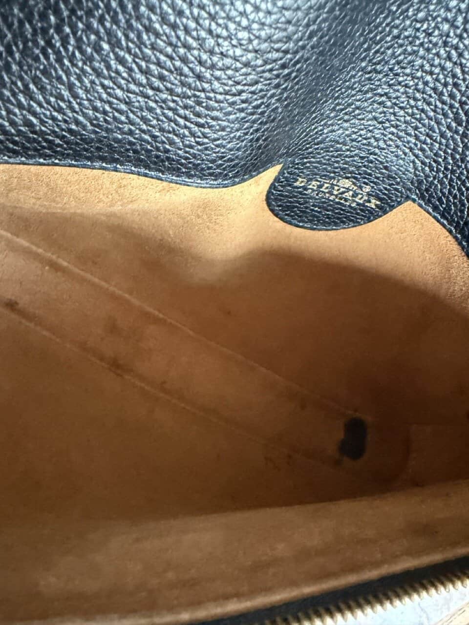 Atelier Mémé besteedt veel tijd en aandacht aan het zorgvuldig selecteren en, indien nodig, retoucheren van originele Delvaux handtassen. De tas is zo correct mogelijk in beeld gebracht met imperfecties die horen bij de vintage staat en manuele ambacht van zowel de Delvauxtas als de ambacht van het restaureren.