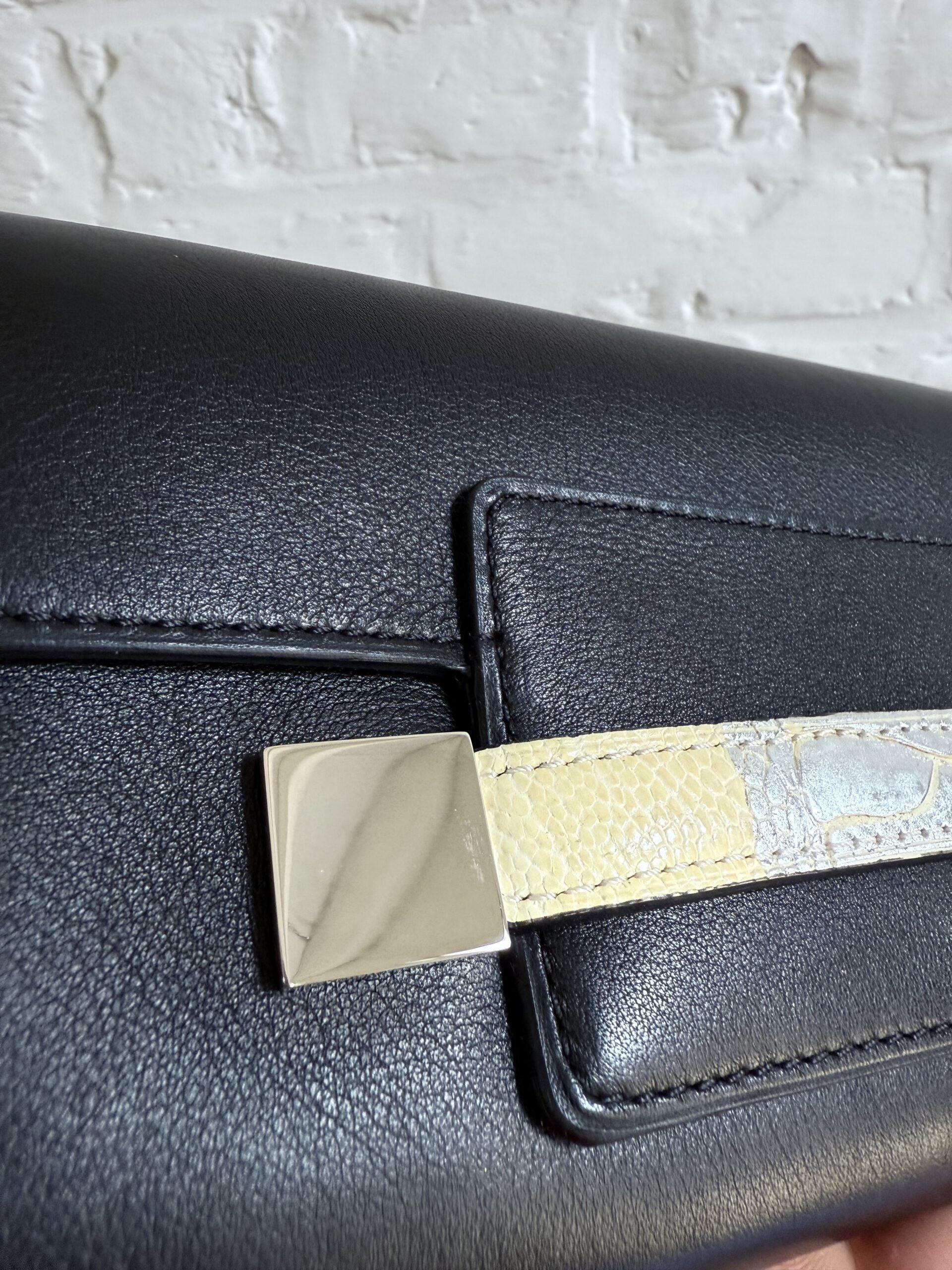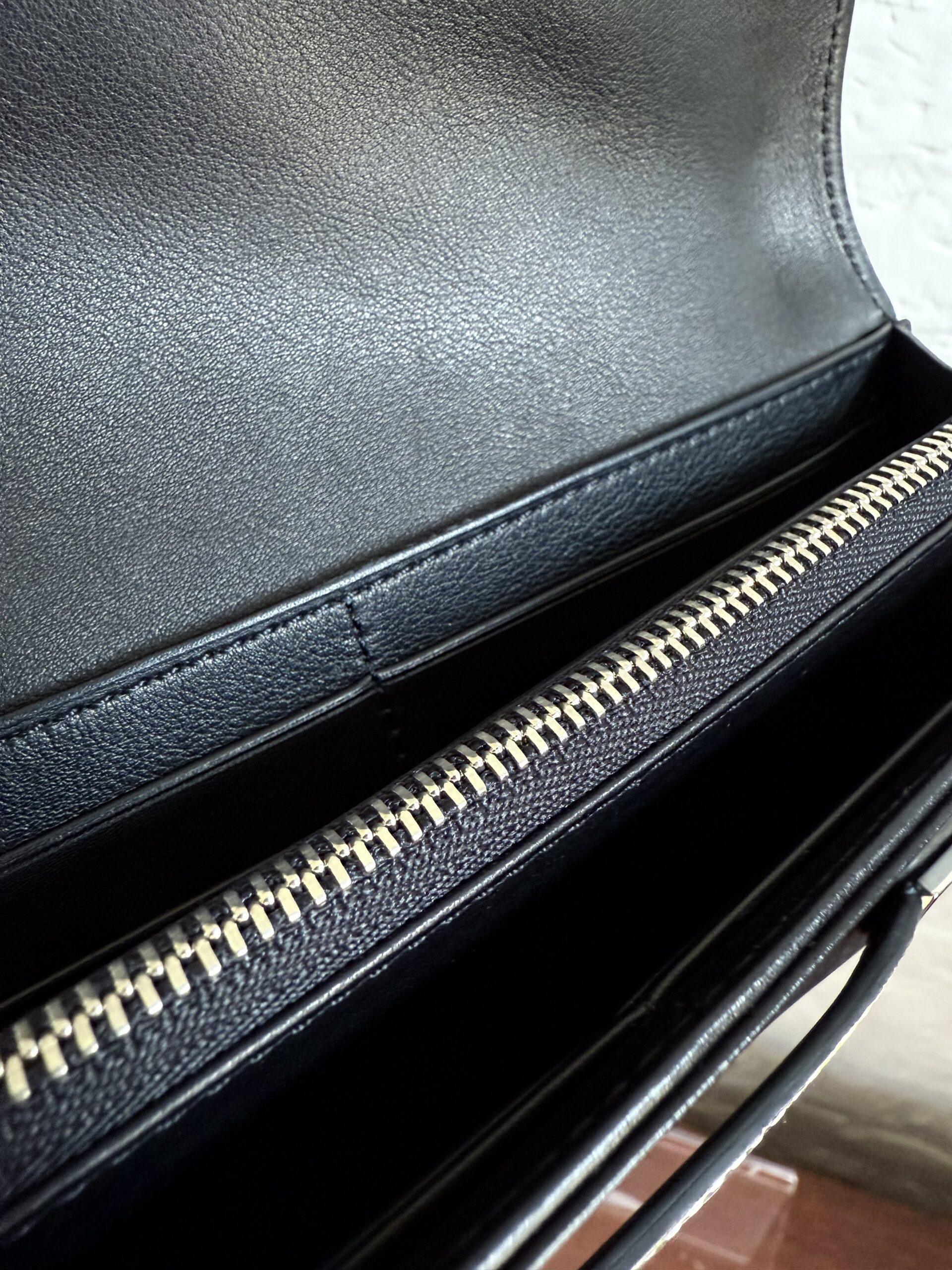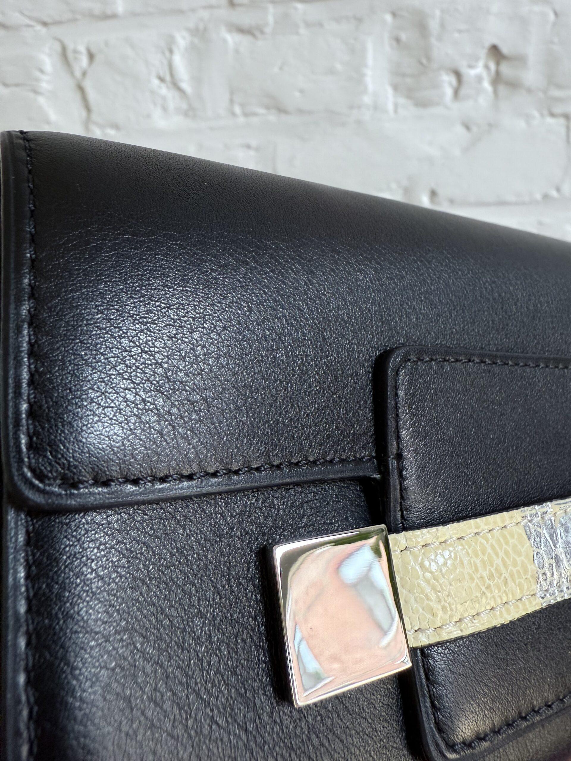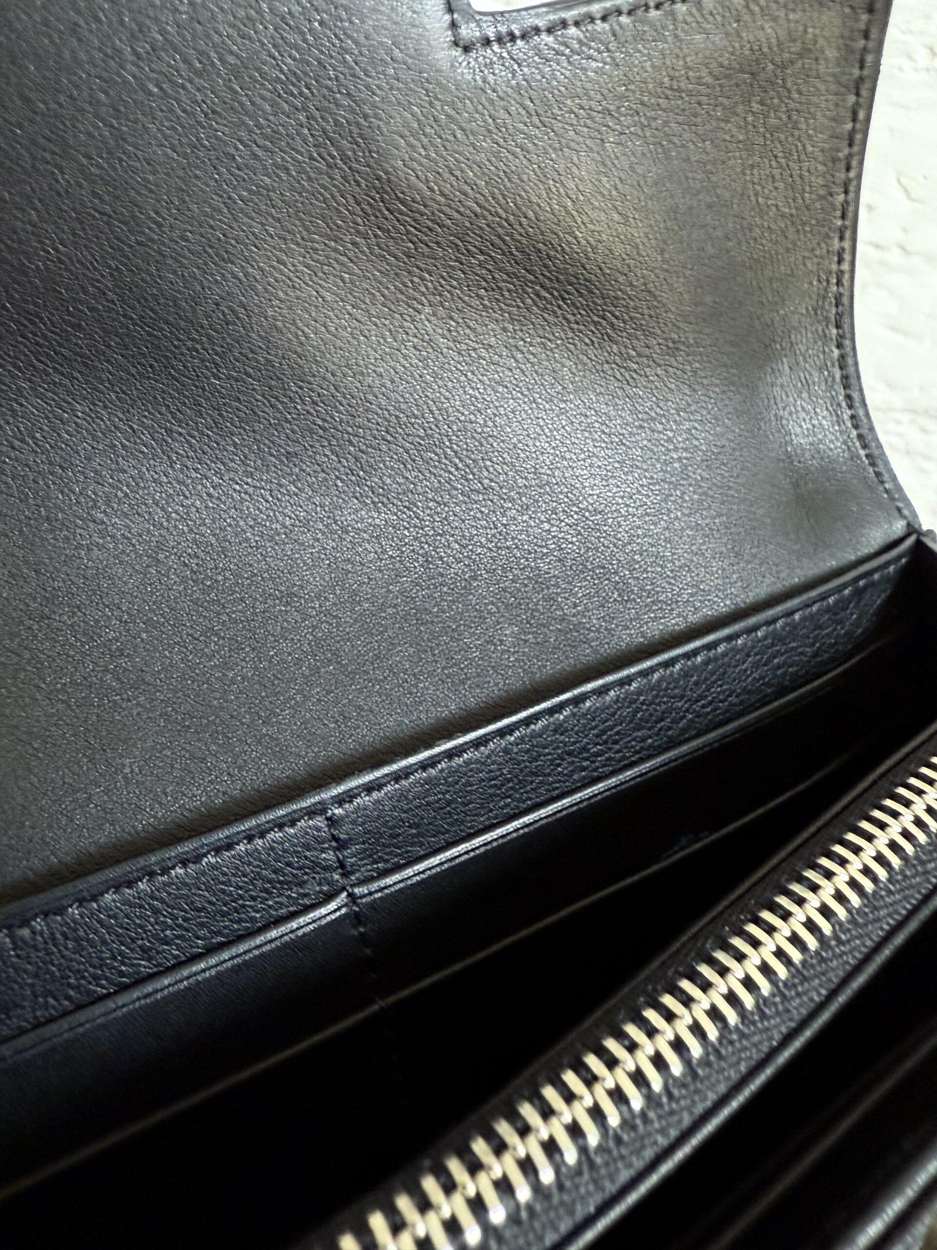 Een Madame portefeuille in zwarte calf souple met een sluiting in alligator!