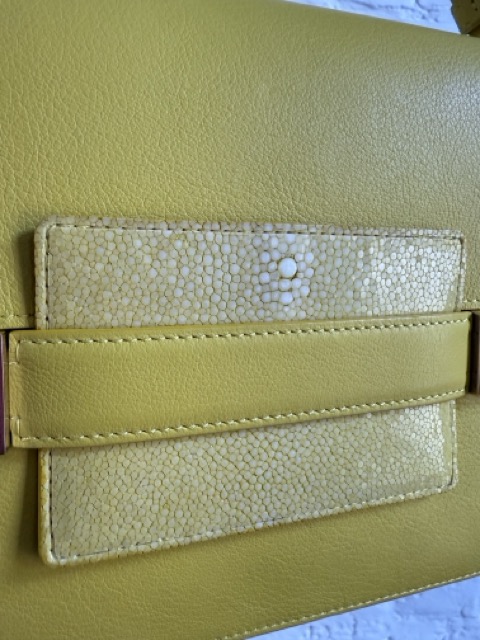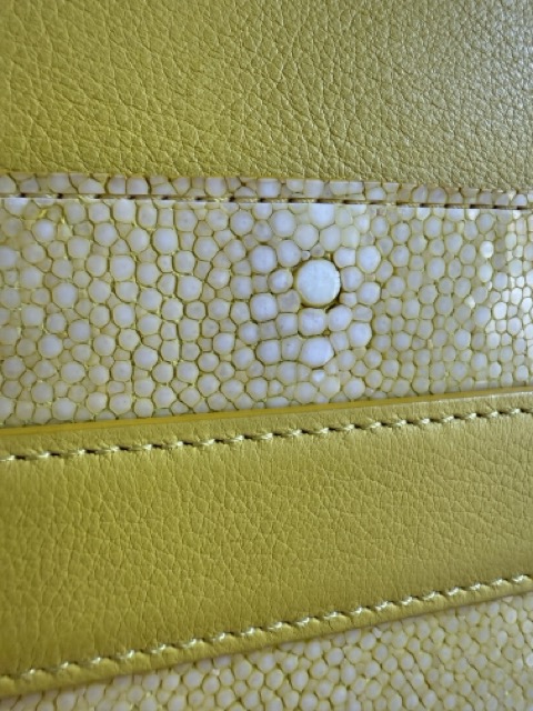 De flap is afgewerkt met galuchat ofwel pijlstaartrog. Galuchat is van Thaise bodem en vraagt om een ervaren expertise om te kunnen verwerken. De hardware is goud.