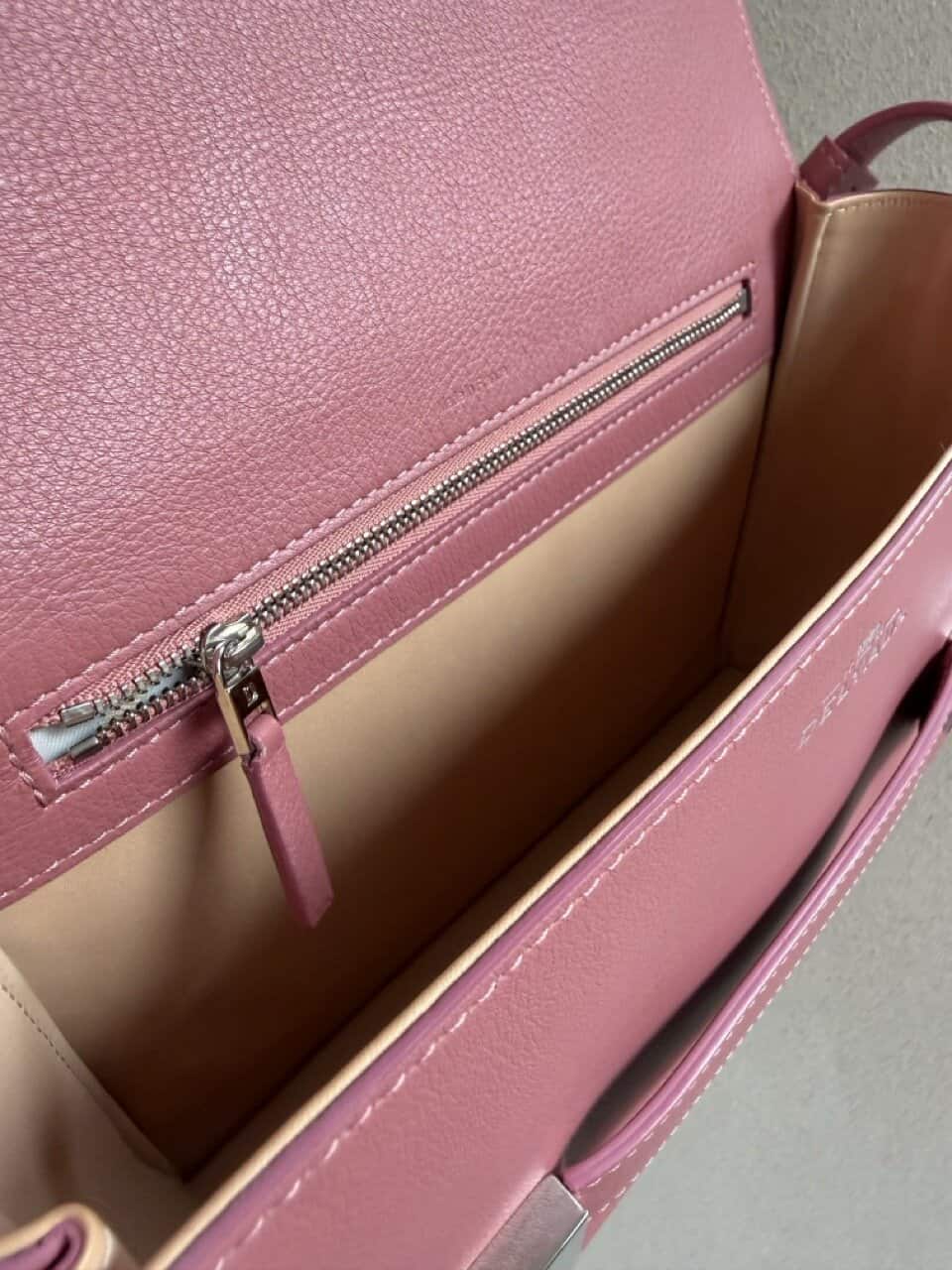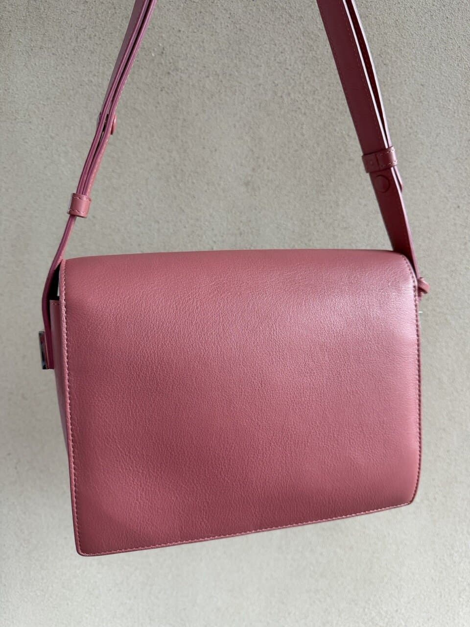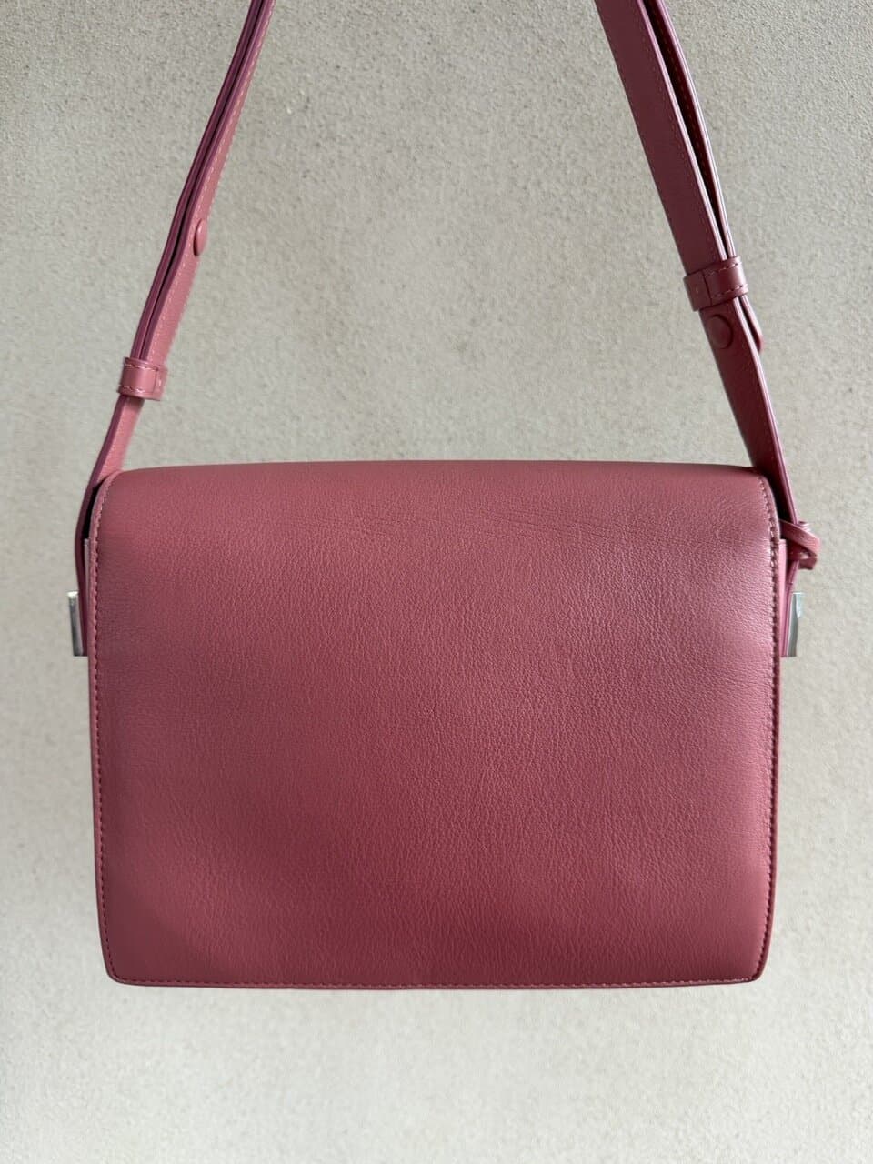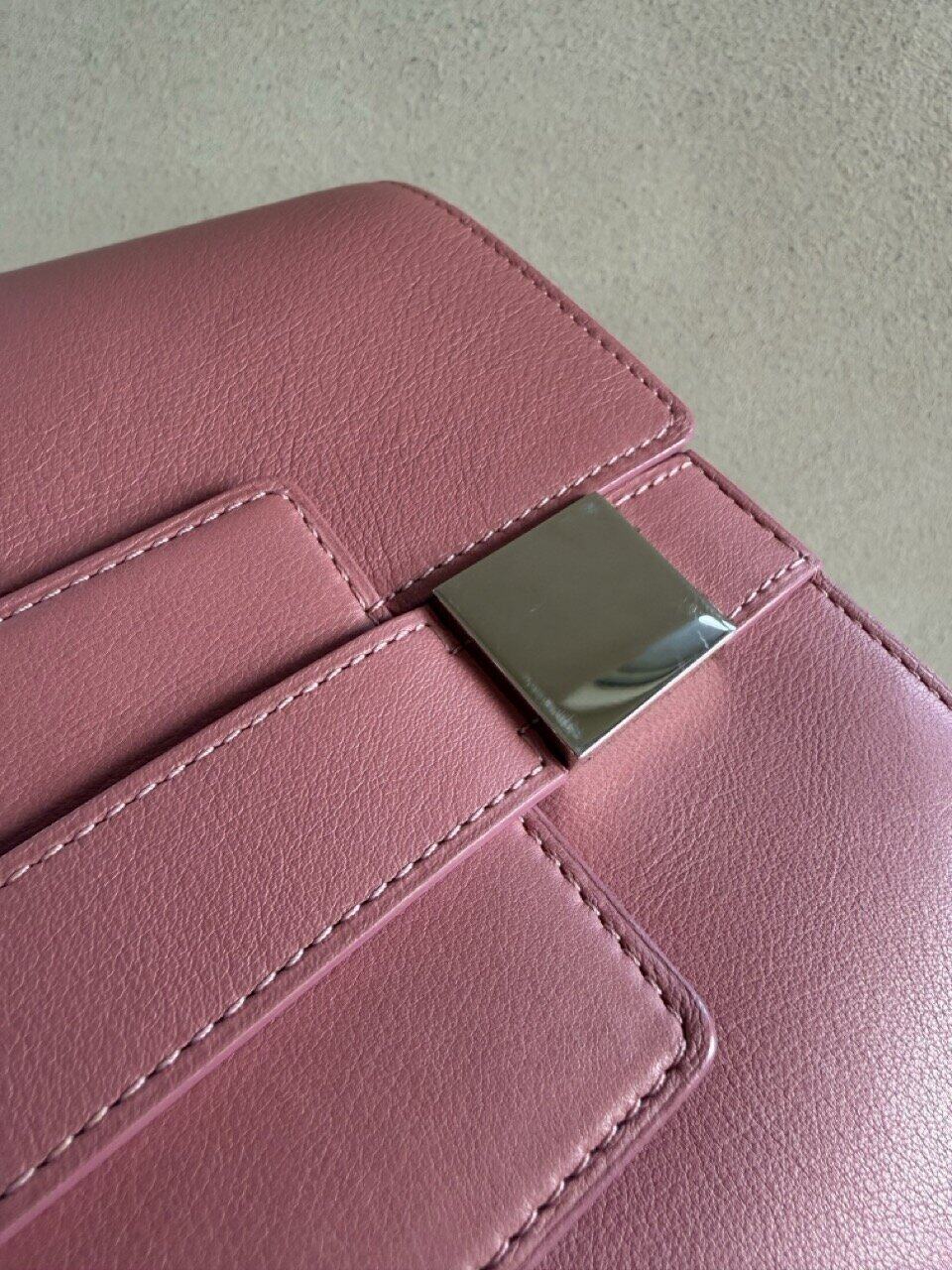 Het is een tijdloze minimalistische handtas, die gekenmerkt wordt door een strakke vormgeving en grafische details (zoals de sluiting). De sluiting is trouwens fantastisch handig. Geen gedoe met drukknopjes en magneten. Gewoon het flapje onderin schuiven en je bent good to go.