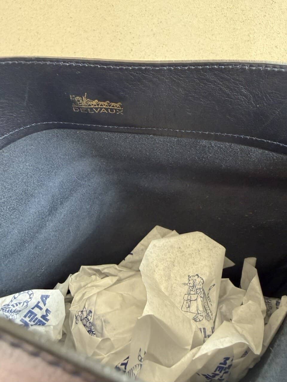 Atelier Mémé besteedt veel tijd en aandacht aan het zorgvuldig selecteren en, indien nodig, retoucheren van originele Delvaux handtassen. De tas is zo correct mogelijk in beeld gebracht met imperfecties die horen bij de vintage staat en manuele ambacht van zowel de Delvauxtas als de ambacht van het restaureren.