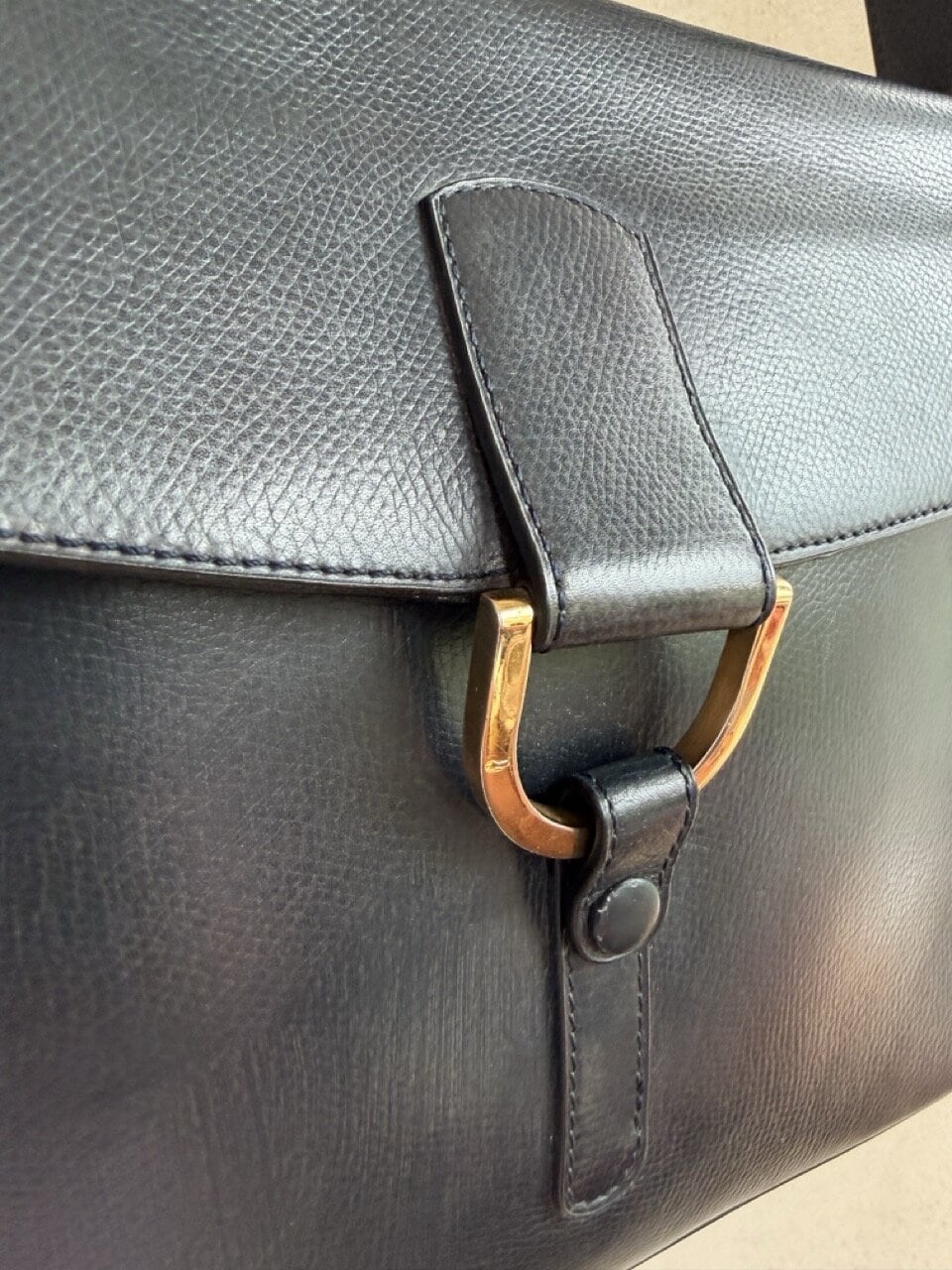Een crossbody in een adembenemend mooie Marine jumping calf met gouden hardware. Het leder is ongelofelijk zacht en de tas zo licht als een veertje.