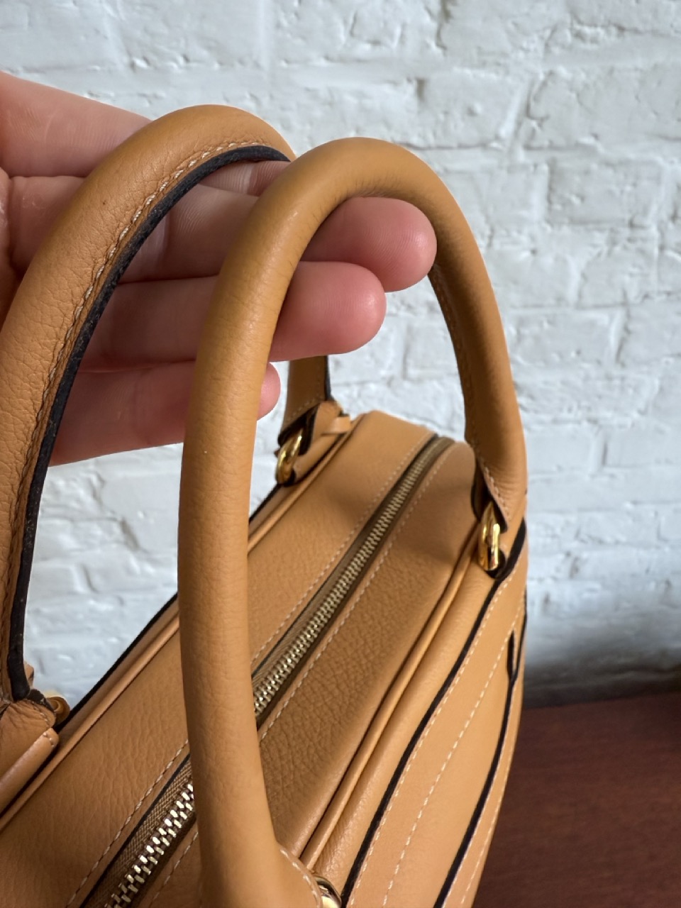 Deze prachtige Delvaux Parole in Houblon is een Tophandle die ook crossbody kan, een echte vangst in uitmuntende staat!