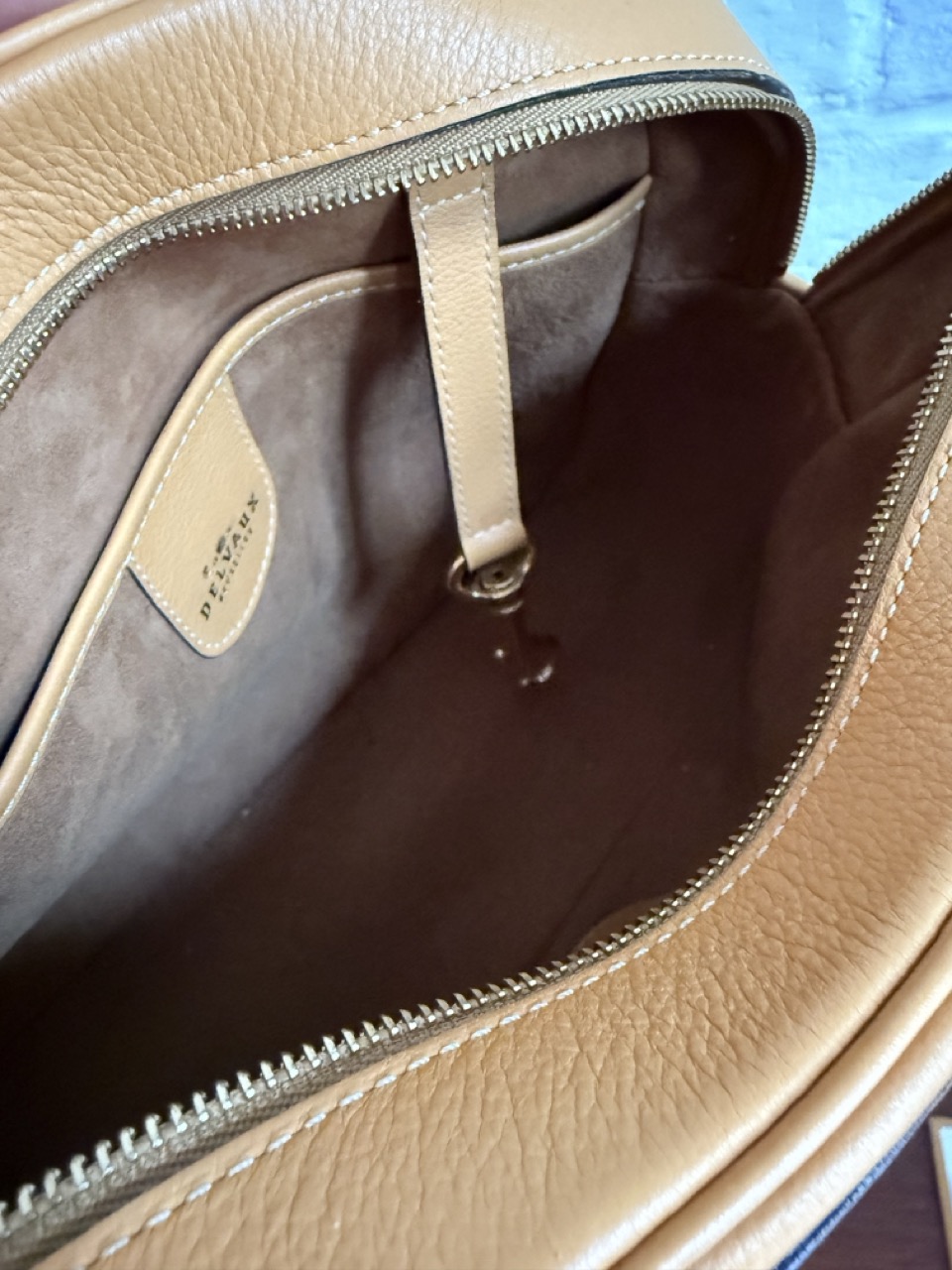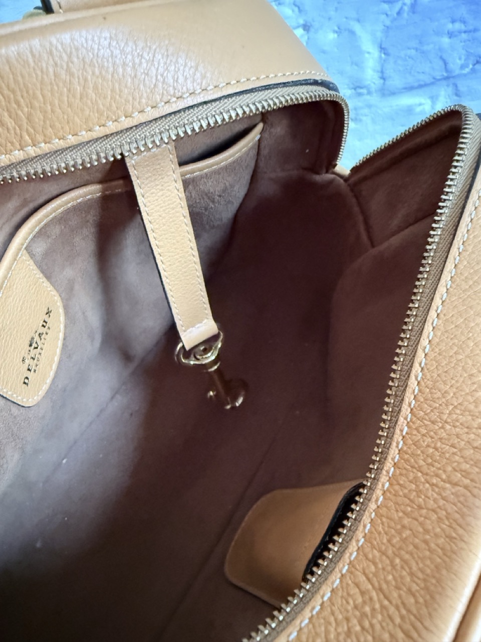 Atelier Mémé besteedt veel tijd en aandacht aan het zorgvuldig selecteren en, indien nodig, retoucheren van originele Delvaux handtassen. De tas is zo correct mogelijk in beeld gebracht met imperfecties die horen bij de vintage staat en manuele ambacht van zowel de Delvauxtas als de ambacht van het restaureren.