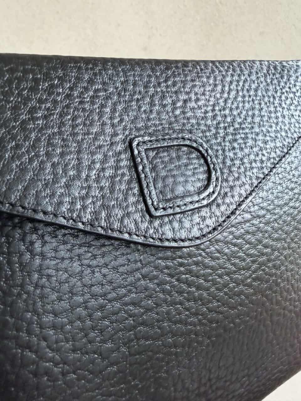 De tas is gemaakt in een prachtig zwart jumping kalfsleder en afgewerkt met het Delvaux logo.