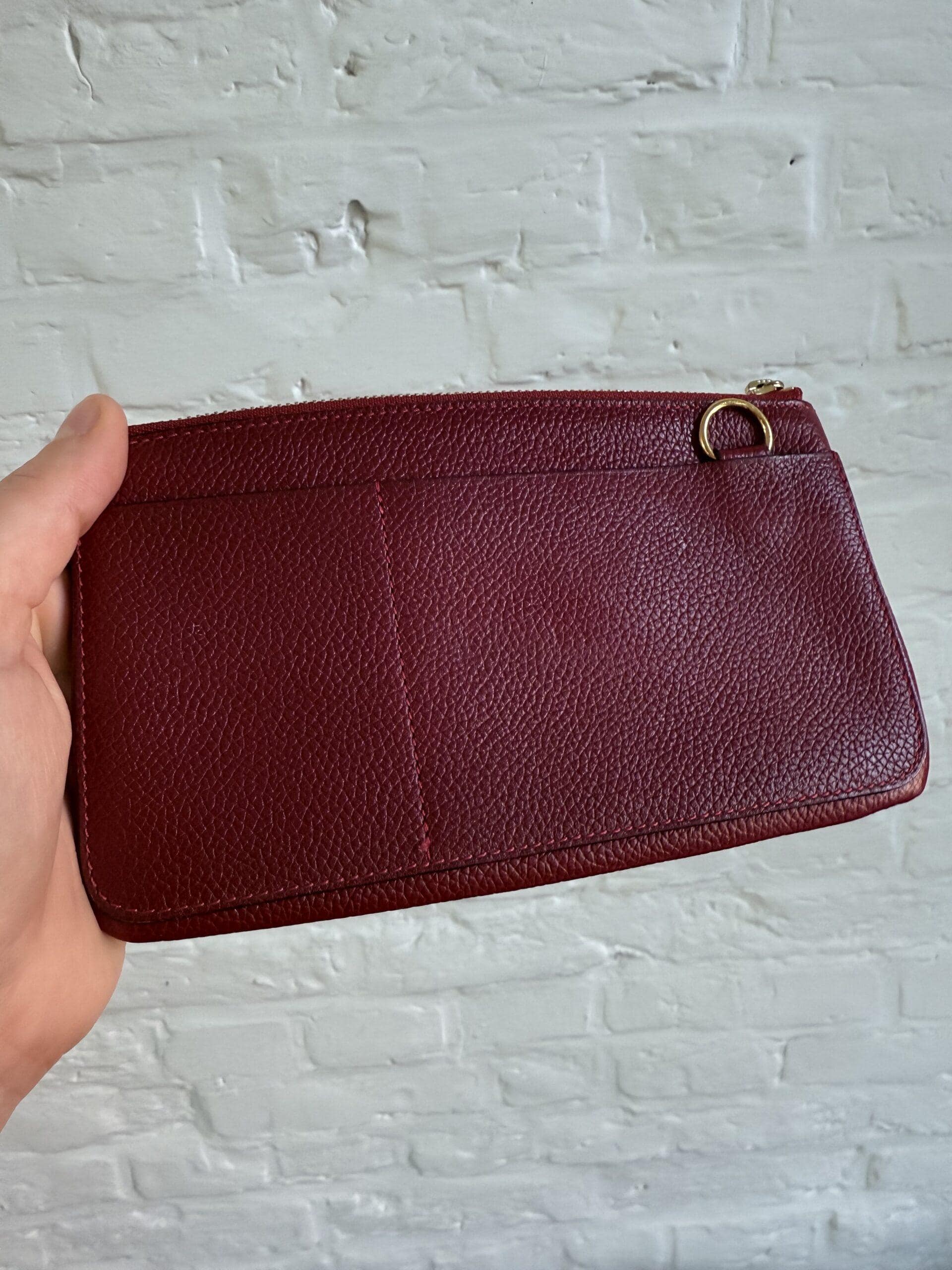 Een multiinzetbaar pochetteje in Rosso Jumping calf.