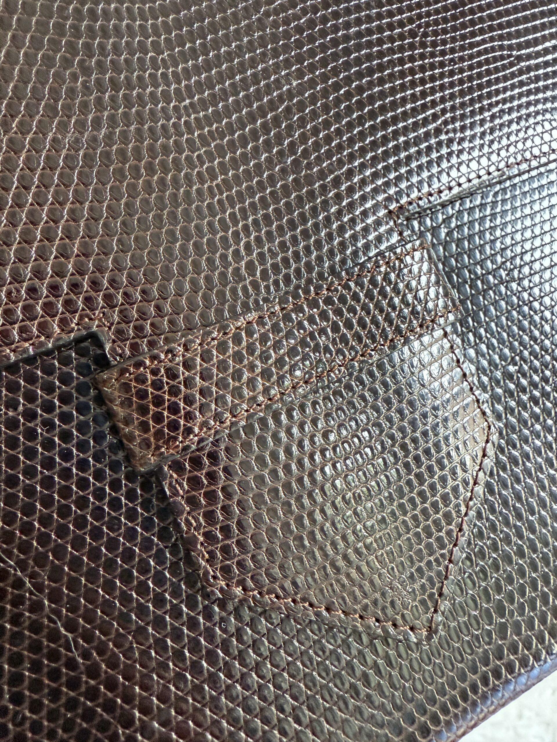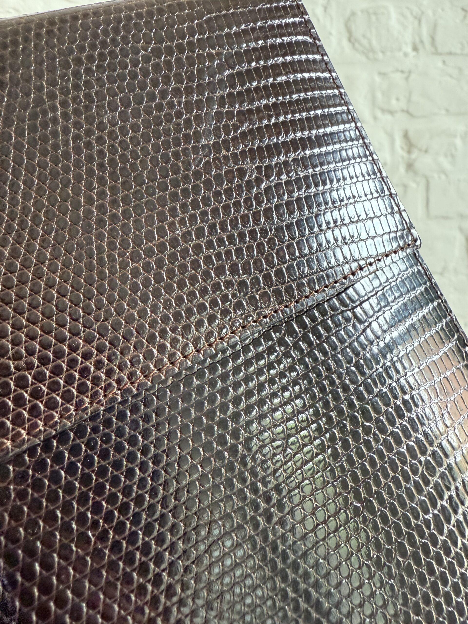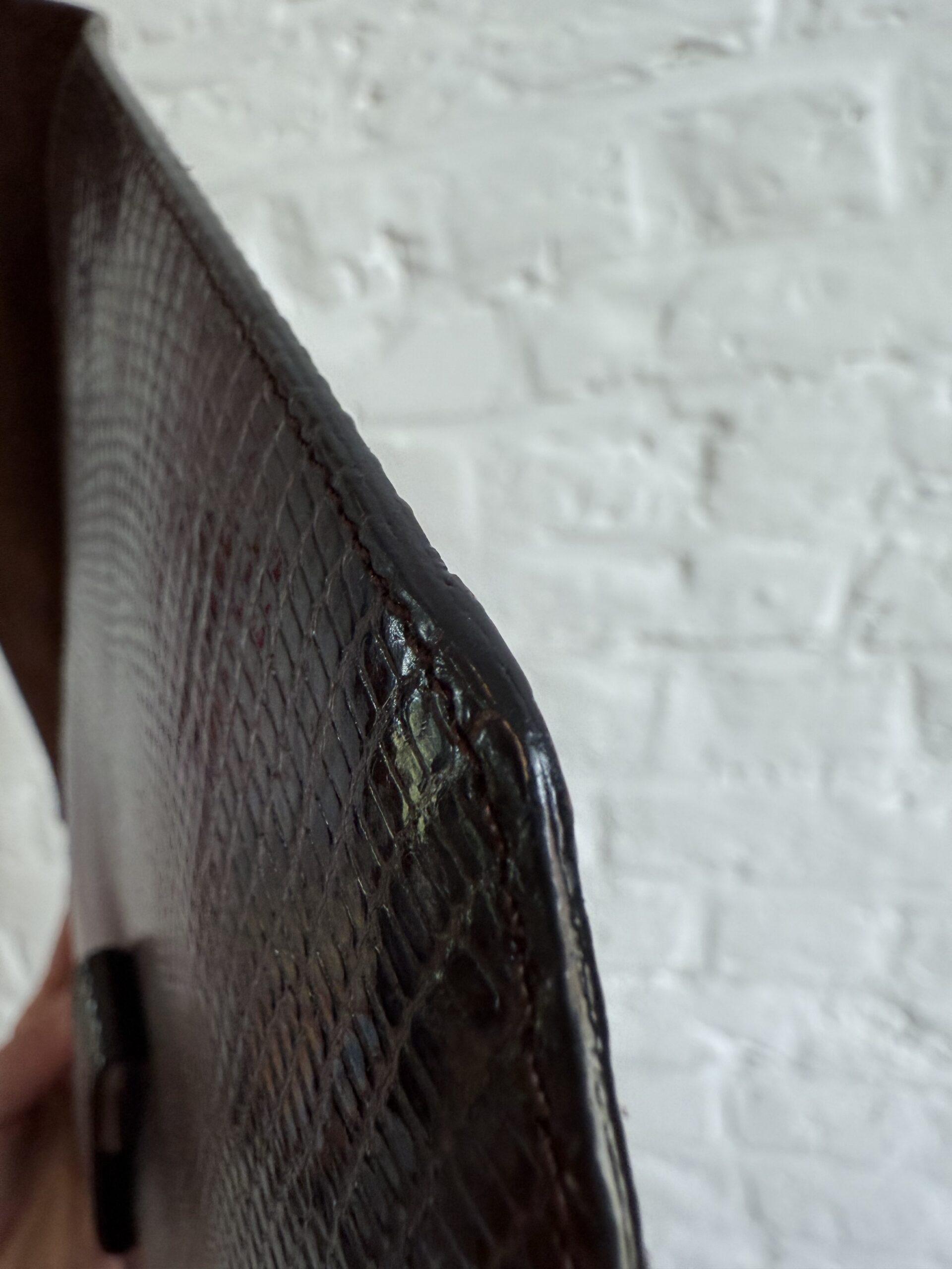 Deze Presse pochette is uitgevoerd in hagedissenhuid en helemaal nieuw, ondanks dat ze van ca jaren 50 is.