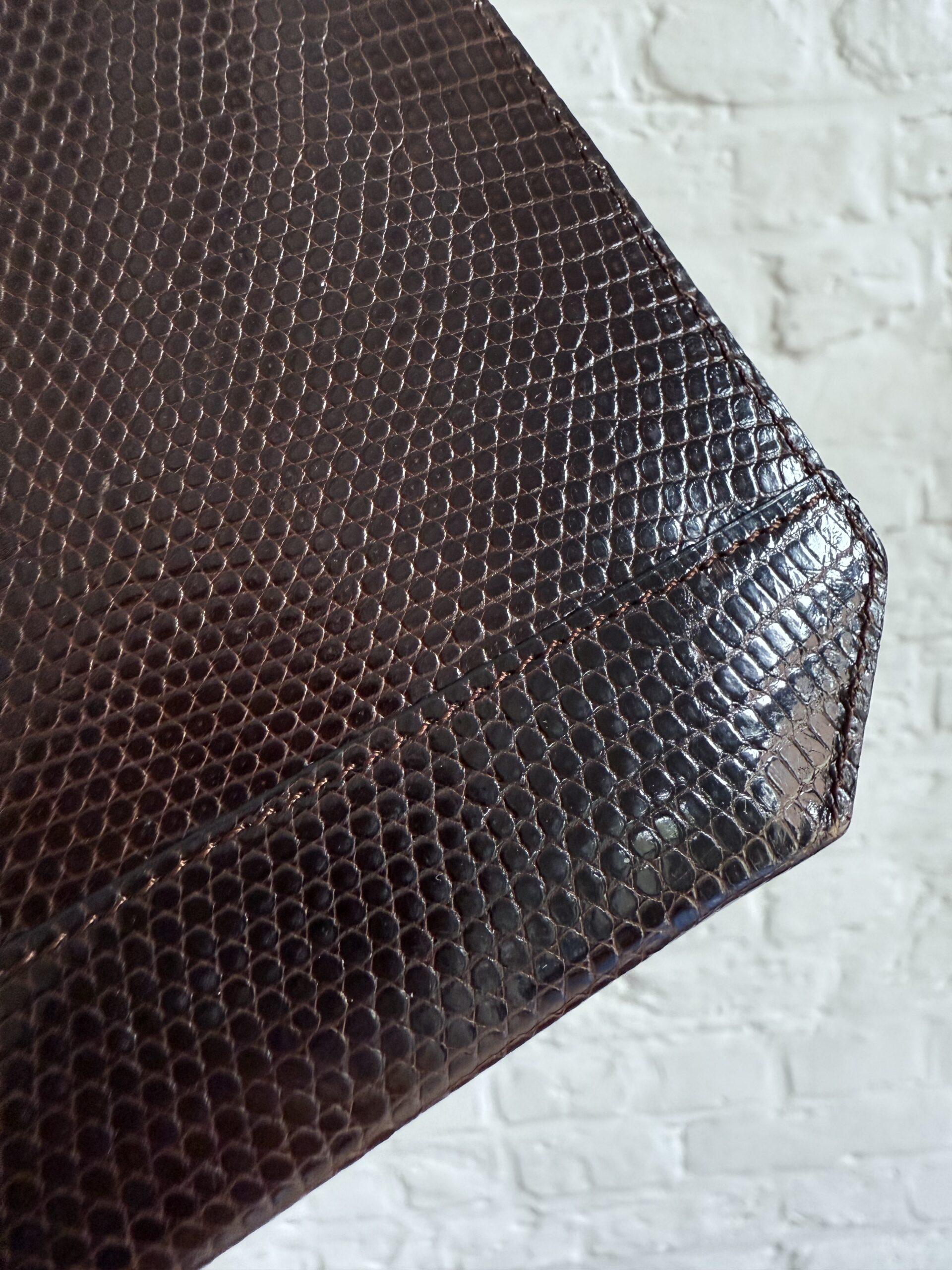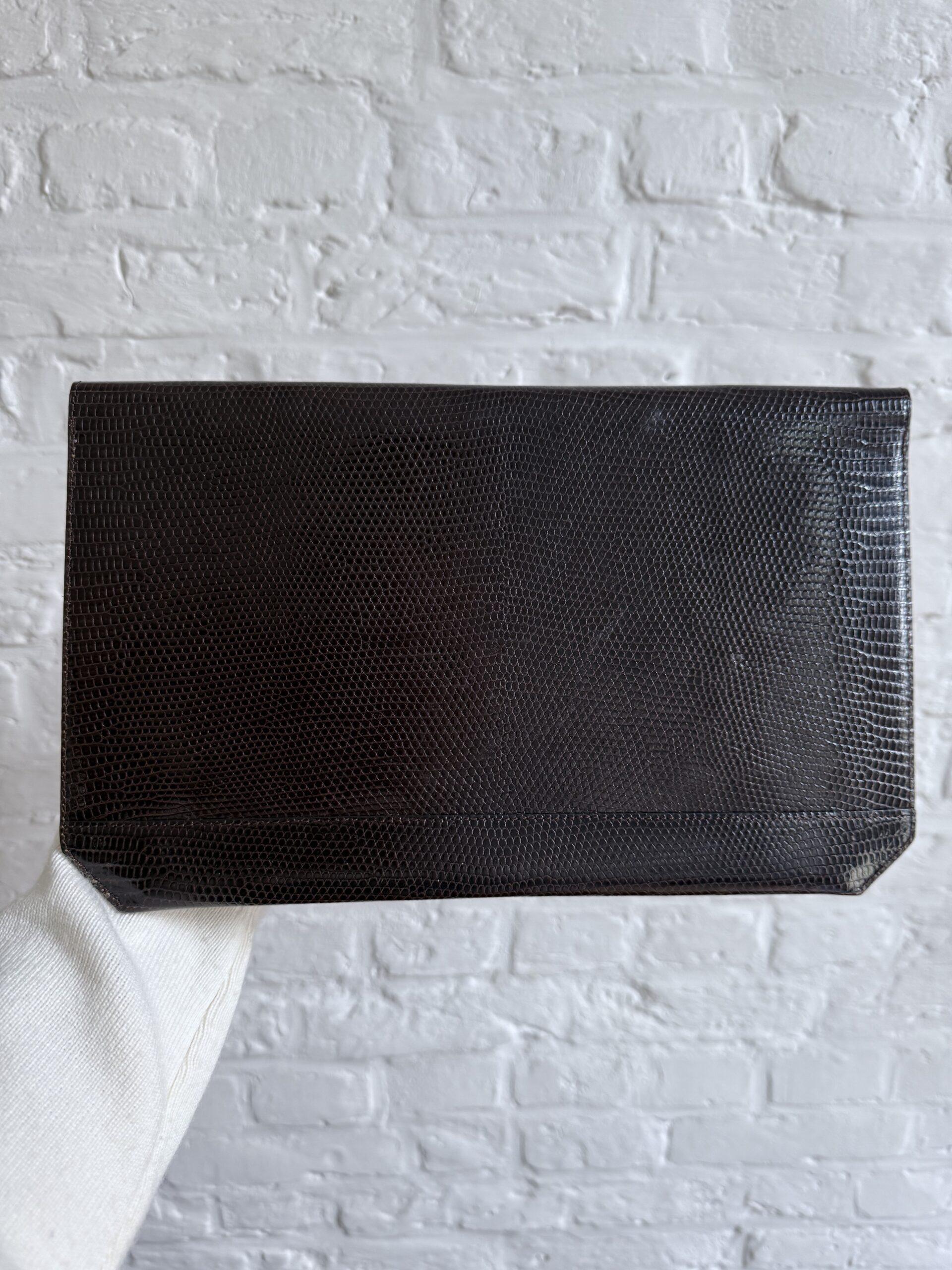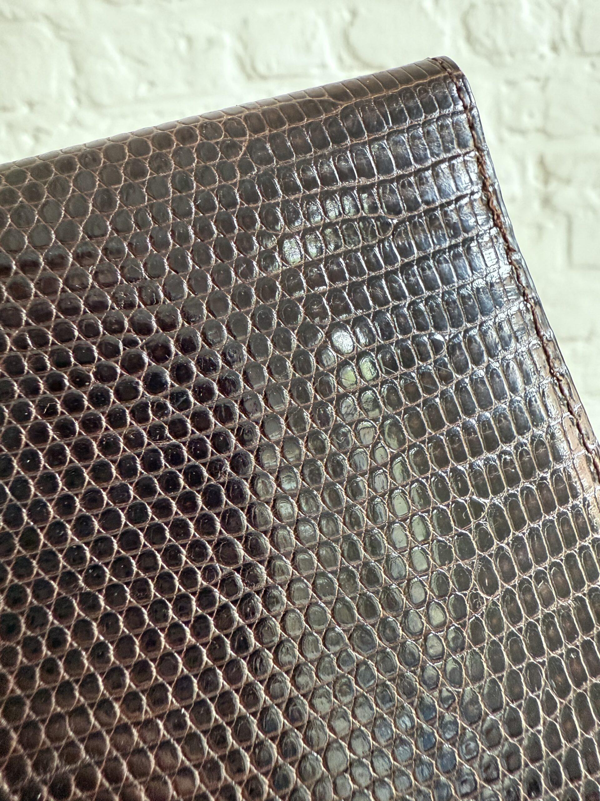 Deze Presse pochette is uitgevoerd in hagedissenhuid en helemaal nieuw, ondanks dat ze van ca jaren 50 is.