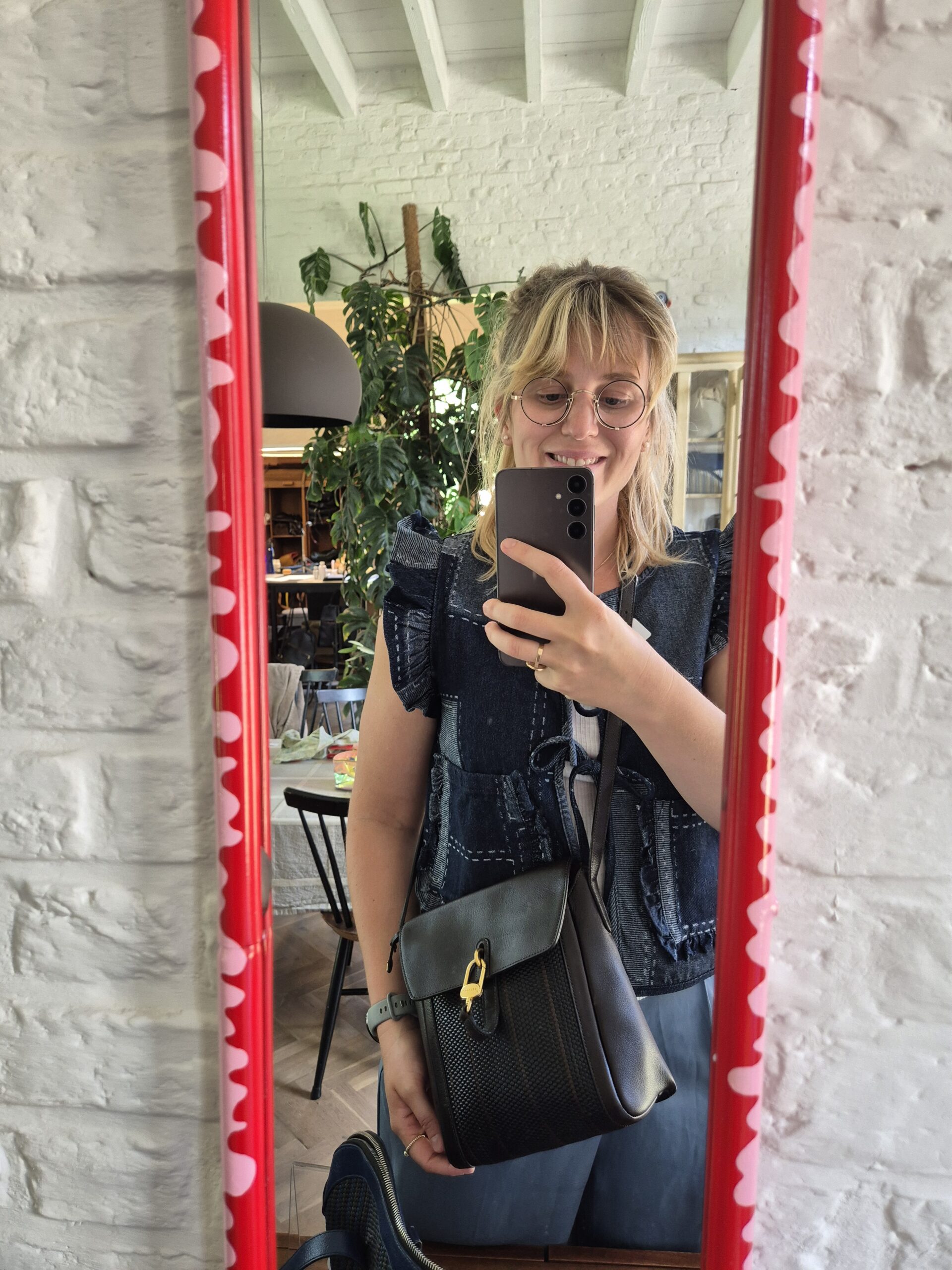 Atelier Mémé besteedt veel tijd en aandacht aan het zorgvuldig selecteren en, indien nodig, retoucheren van originele Delvaux handtassen. De tas is zo correct mogelijk in beeld gebracht met imperfecties die horen bij de vintage staat en manuele ambacht van zowel de Delvauxtas als de ambacht van het restaureren.