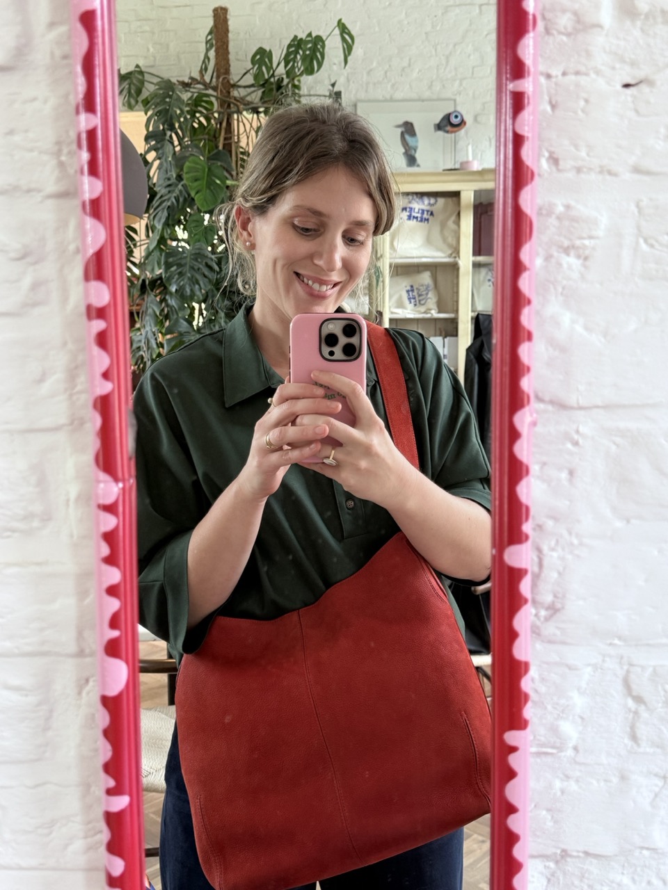 Een Rode Tote in Santiag, ruim, maar hij kan super comfy crossbody!