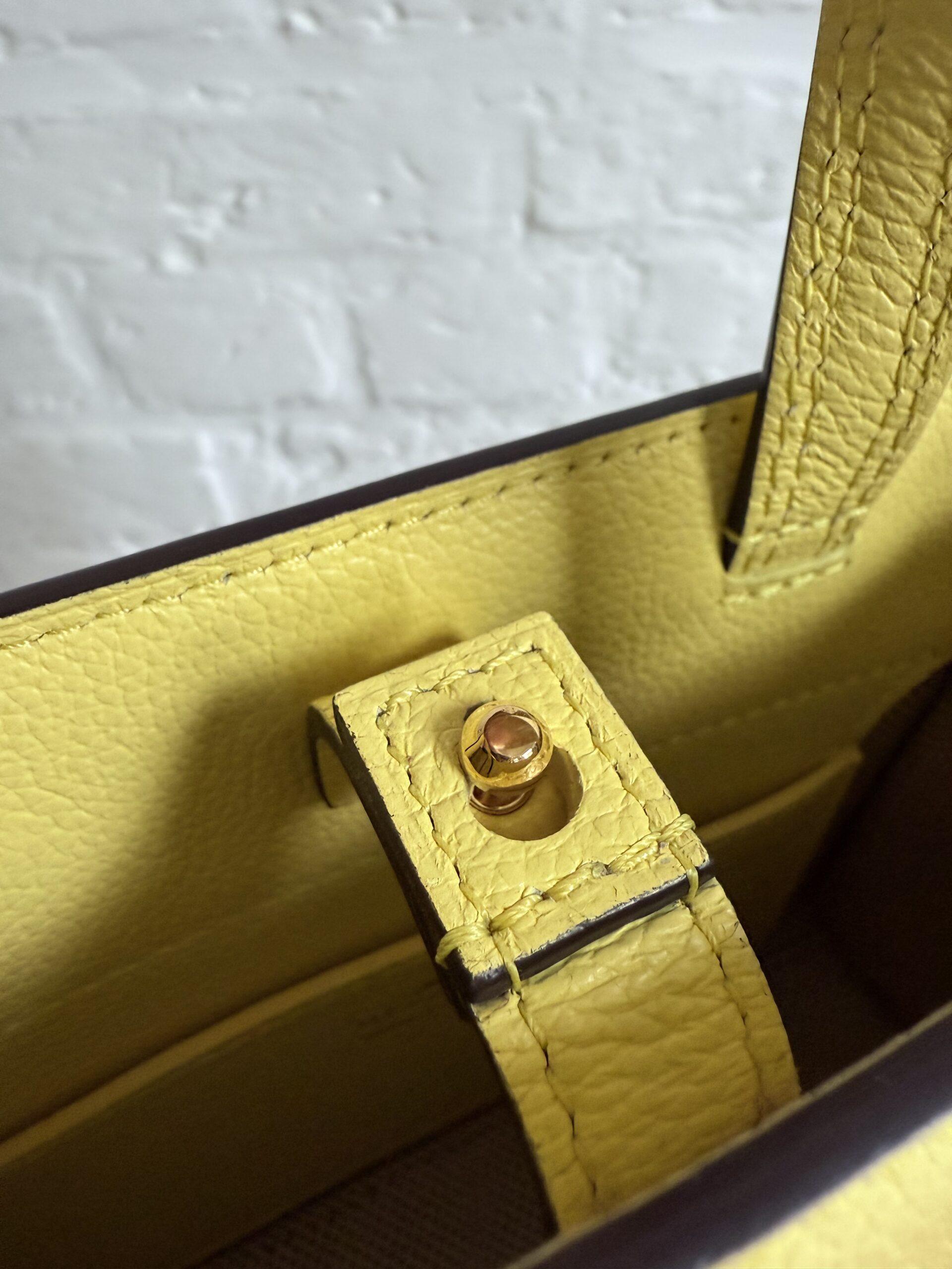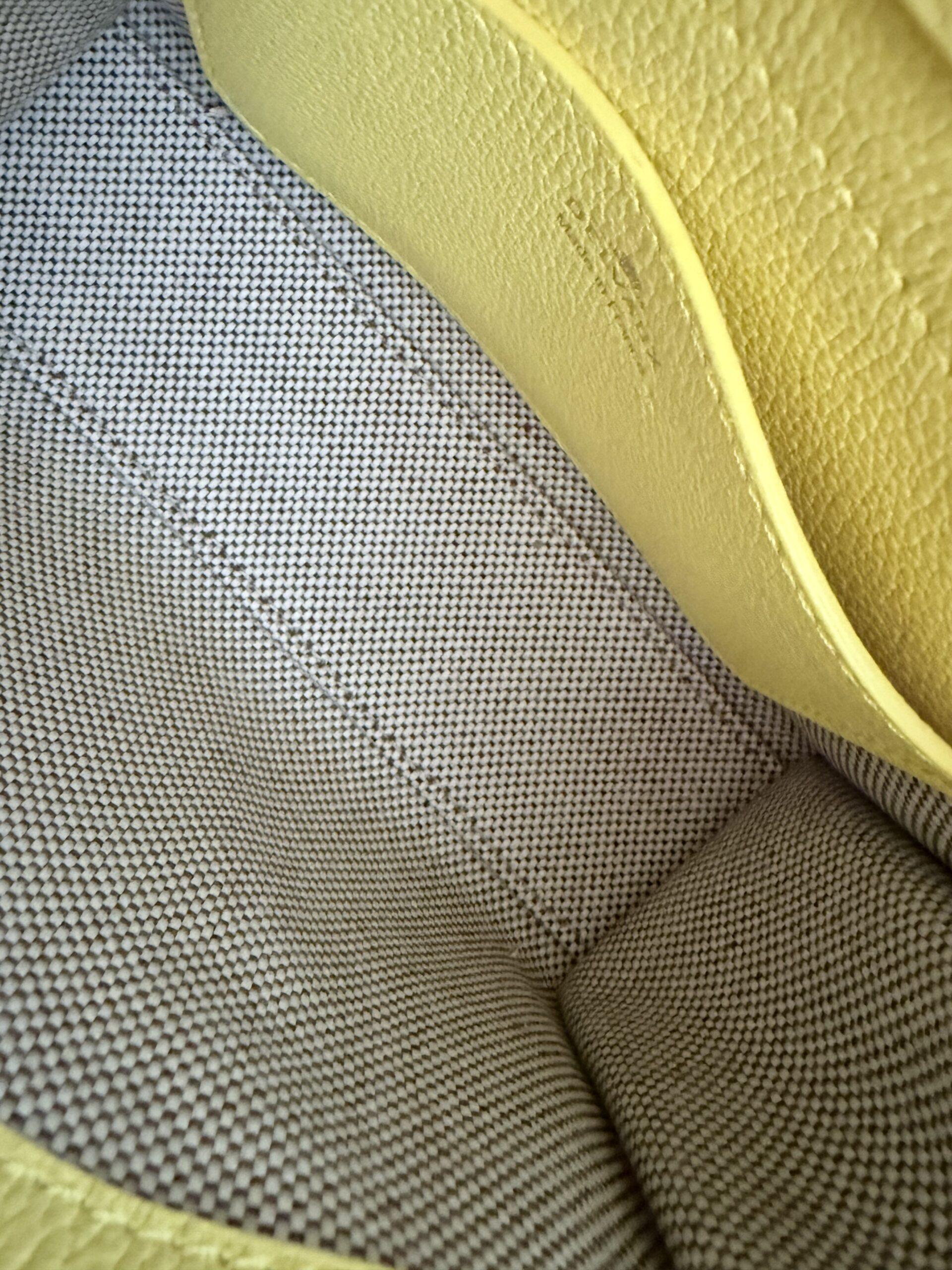 De binnenzijde is uitgevoerd in toile. Super super super mooi. Ook hier: de kleurencombinatie van de geweven toile zorgt ervoor dat gebruikssporen nauwelijks zichtbaar zullen zijn. Het interieur is aangevuld met een extra steekzakje.