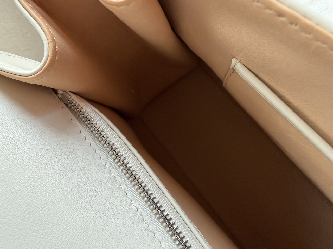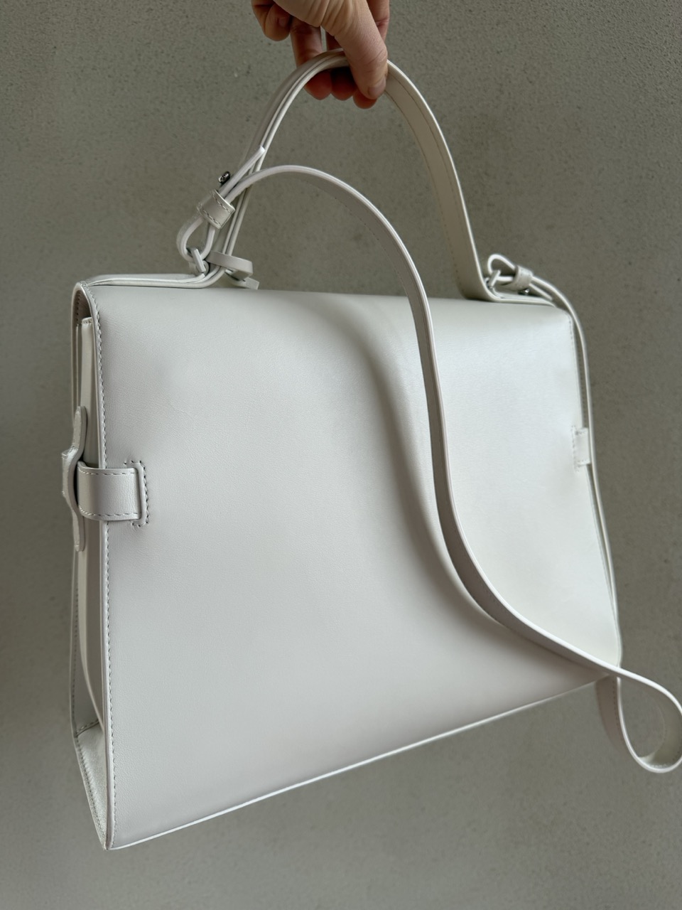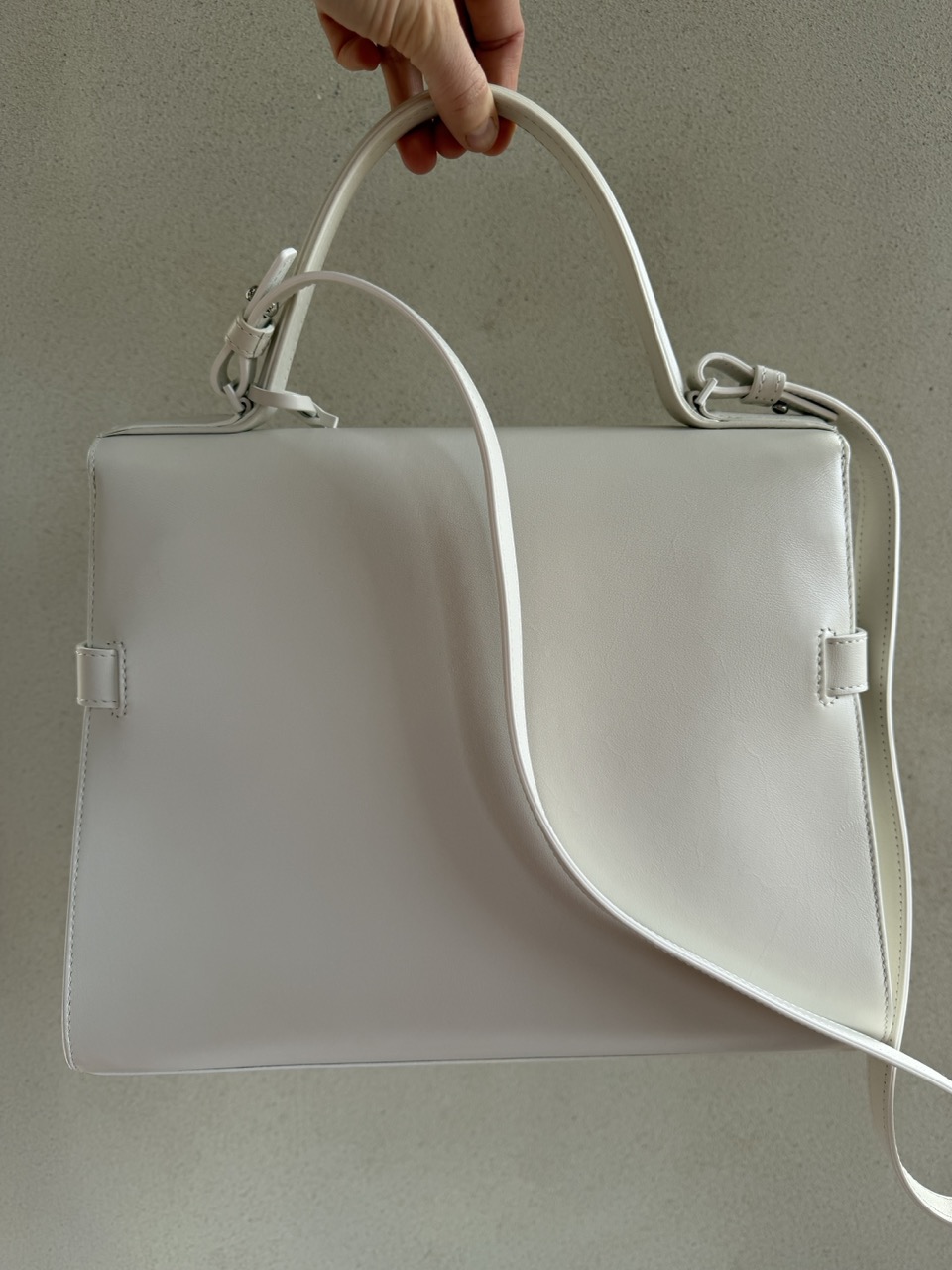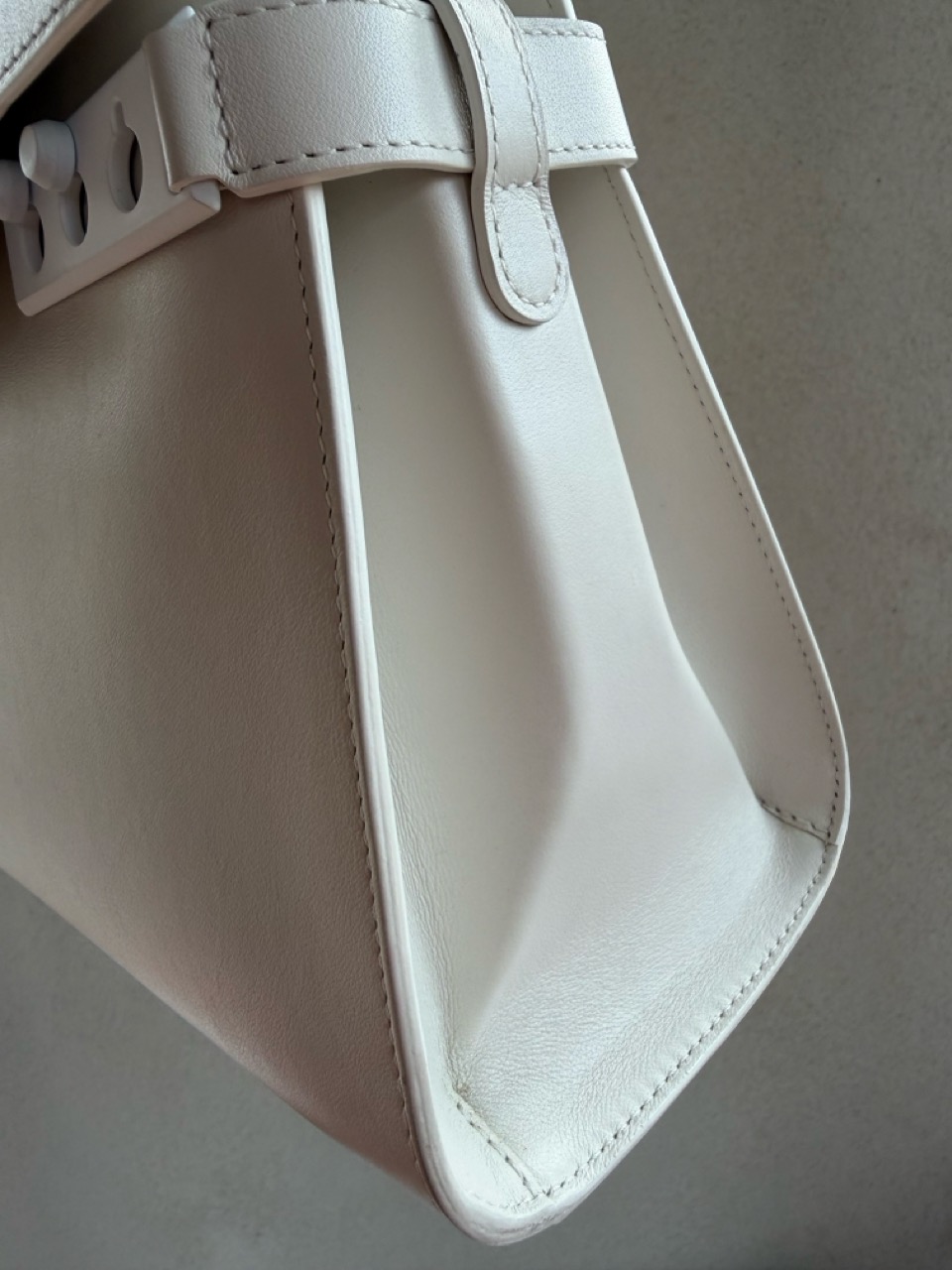 In deze uitvoering is ze zeldzaam! Ivoire kalfsleder, ultra zacht gepolijst met wit matte hardware. Hij komt met riem die je ook kan verwijderen. Ongetwijfeld mijn absolute nummer 1.