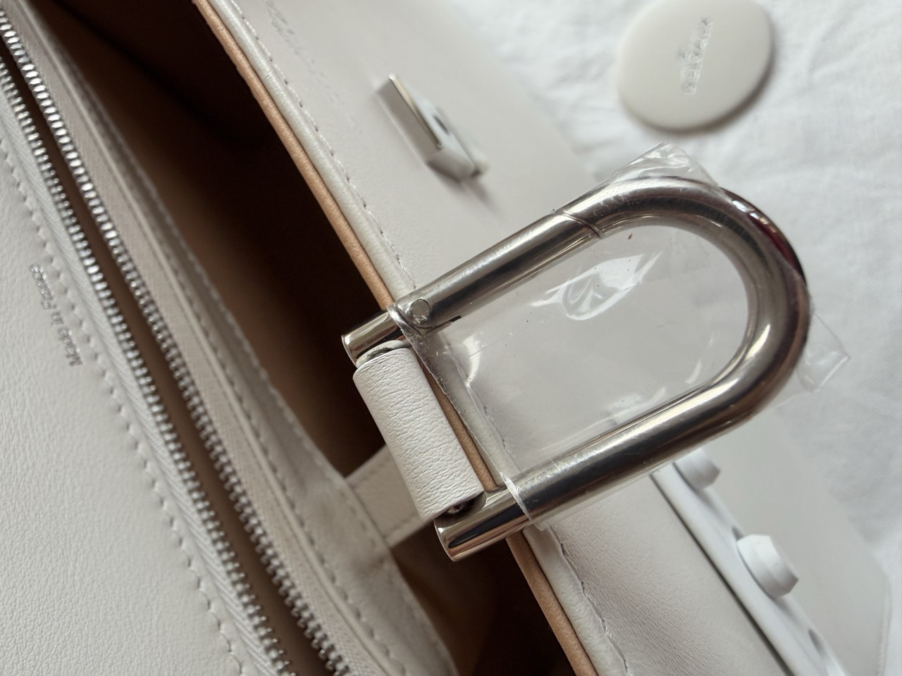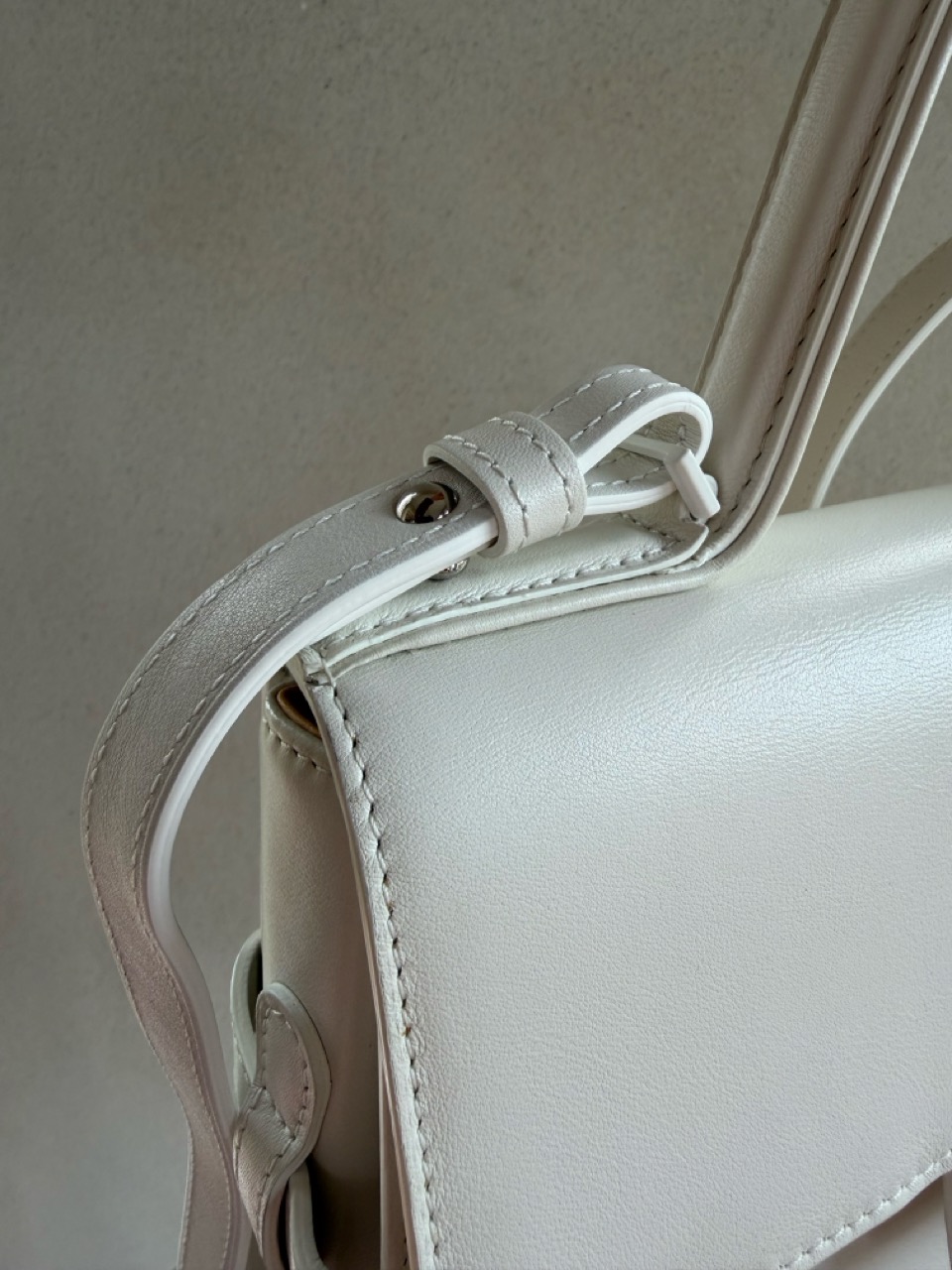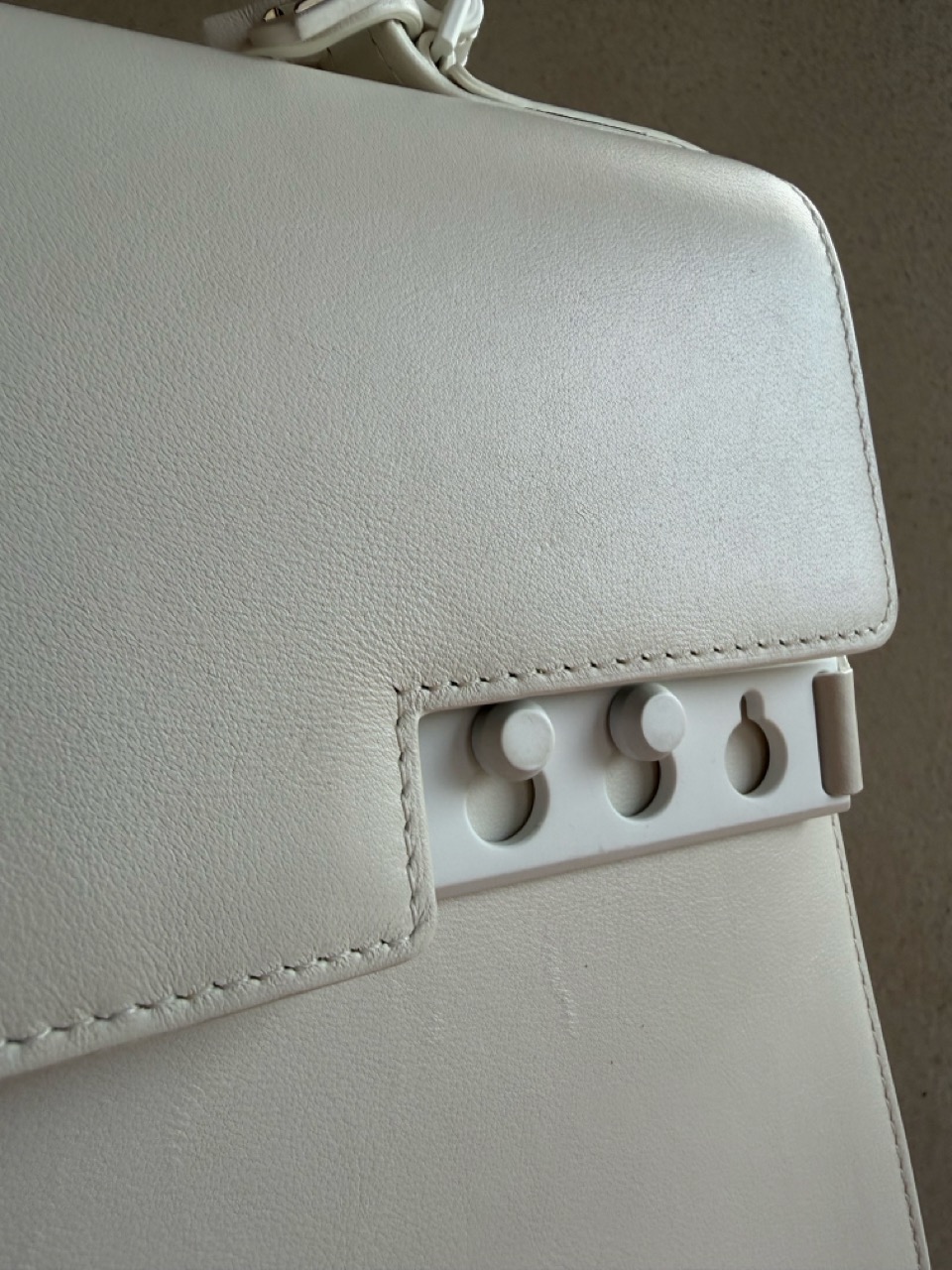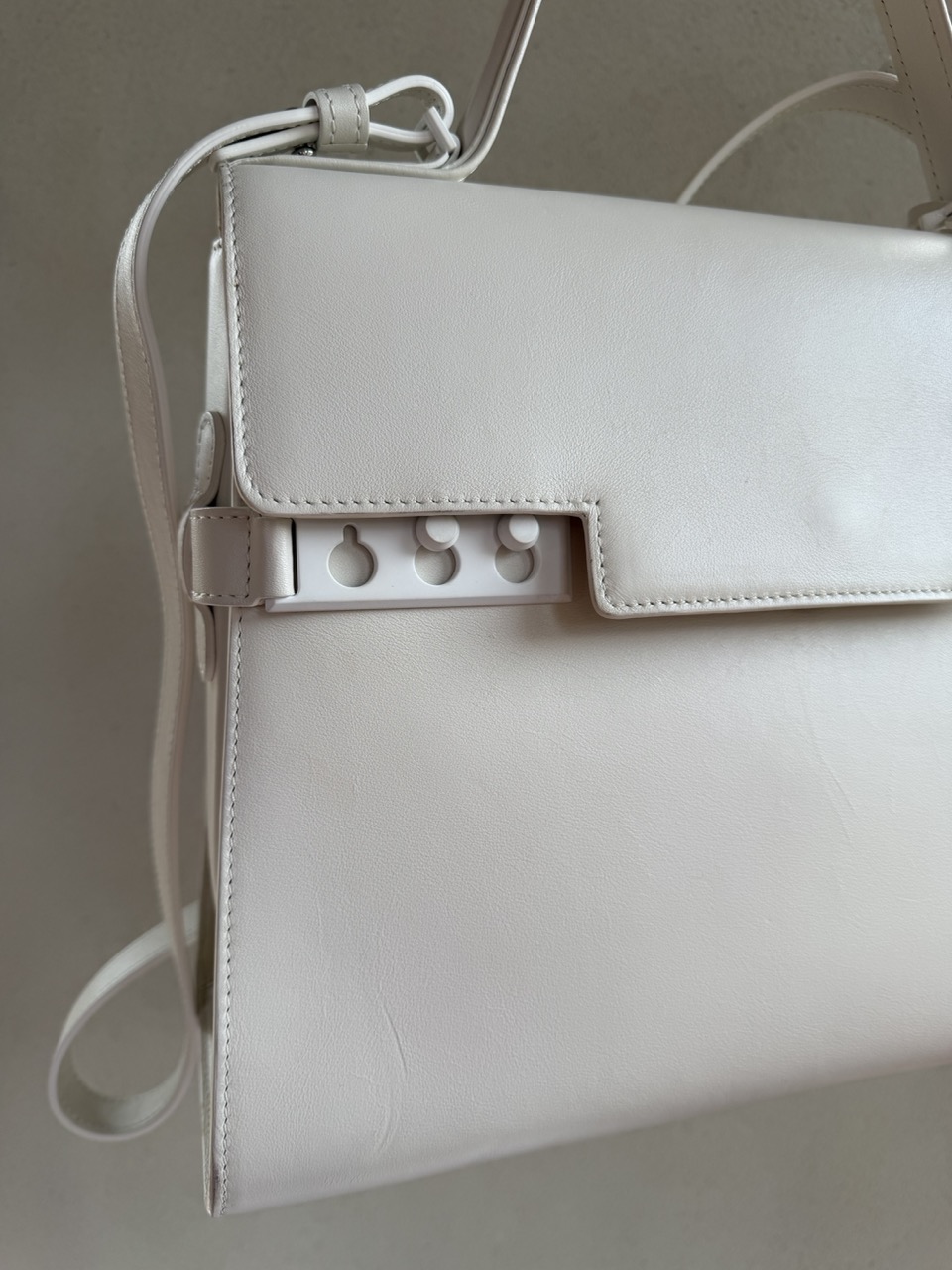 In deze uitvoering is ze zeldzaam! Ivoire kalfsleder, ultra zacht gepolijst met wit matte hardware. Hij komt met riem die je ook kan verwijderen. Ongetwijfeld mijn absolute nummer 1.