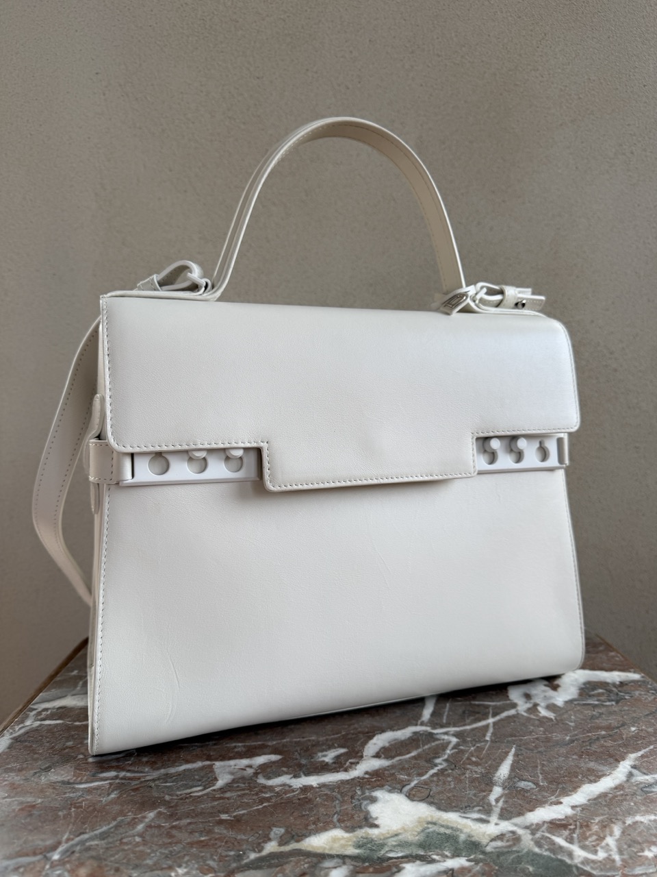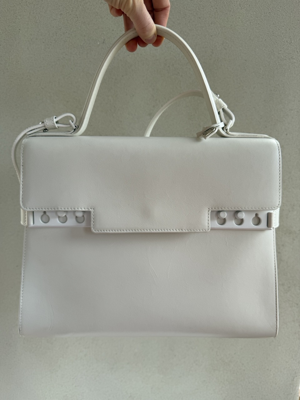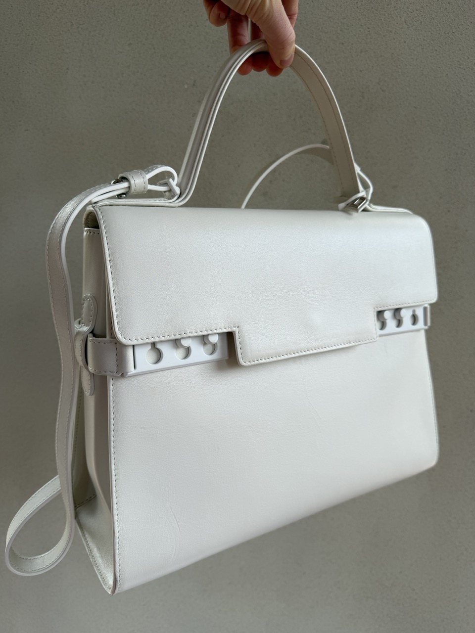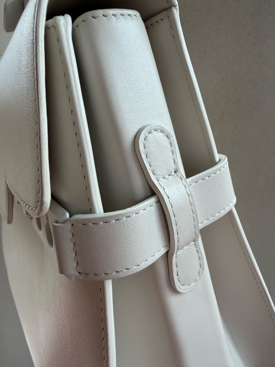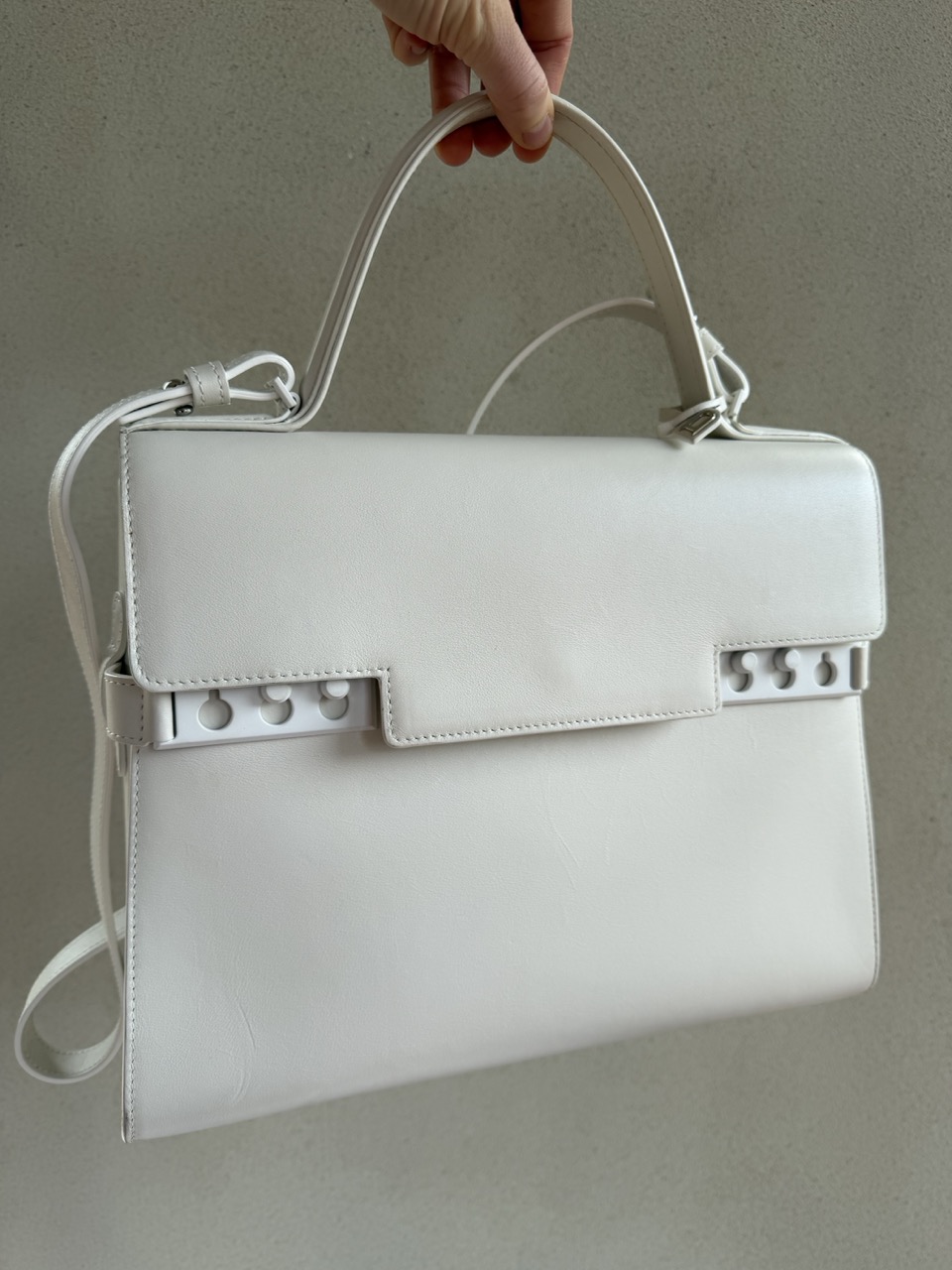 In deze uitvoering is ze zeldzaam! Ivoire kalfsleder, ultra zacht gepolijst met wit matte hardware. Hij komt met riem die je ook kan verwijderen. Ongetwijfeld mijn absolute nummer 1.