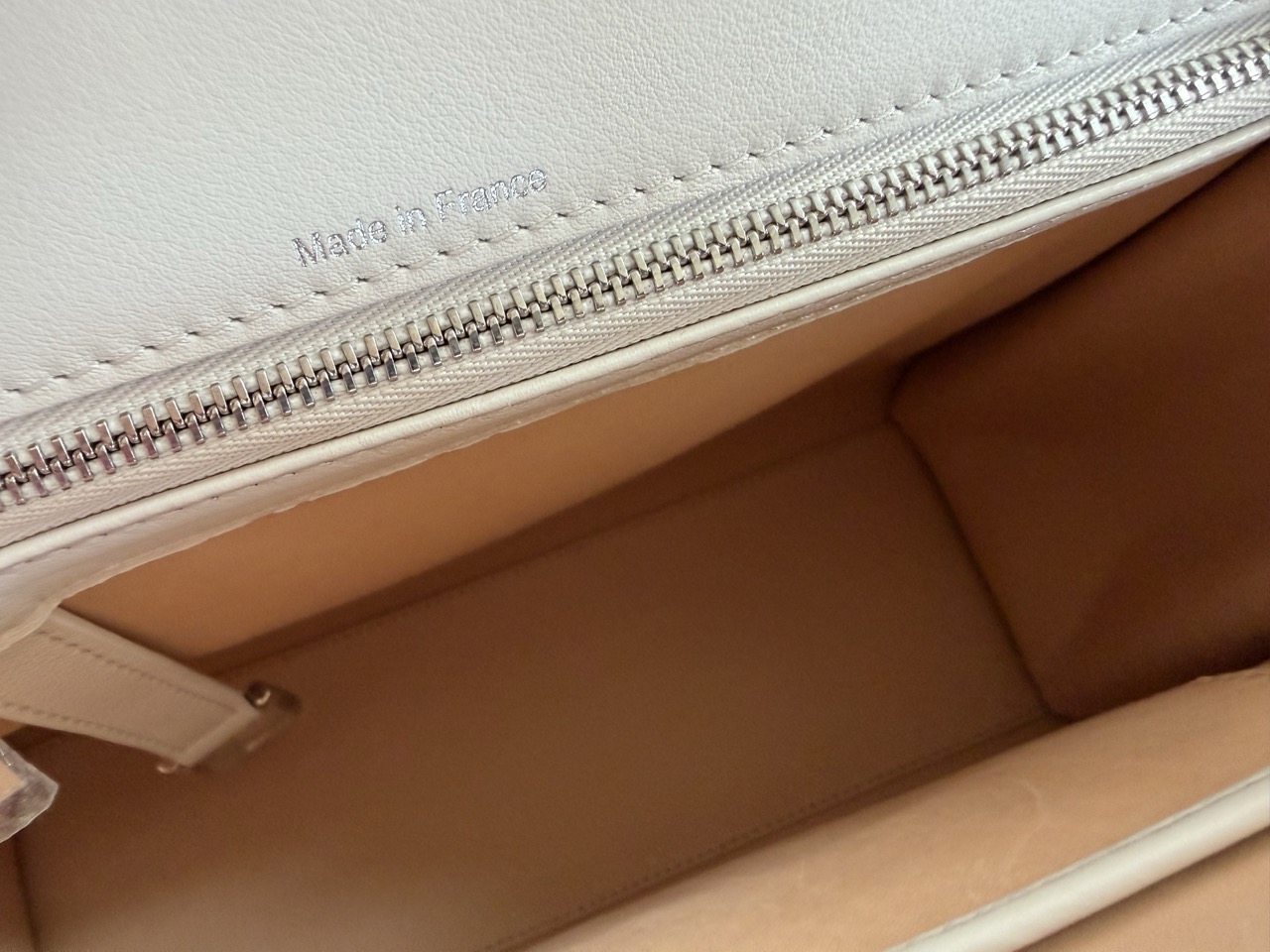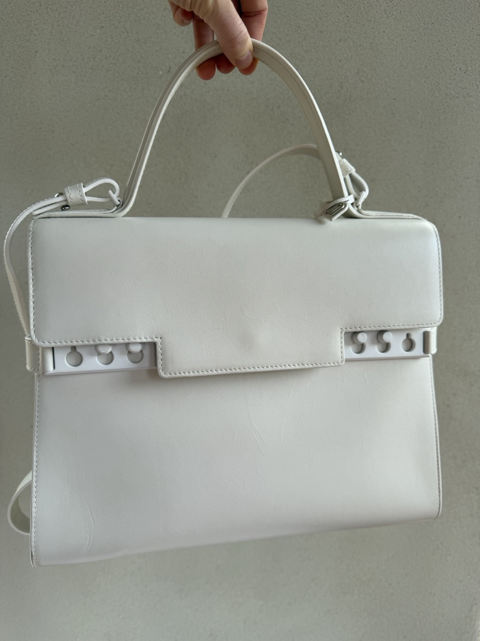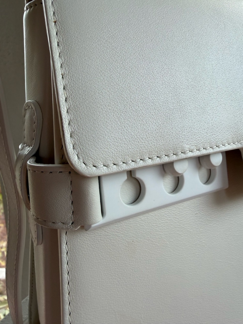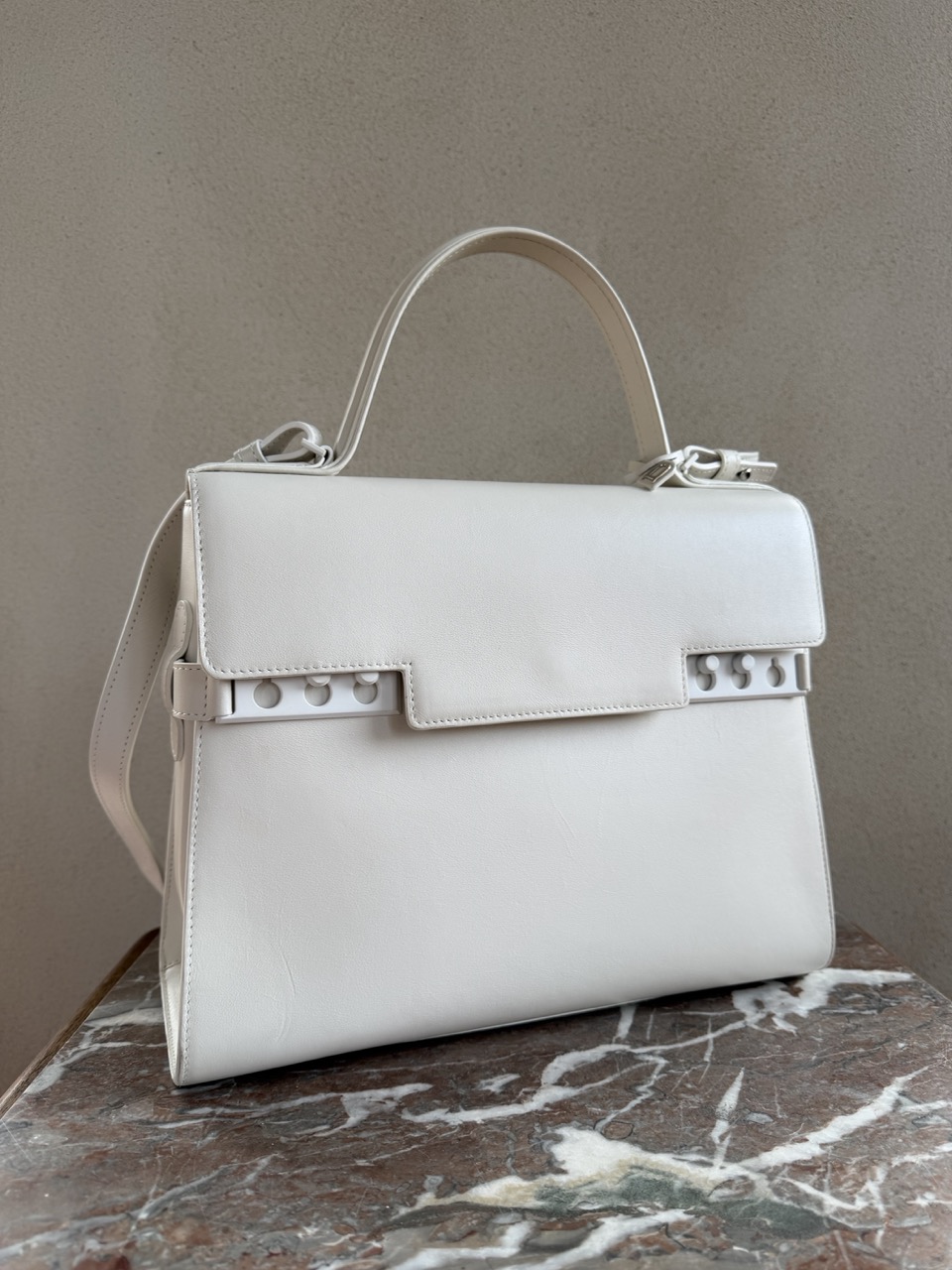 In deze uitvoering is ze zeldzaam! Ivoire kalfsleder, ultra zacht gepolijst met wit matte hardware. Hij komt met riem die je ook kan verwijderen. Ongetwijfeld mijn absolute nummer 1.