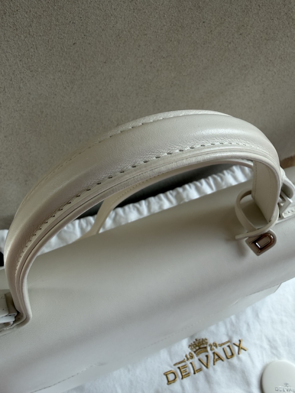Atelier Mémé besteedt veel tijd en aandacht aan het zorgvuldig selecteren en, indien nodig, retoucheren van originele Delvaux handtassen. De tas is zo correct mogelijk in beeld gebracht met imperfecties die horen bij de vintage staat en manuele ambacht van zowel de Delvauxtas als de ambacht van het restaureren.