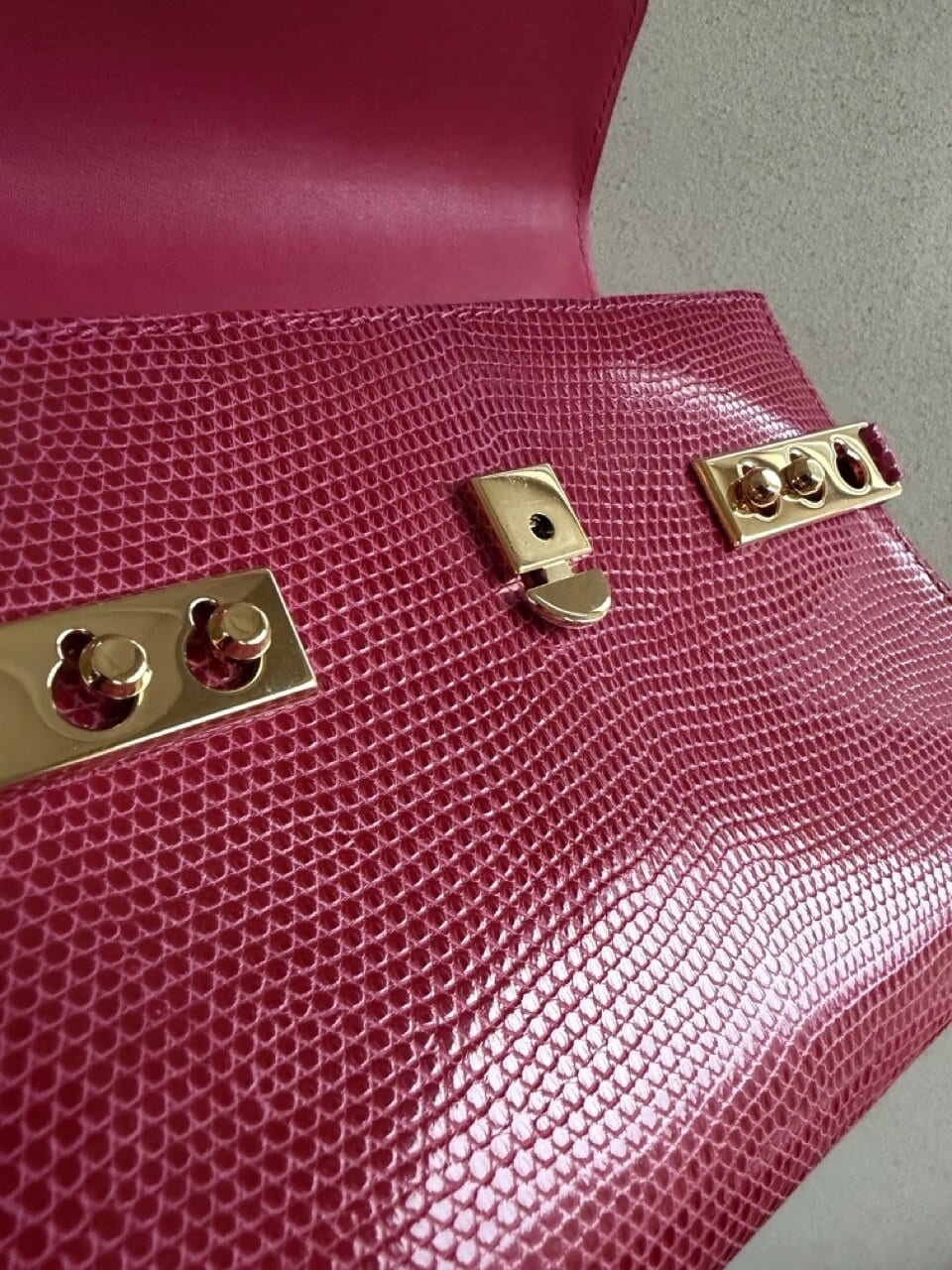 Deze Tempête Mini is heel bijzonder. Uitgevoerd in Framboise Hagedissenhuid. Een exoot om U tegen te zeggen!