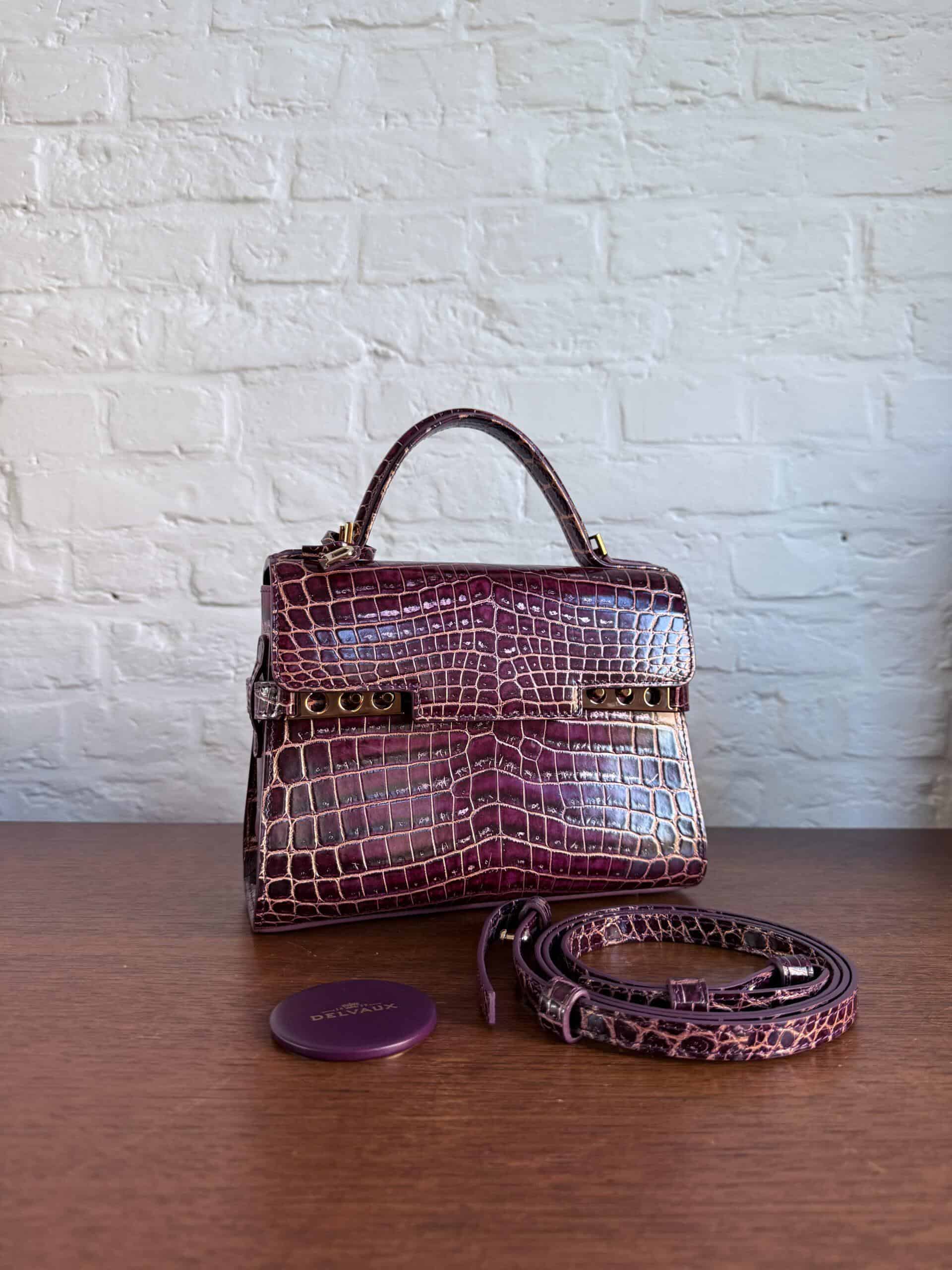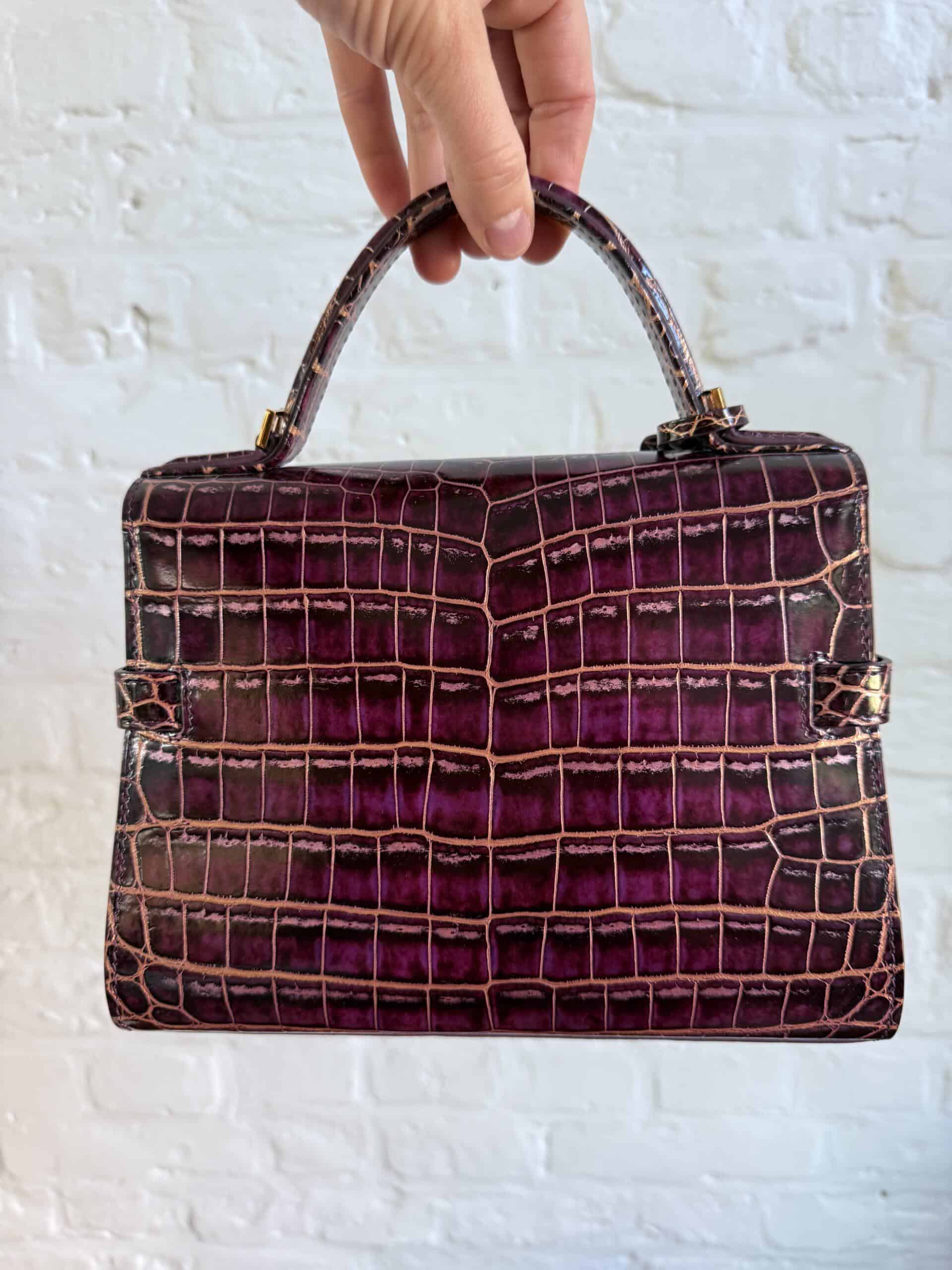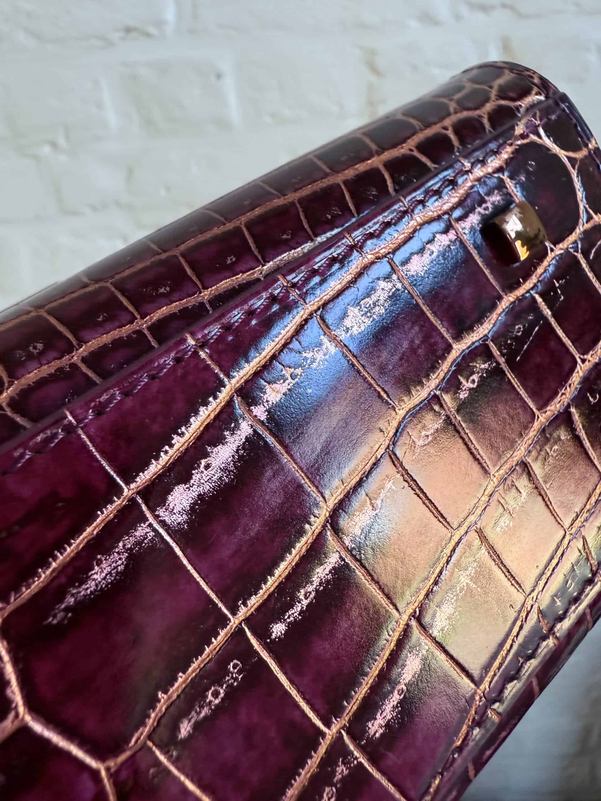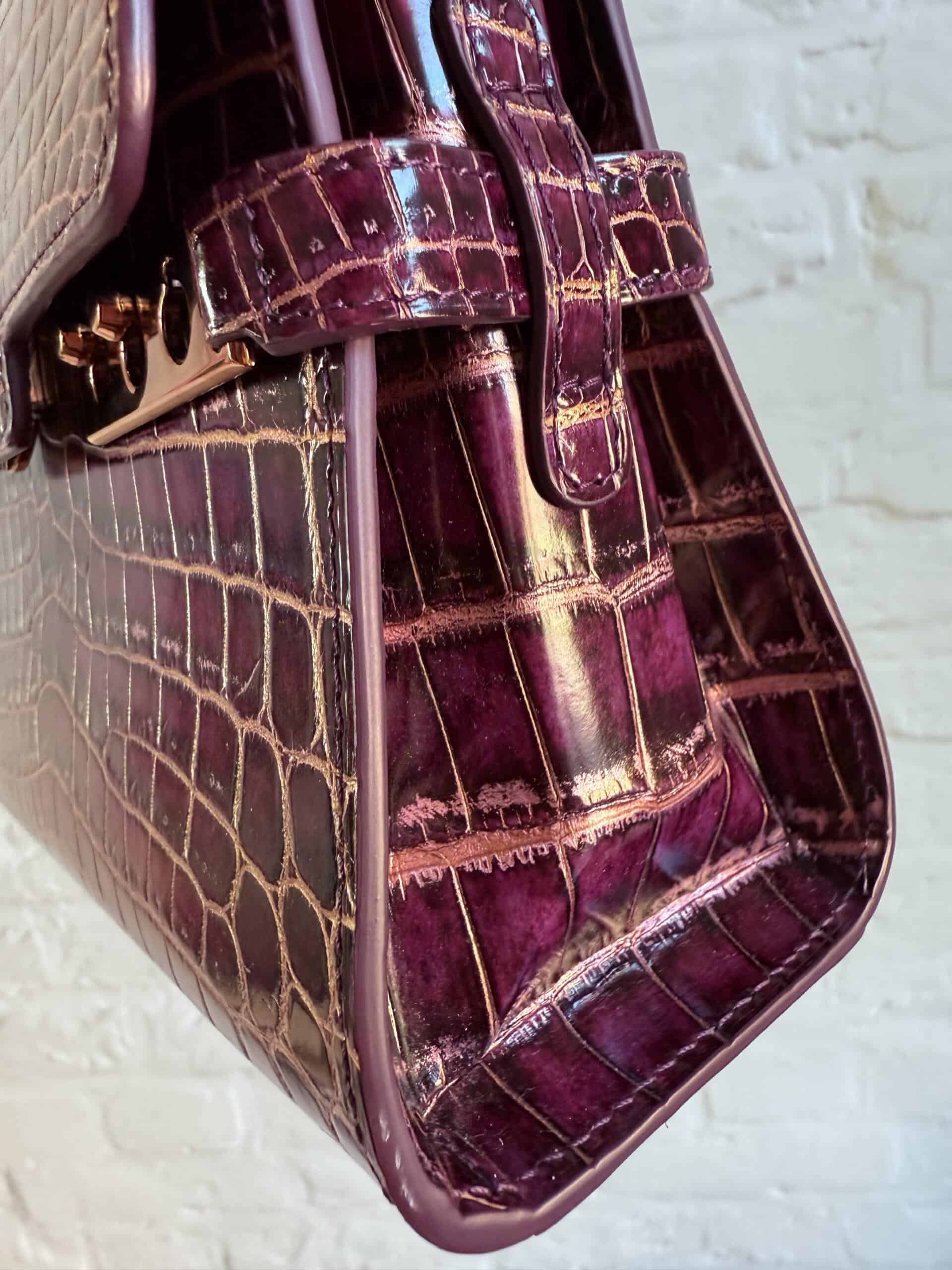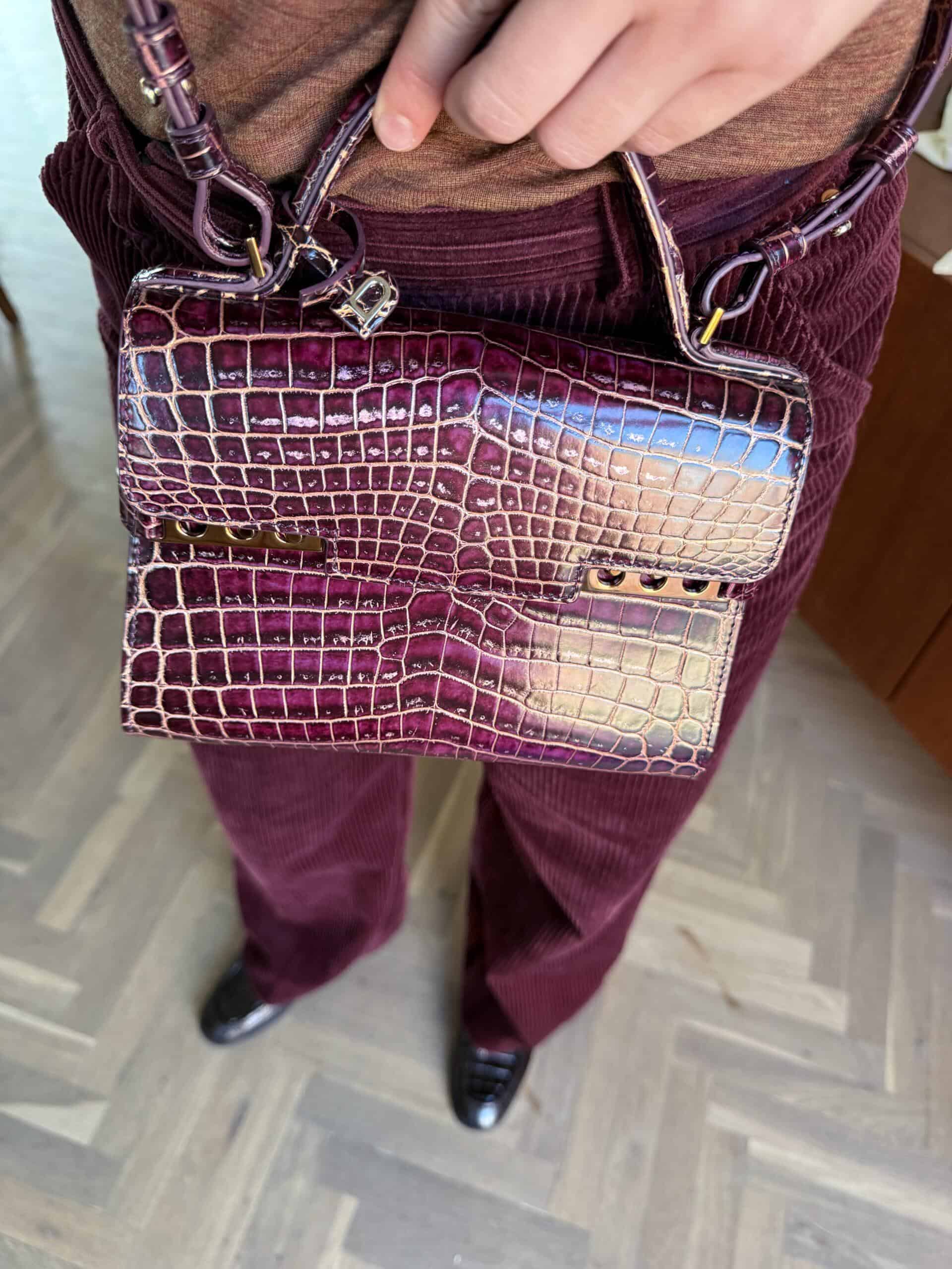 Deze Tempête Mini is heel bijzonder. Uitgevoerd in matte Porosus Crocodile en nabewerkt met goudkleuring en gepolijst.