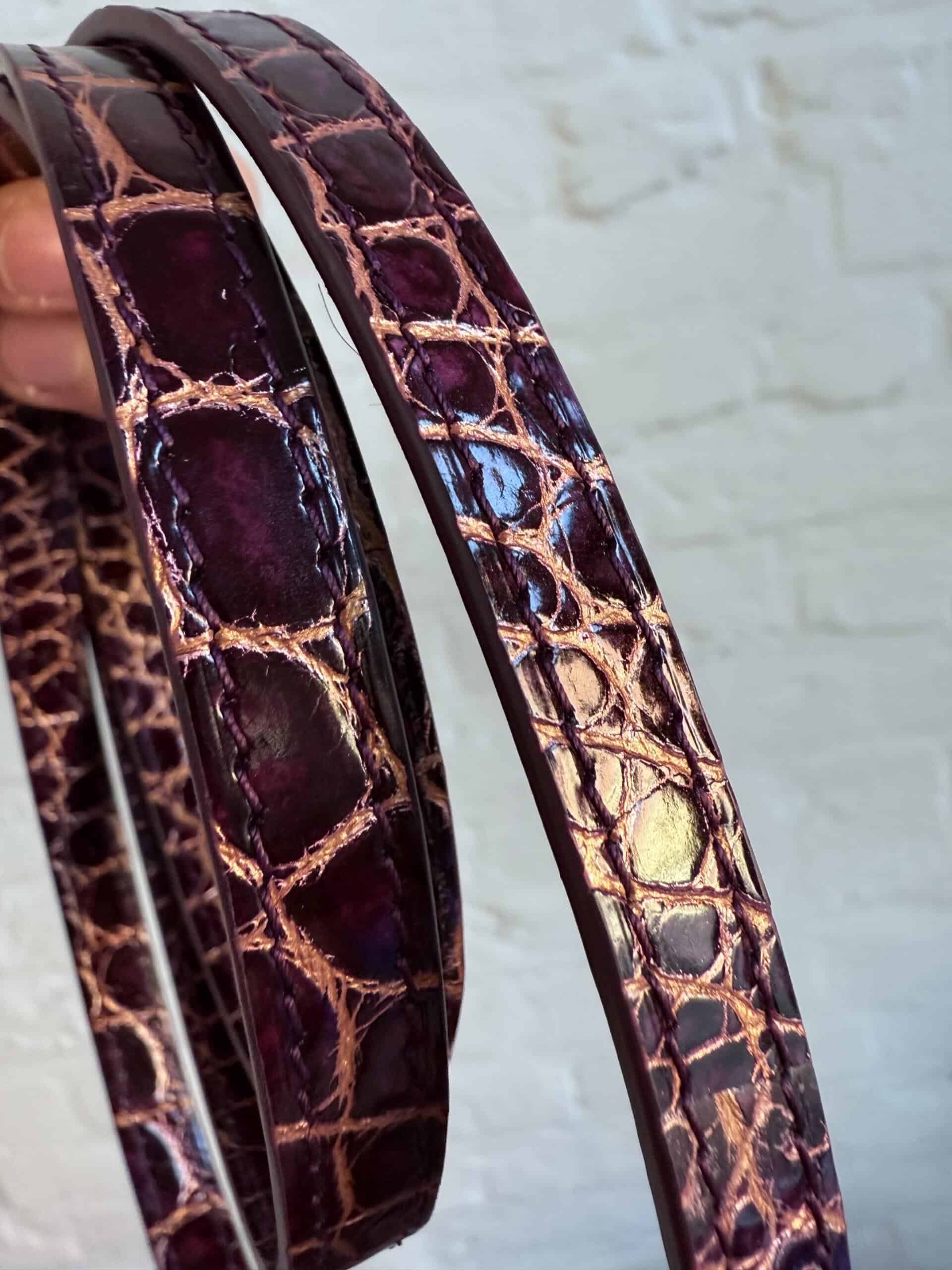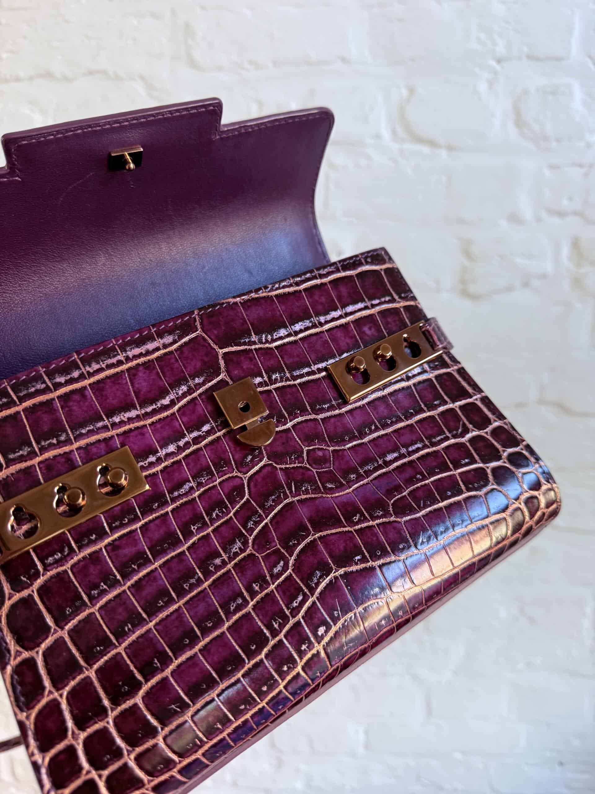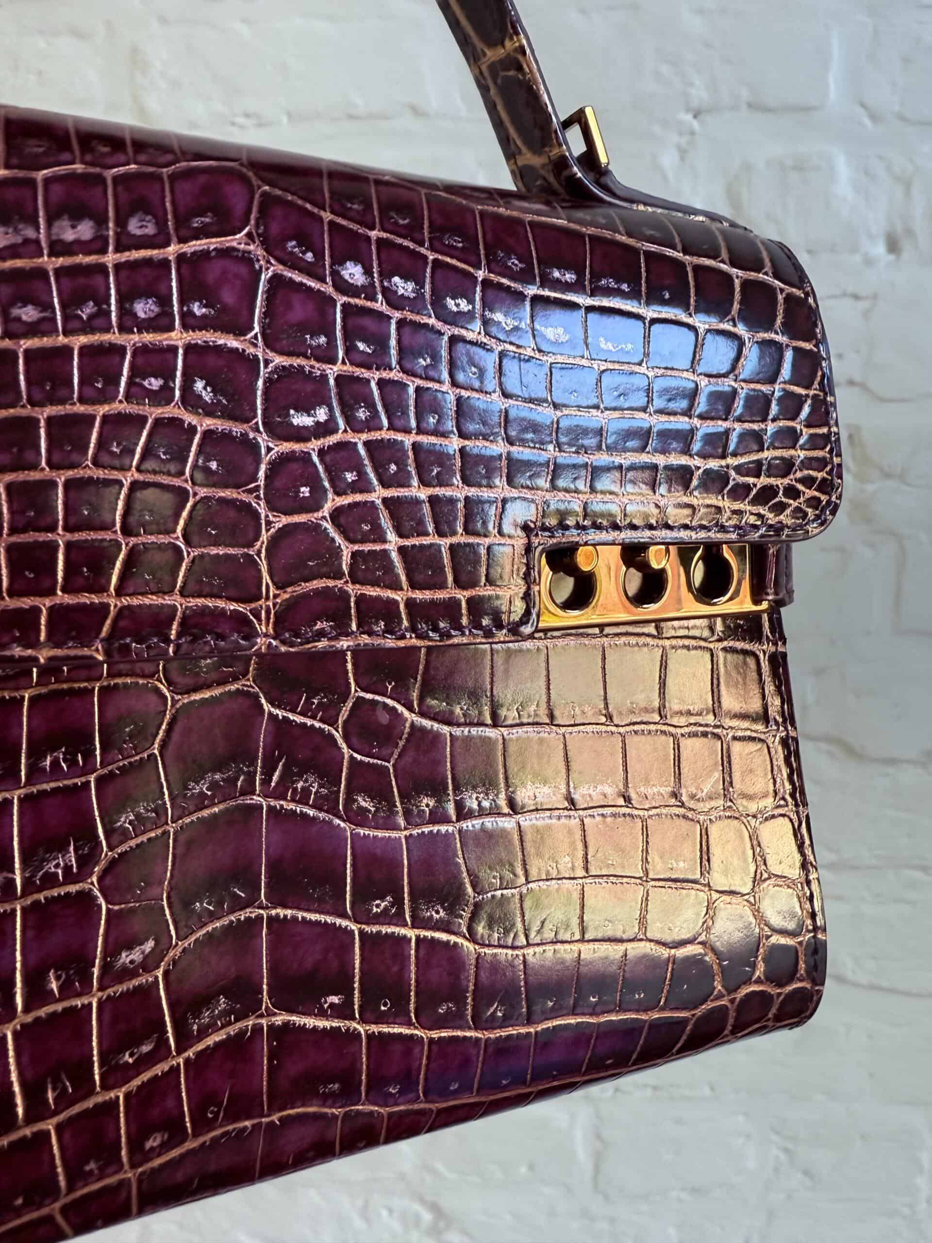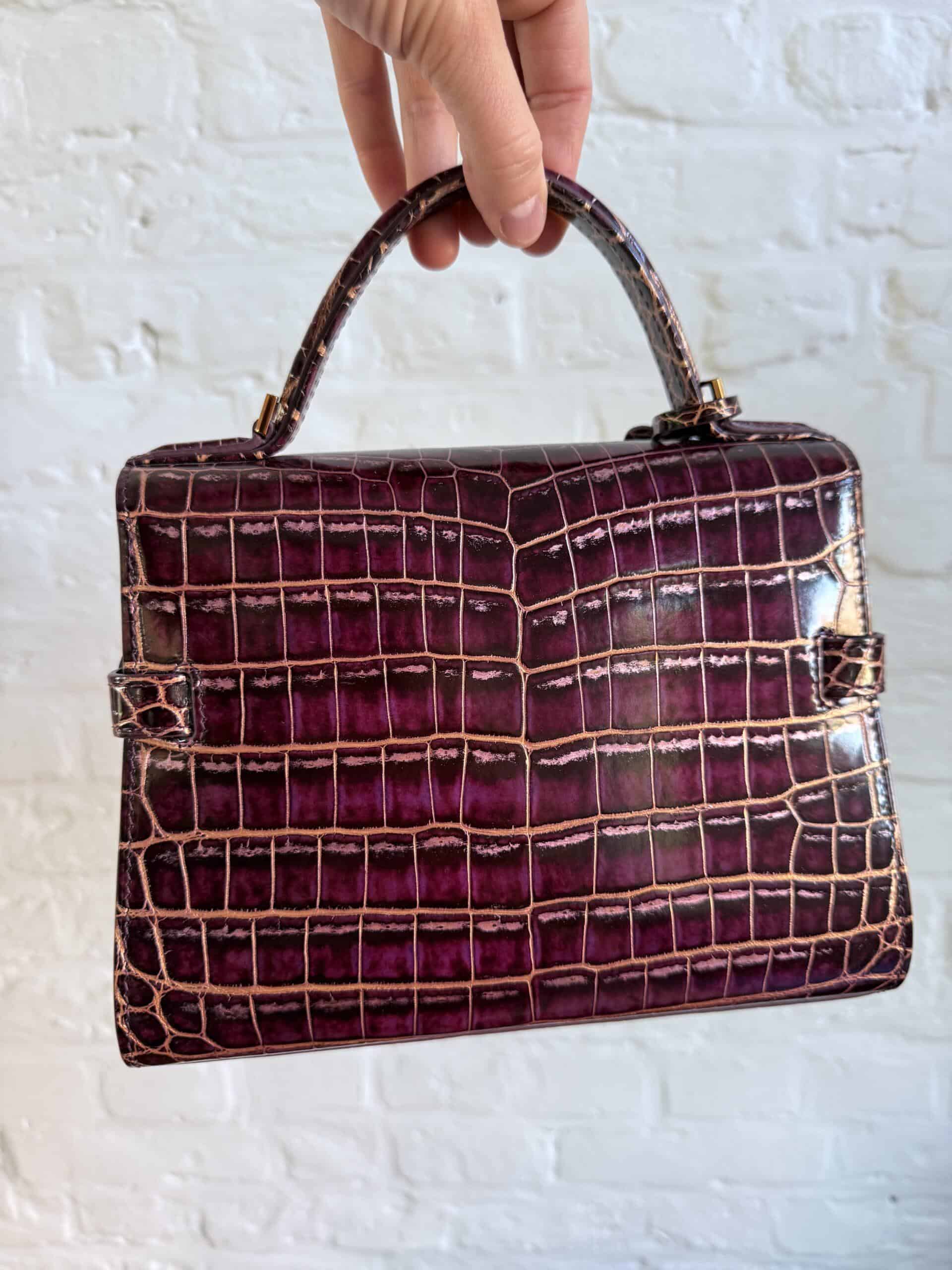 Deze Tempête Mini is heel bijzonder. Uitgevoerd in matte Porosus Crocodile en nabewerkt met goudkleuring en gepolijst.